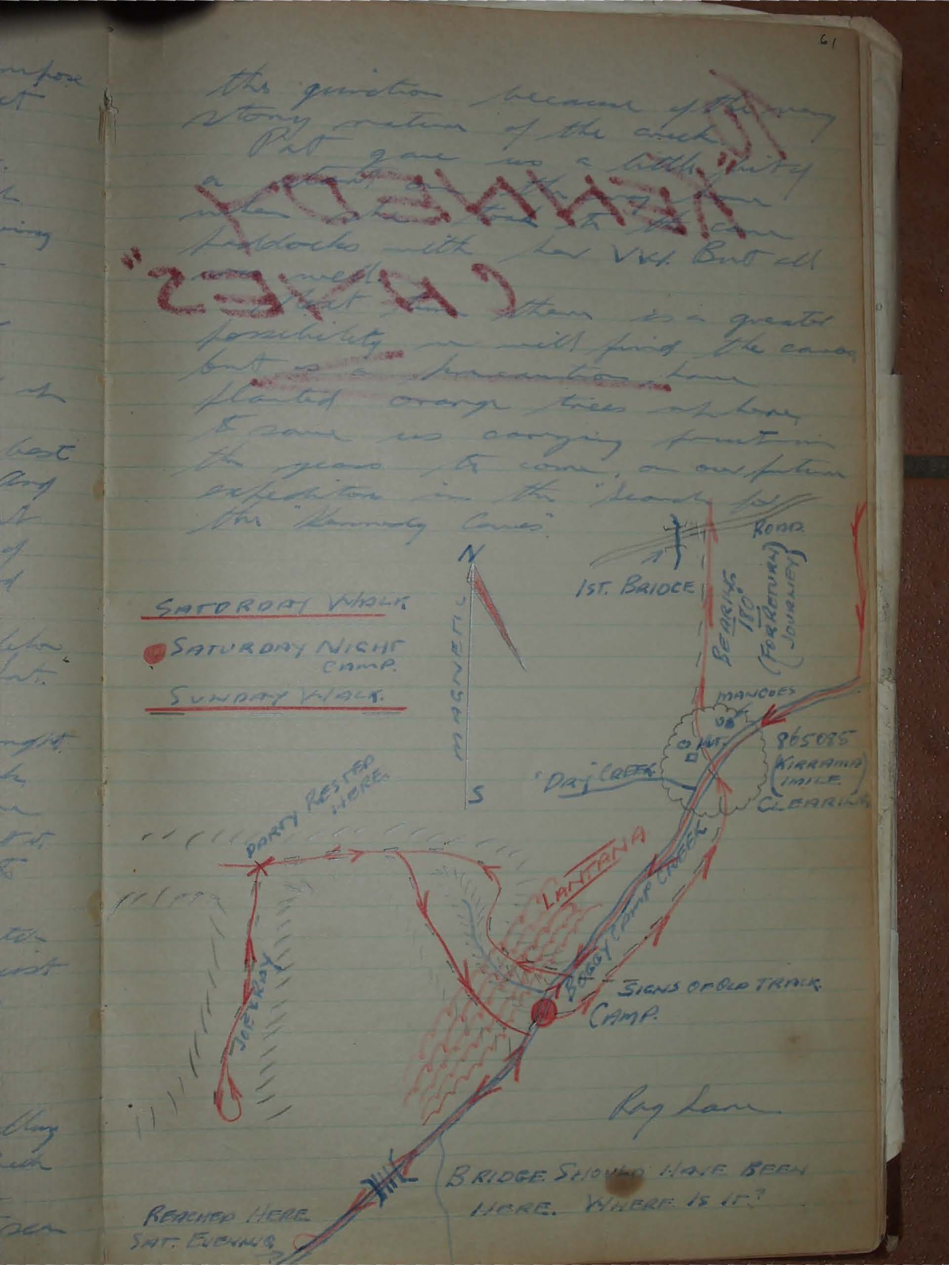 Our camp was either cold and wet, and good, we are poor, but the "Kennedy Caves" still un-disturbed in their secret hideaway.