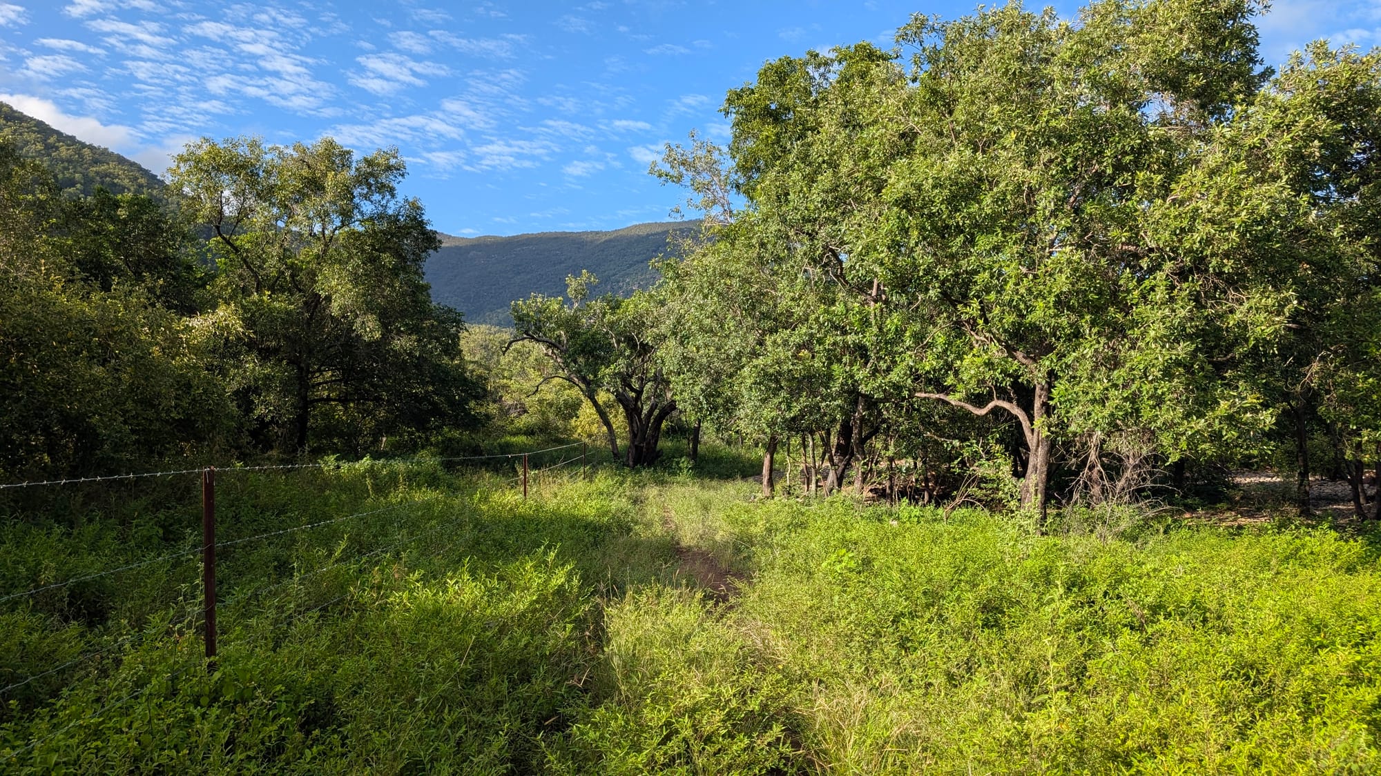The ground was boggy in places, and sections of the track were muddy enough to keep us hopping between grass clumps. A few weeds and overgrown patches slowed things down before the farm tracks gradually faded into old overgrown vehicle tracks. Along the way we passed scattered Chinese chunky apple bushes, a sign that we were getting closer to the national park boundary.