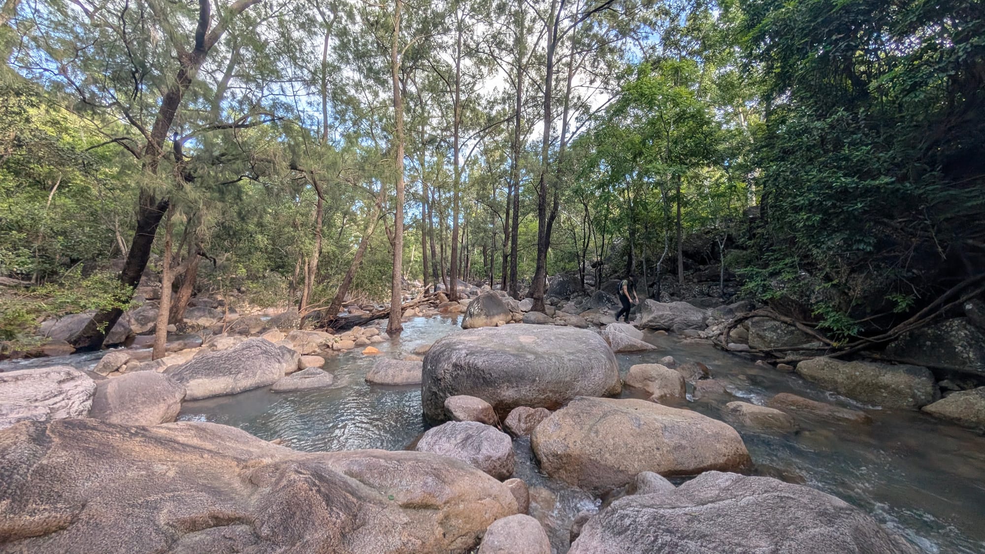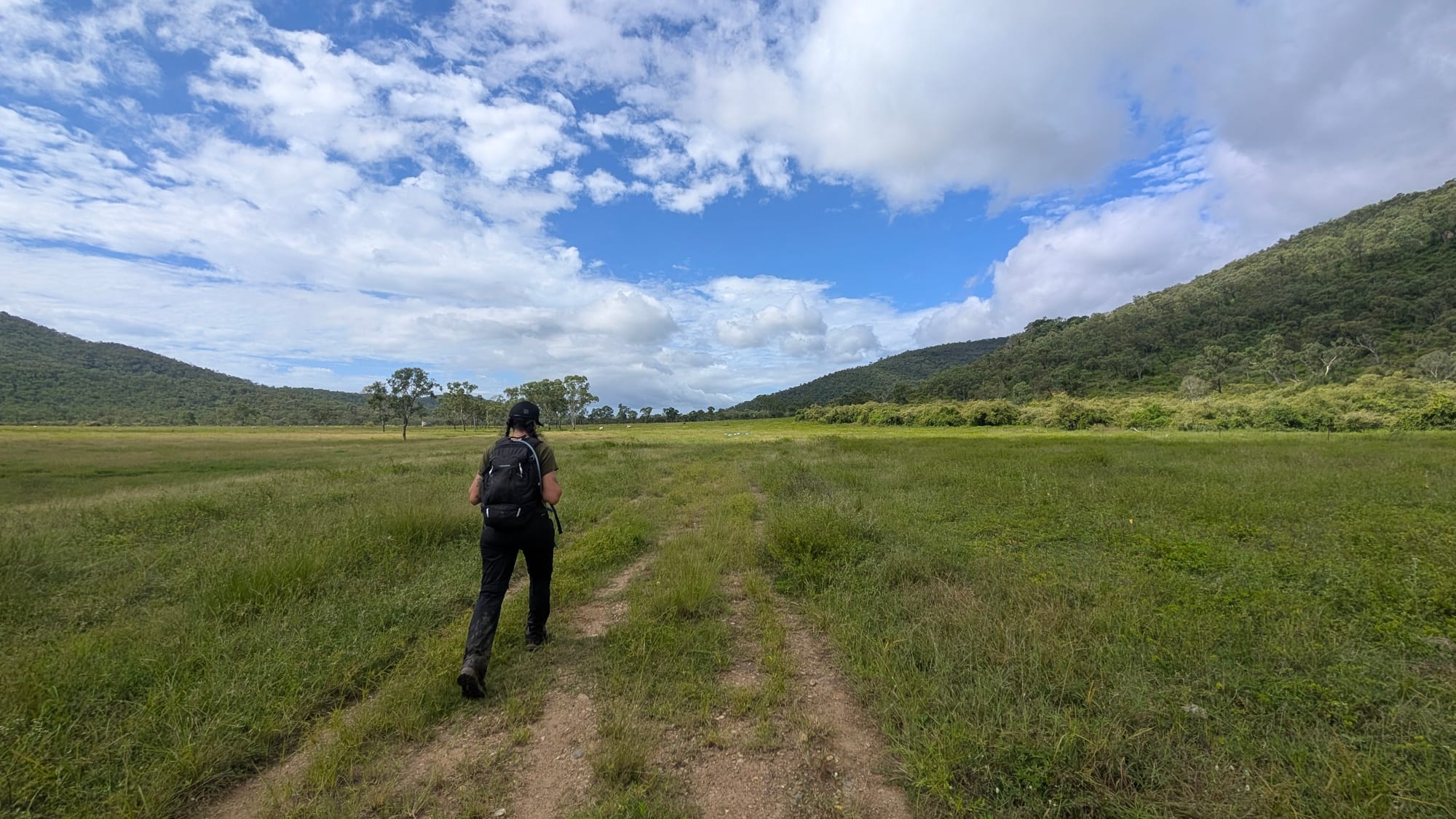 We had just a small crew for this walk; three of us in total, with Luen leading the walk and one member joining the Townsville Bushwalking Club for their very first walk. A good introduction to a proper rock-hopping adventure. Access to this creek requires permission through private property, and after receiving the farmer's approval we crossed the grazing land and began following farm tracks toward the hills.