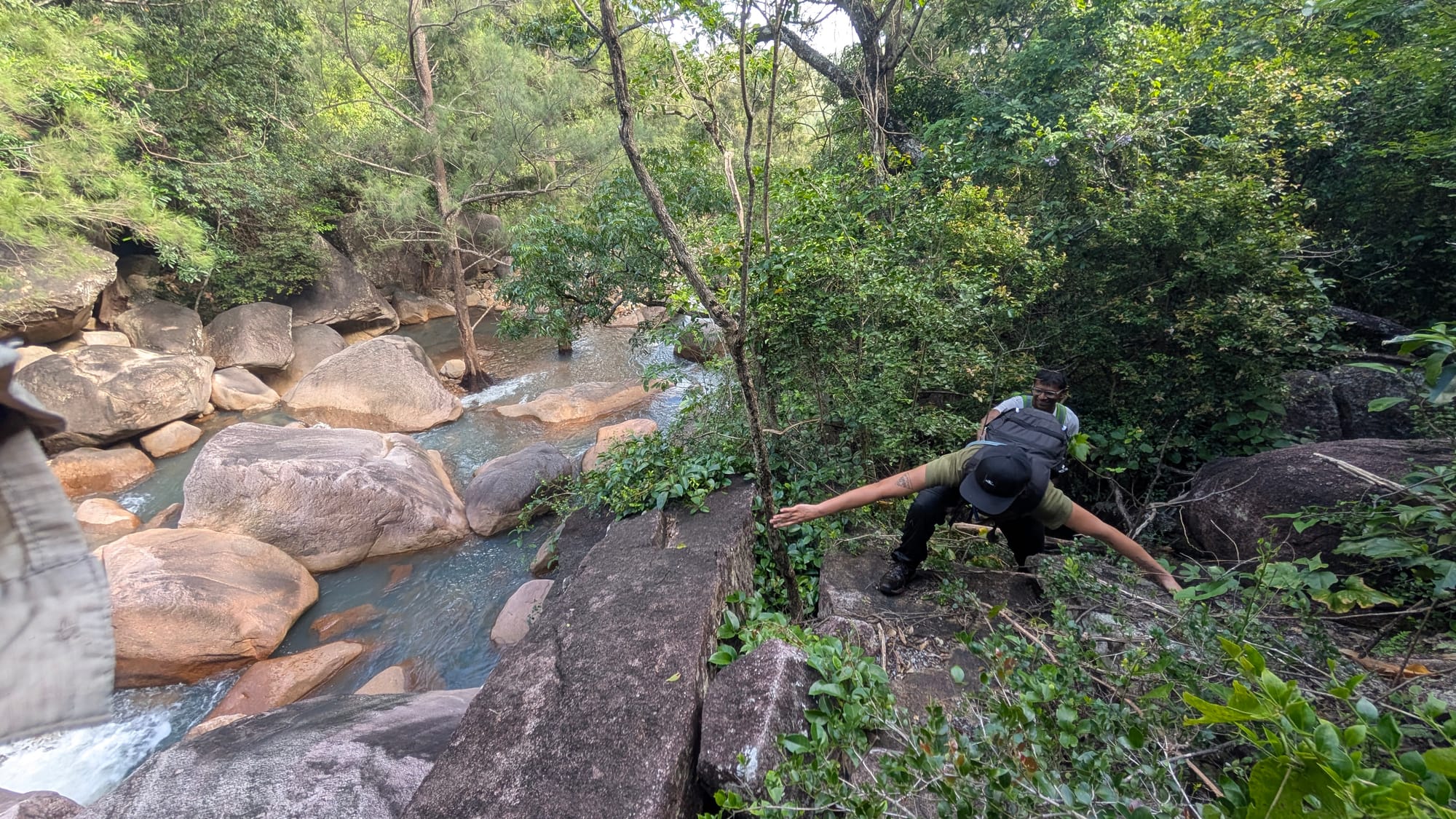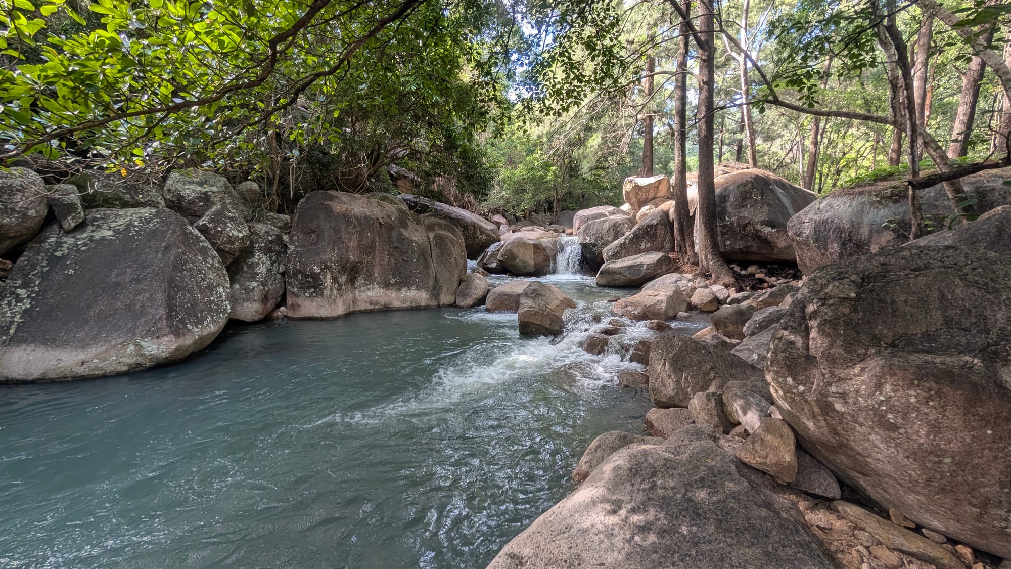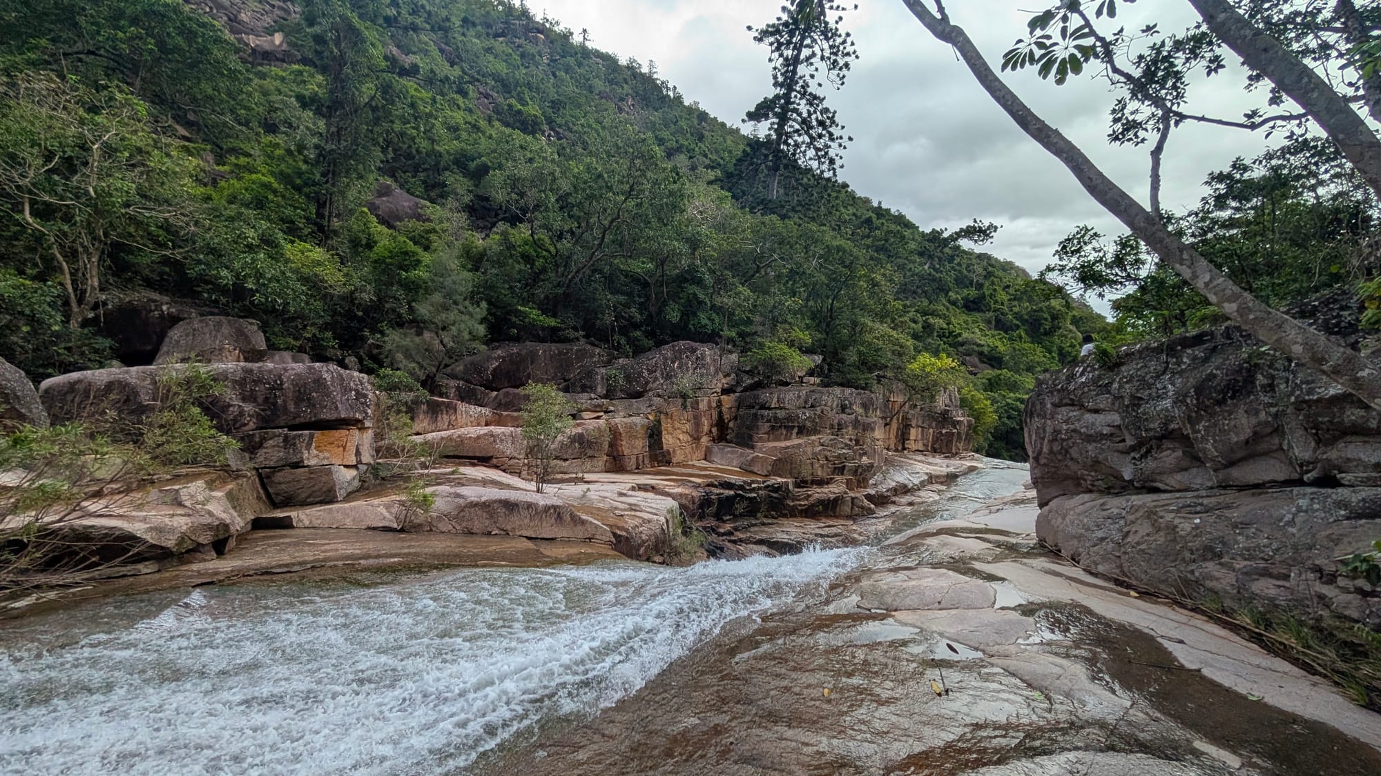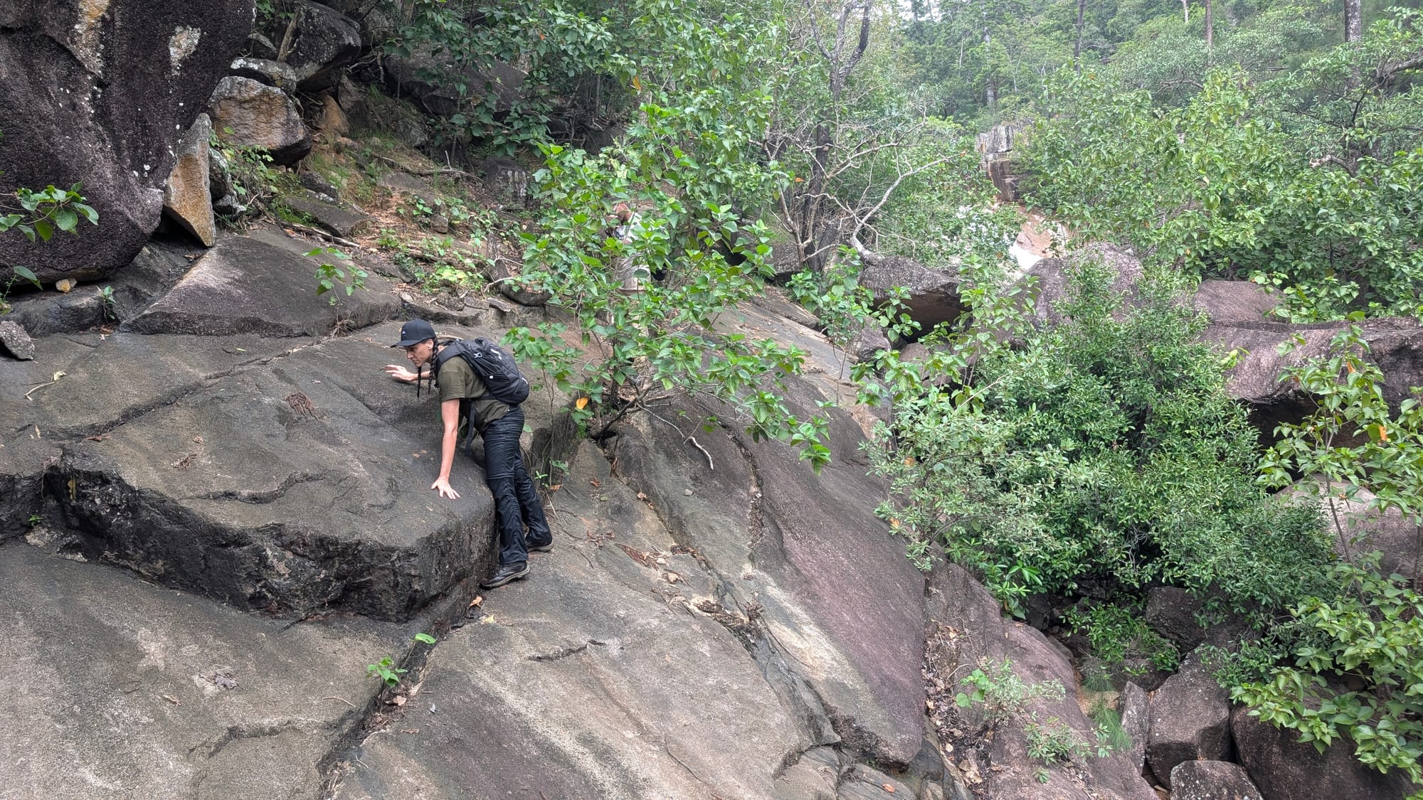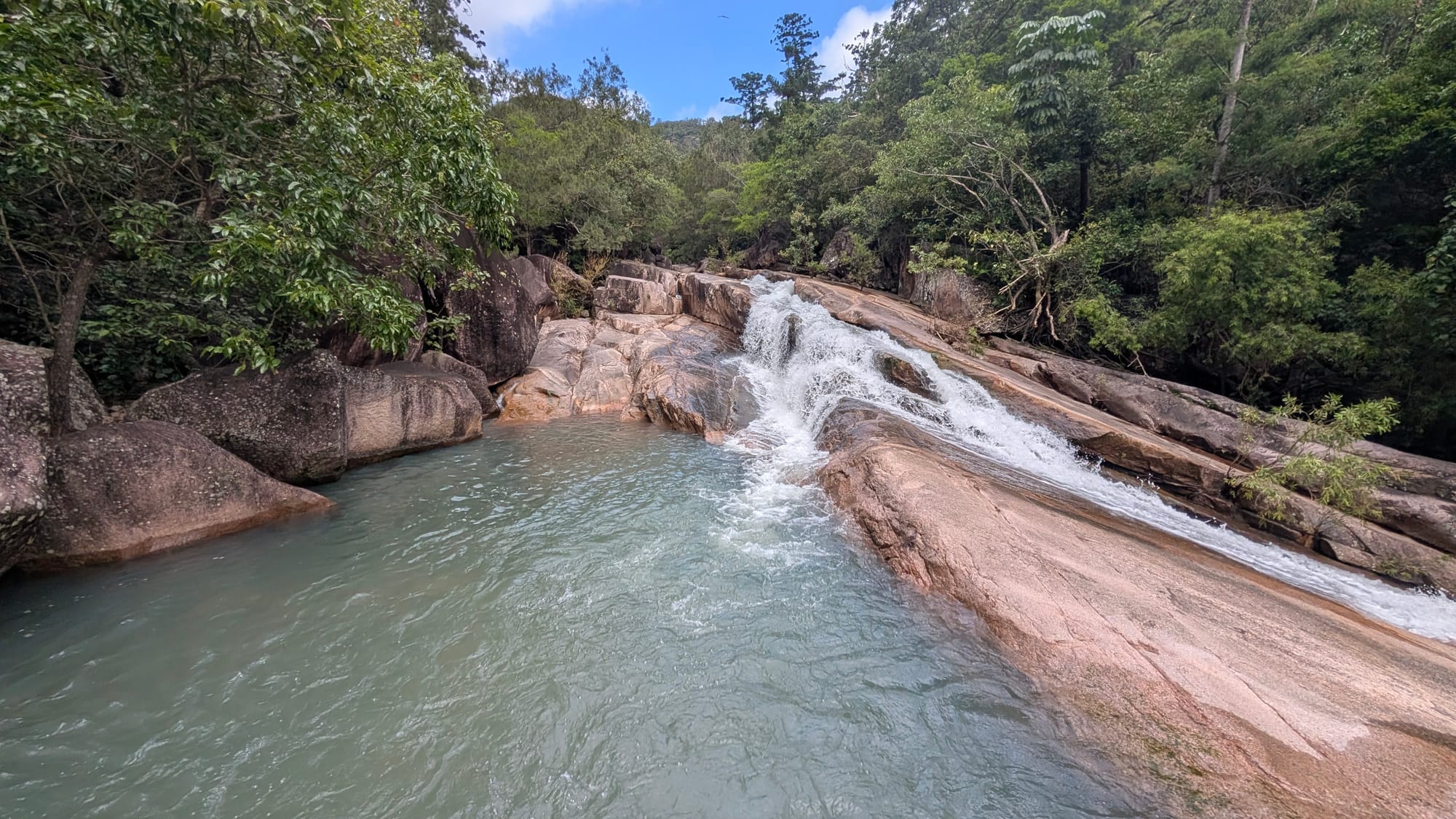 A rugged off-track adventure. Expect technical rock hopping, granite caves, slabby waterfalls, and refreshing swimming holes in a hidden tropical creek gorge.