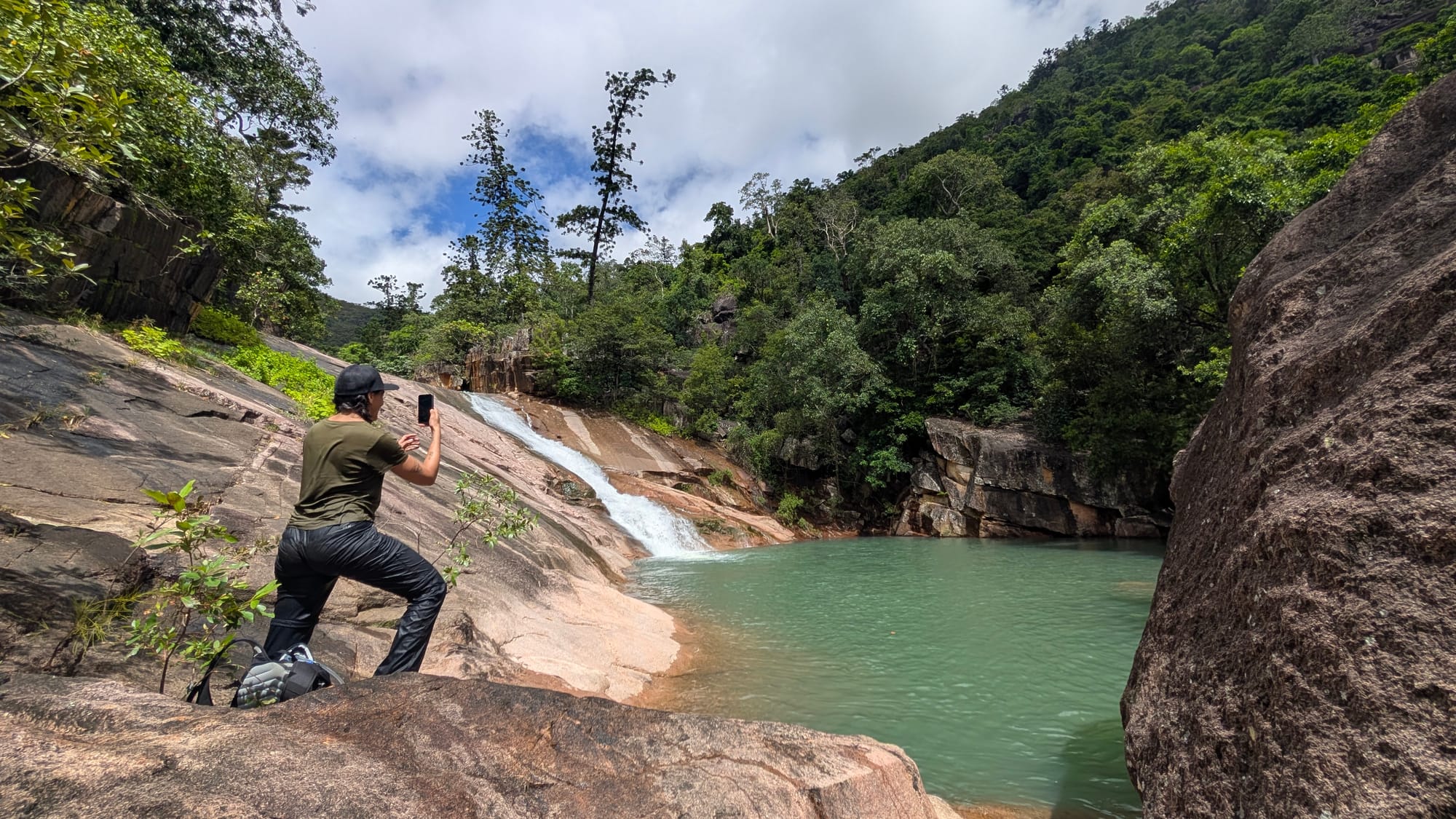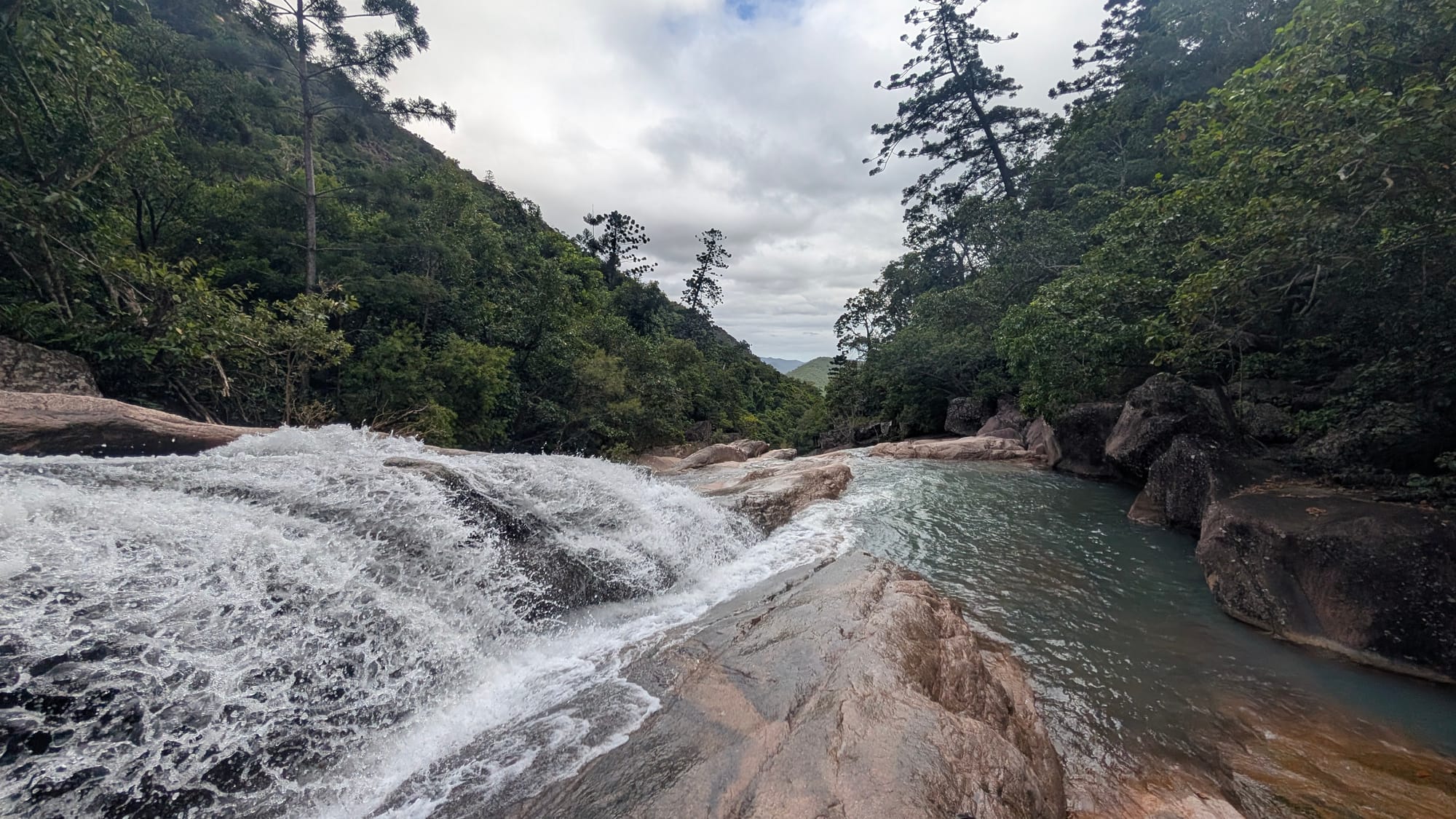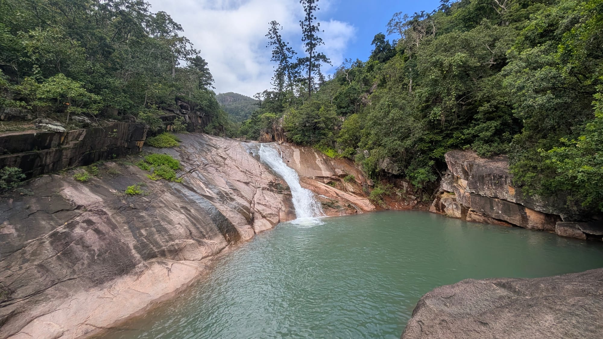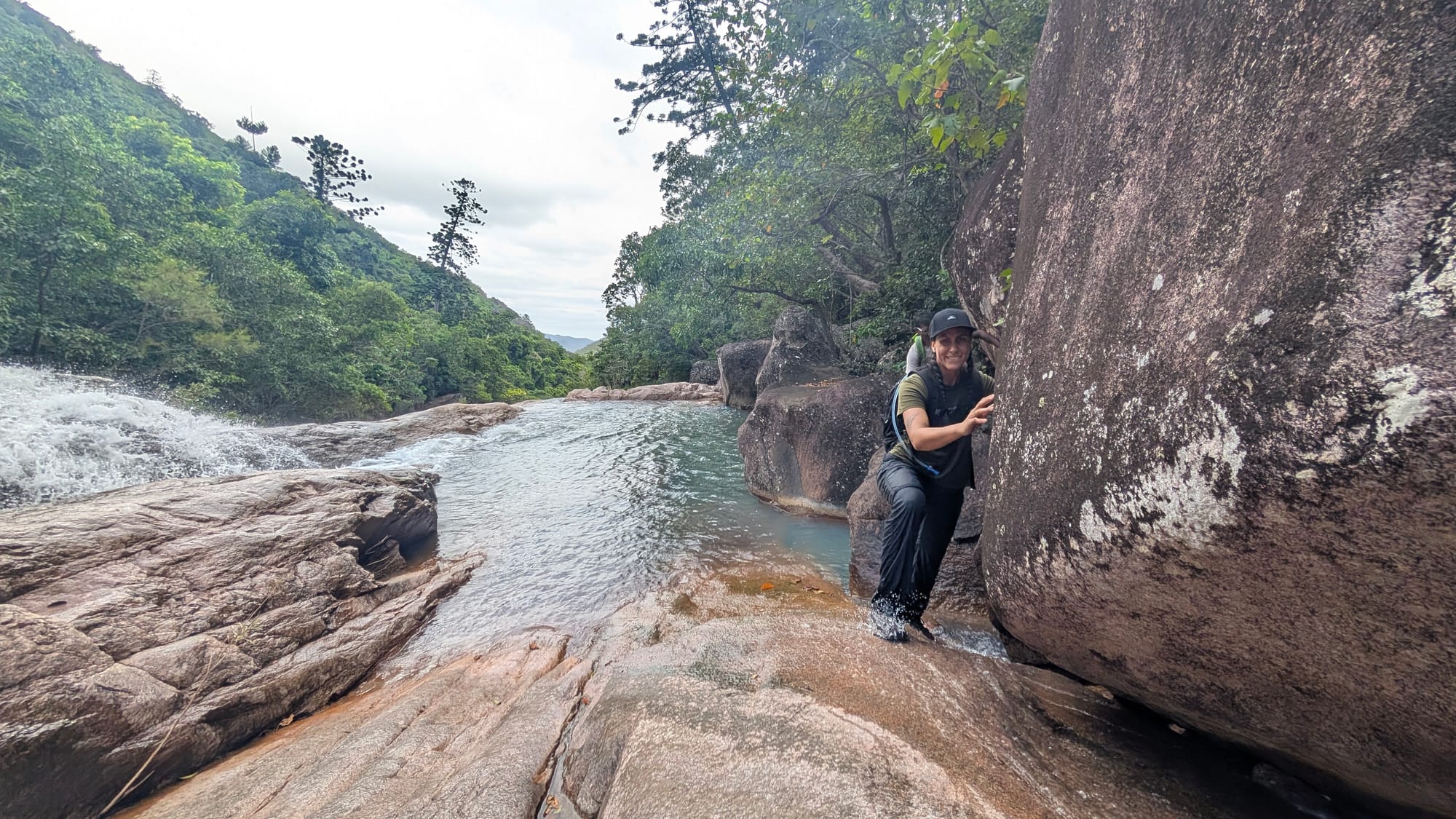 Not long after the cave we reached the main waterfall - a beautiful slabby cascade dropping into a clear swimming hole. Granite walls framed the pool and the water slid down polished rock into the basin below. It was the perfect place to stop.