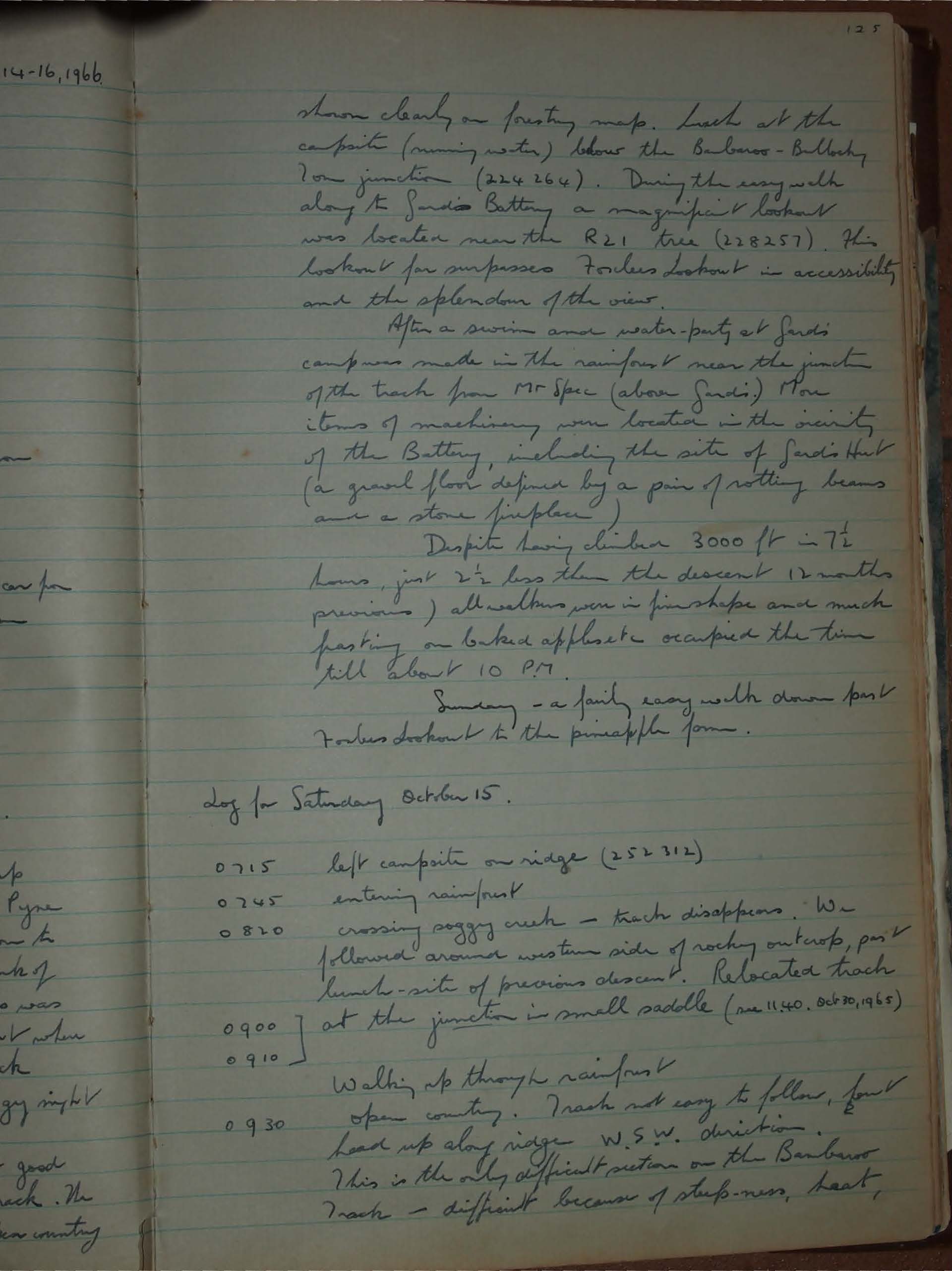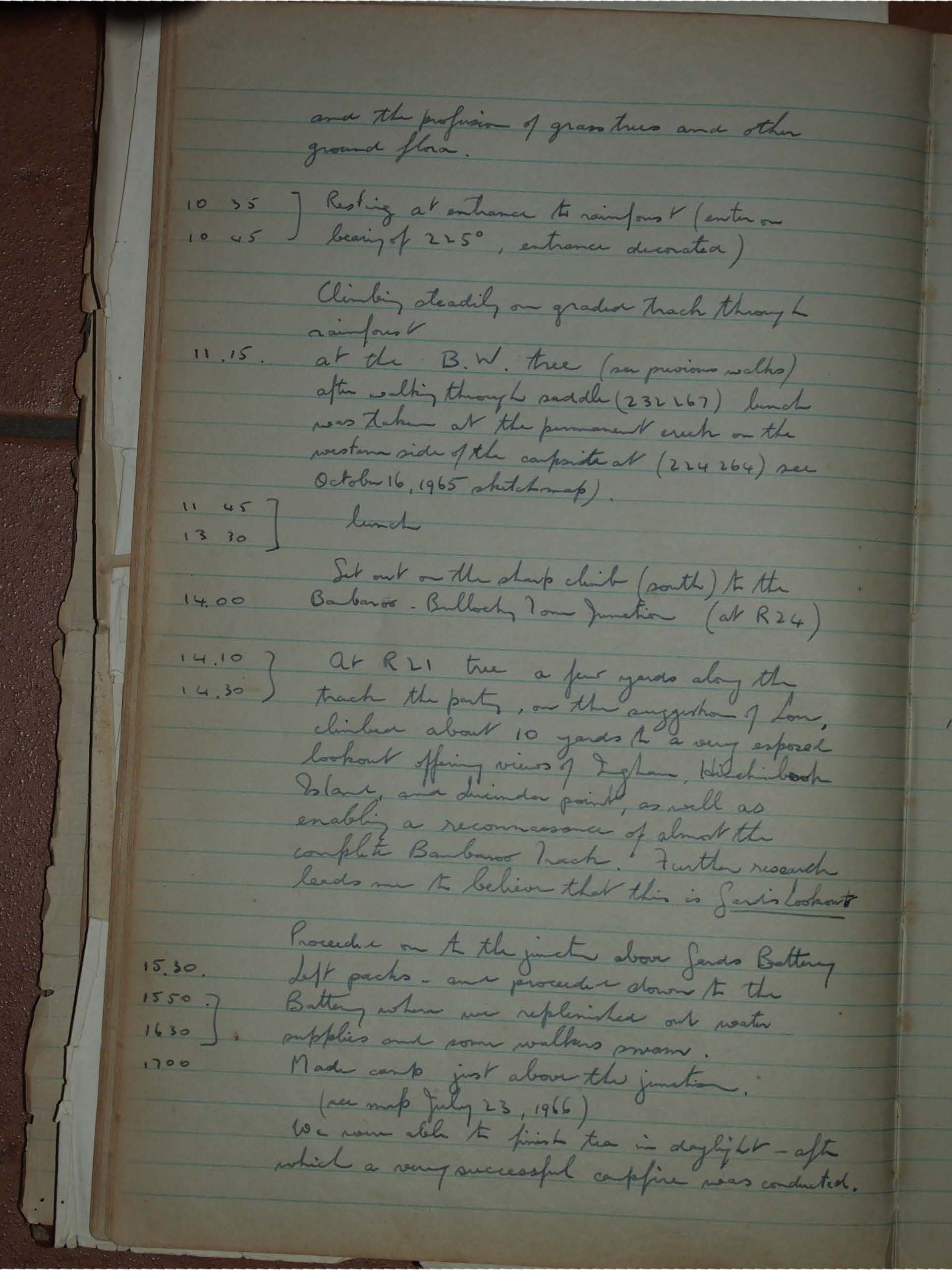 11.15. at the B.W. tree (on previous walks) after walking through saddle (232467) lunch was taken at the permanent creek on the western side of the composite at (224 264) see October 16, 1965 sketchmap).