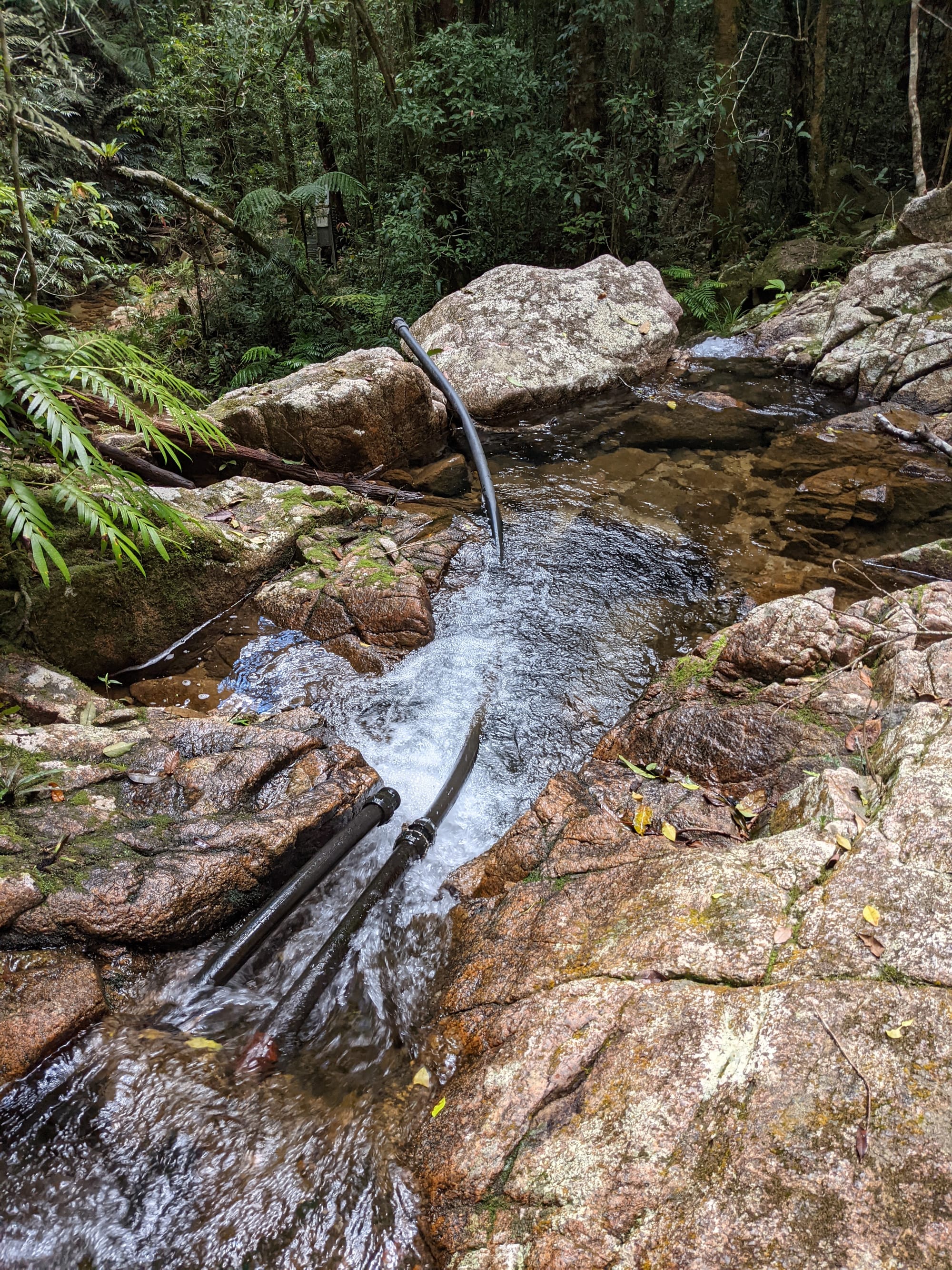 From there, we headed upstream to where the Paluma Dam water is piped across the landscape. The large above-ground pipe was an impressive sight, and the stagnant smell of the water in this section reminded us exactly why Wilfred had given the creek its memorable name many years ago.