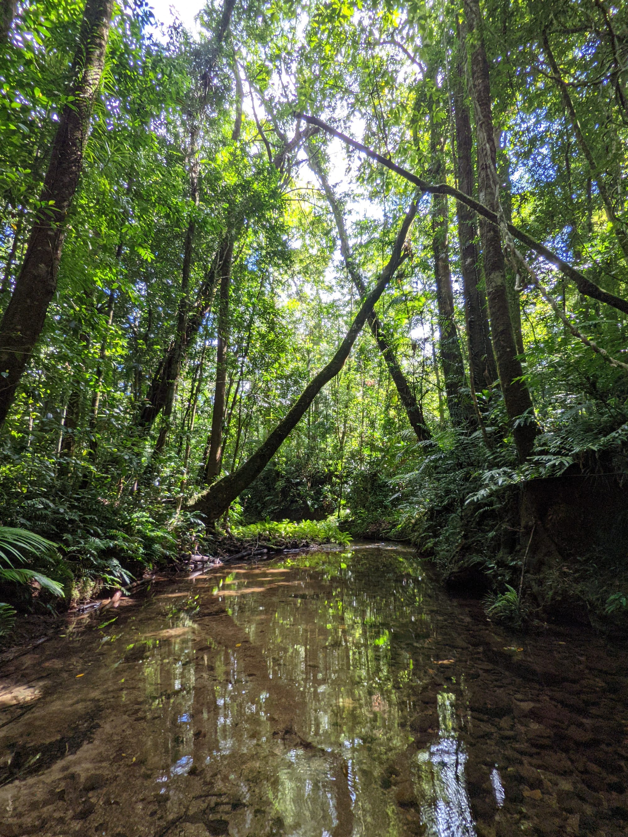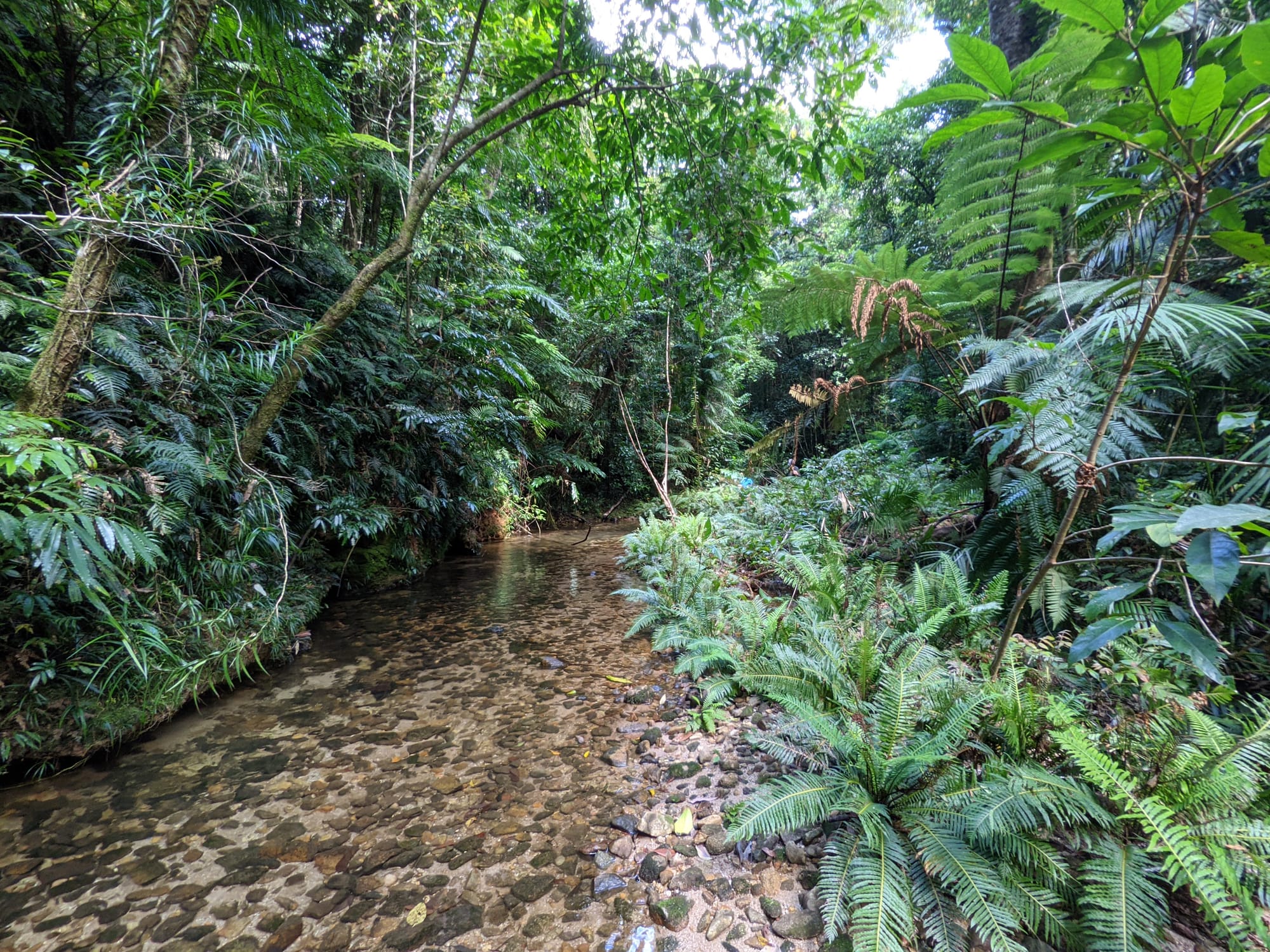 From the old research station, we picked up the old logging road, long overgrown in places but still followable, and used it to connect back to the main Paluma trail network. We then followed the Paluma Village to Paluma Dam track until reaching Stinky Creek.