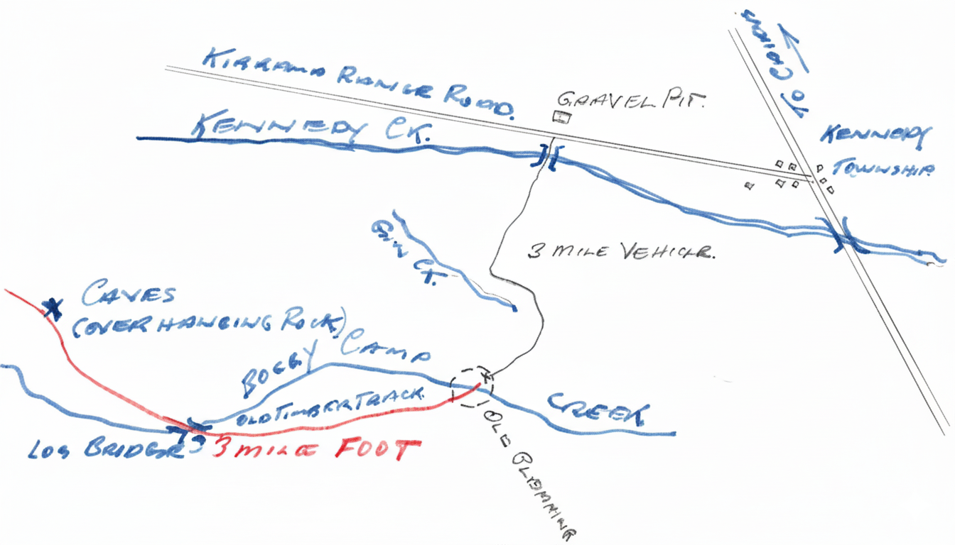 Location of search entrance to Murray Creek gorge
