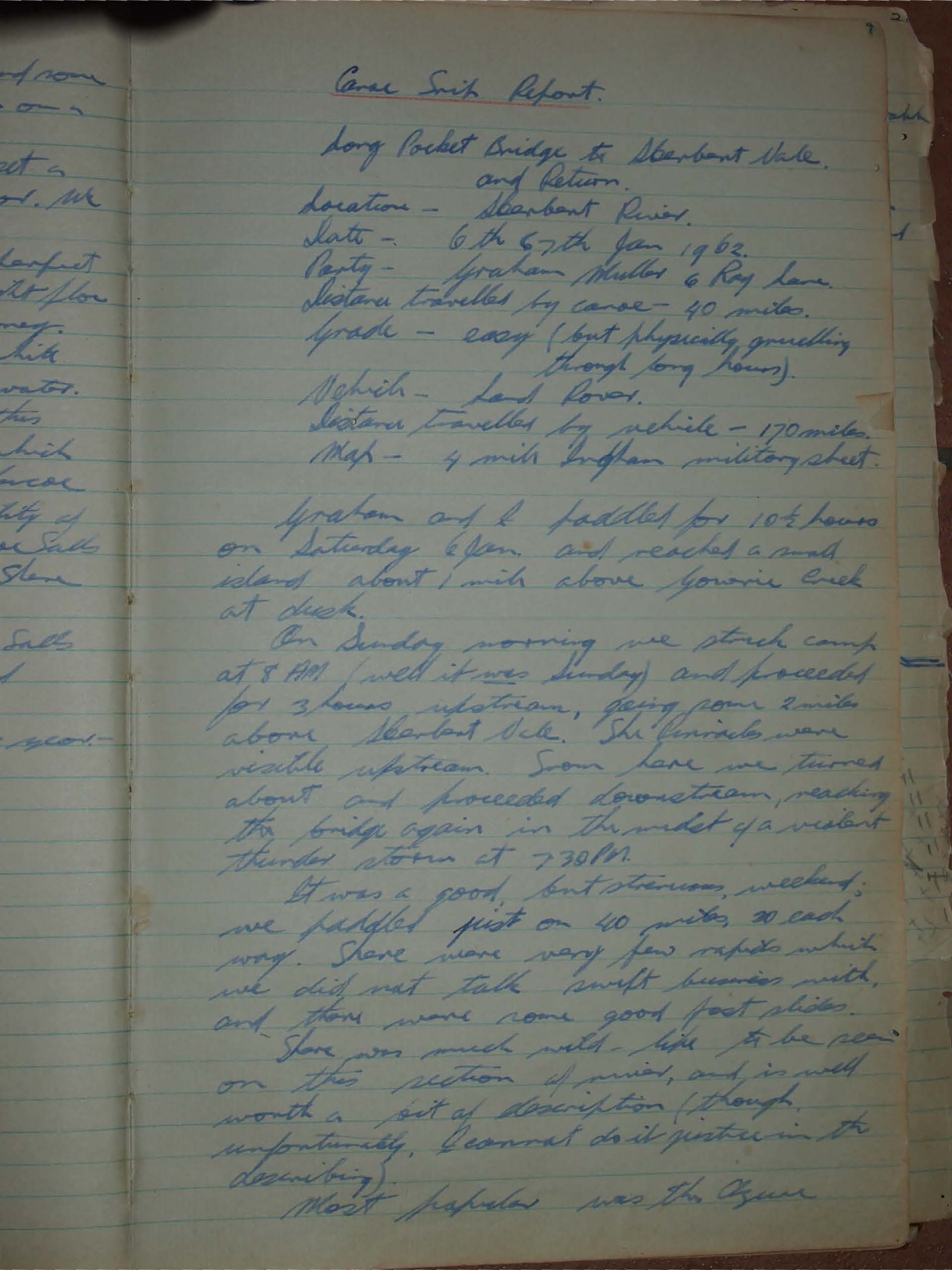 On Sunday morning we struck camp at 8 AM (well it was Sunday) and proceeded for 3 hours upstream, getting some 2 miles above Starbout Nale. The Pinnacles were visible upstream. From here we turned about and proceeded downstream, reaching the bridge again in the midst of a violent thunder storm at 7.30 PM.