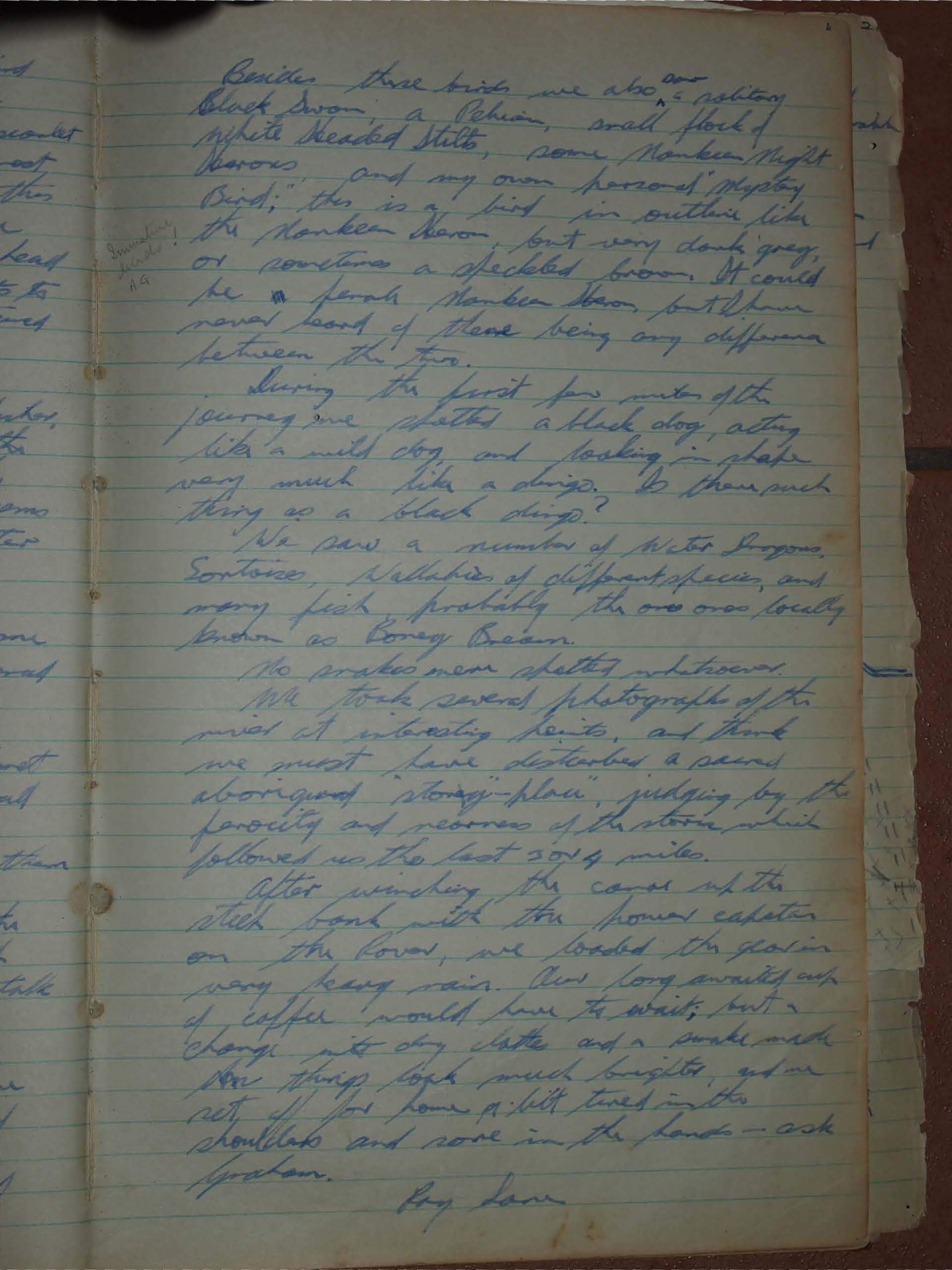 At irregular but persistent intervals, a terrible cawing scream would come from the scrub beside the river. This of course, was the White Cockatoo (Kakatoe galerita), seemingly to say in Forest lingo- "Go home, Aussie."