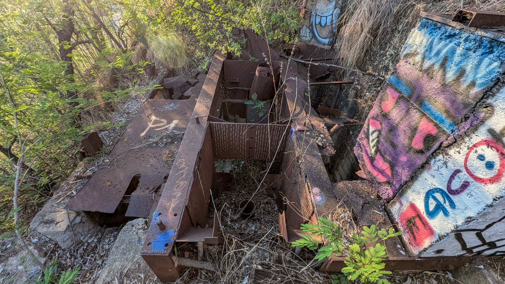 The longer route for walks 2 and 3 included a full traverse down Dianella Track to Triandra. Steep, loose sections kept everyone honest, especially after 5 p.m. Both groups explored the quarry ledges, comparing drilled holes, cut benches and the origin of the persistent “tunnel rumours”. Having more time on walk 3 meant we could identify several quarry features that often get misinterpreted as military. We inspected the old quarry ruins and metal work. The area is full of disused roads, concrete steps, homeless campsites, and rubbish.