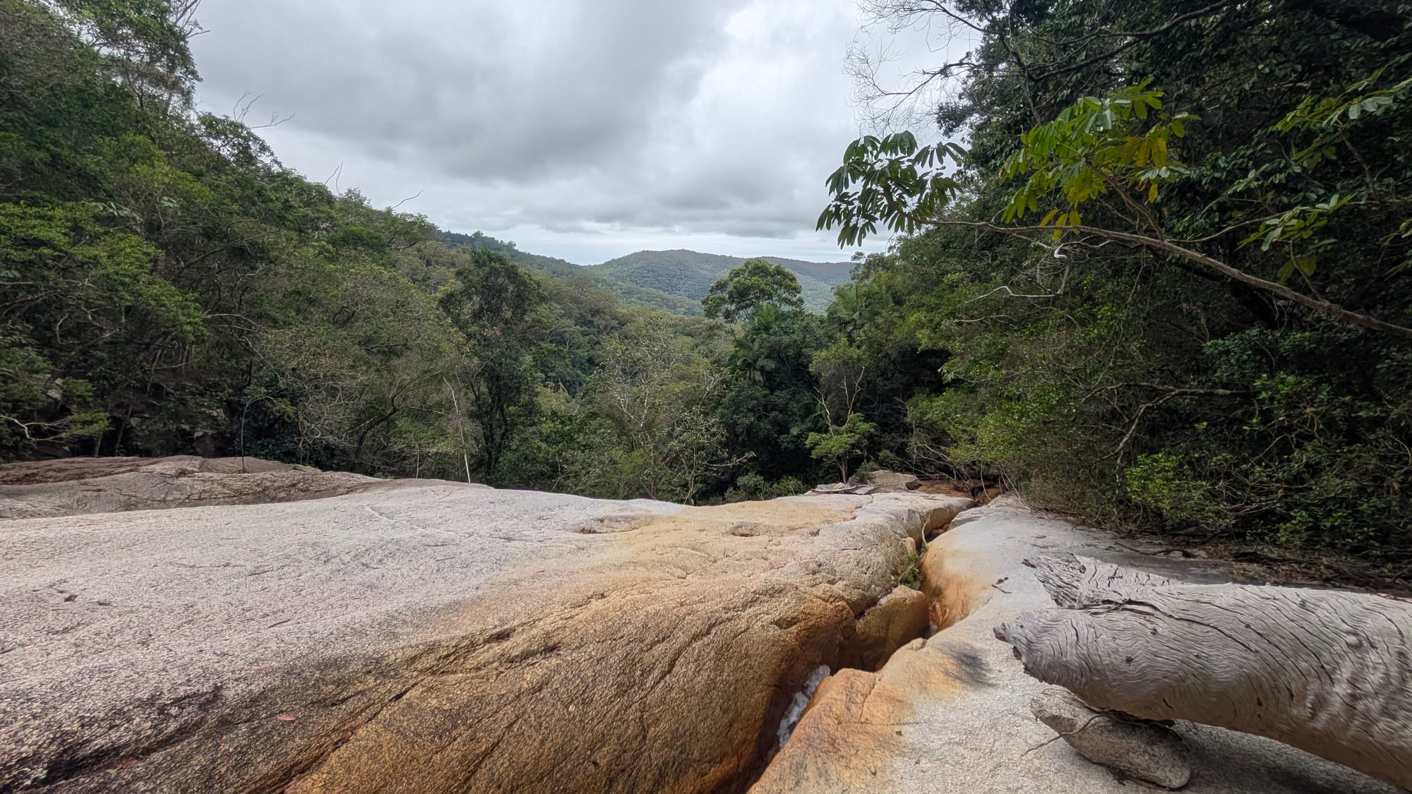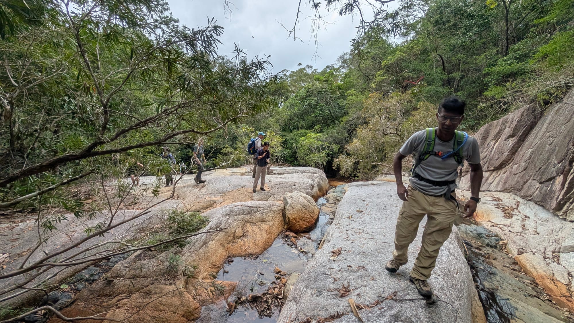 From here the adventure continued upstream. The creek quickly transitioned into broad granite slabs and smooth rock corridors typical of the Paluma Range. Some sections required careful foot placement on damp and occasionally slippery rock, but the scenery more than compensated for the effort.