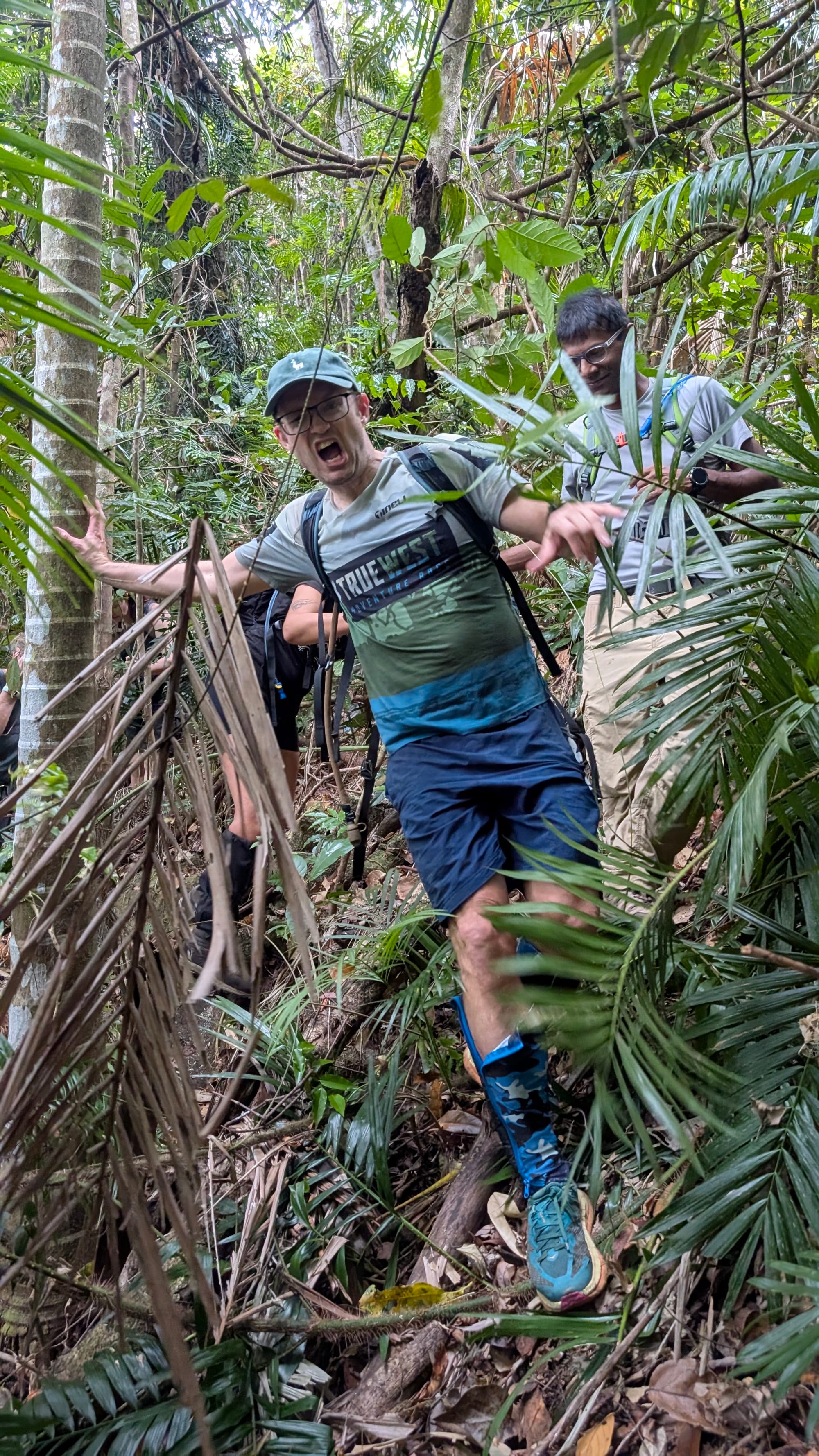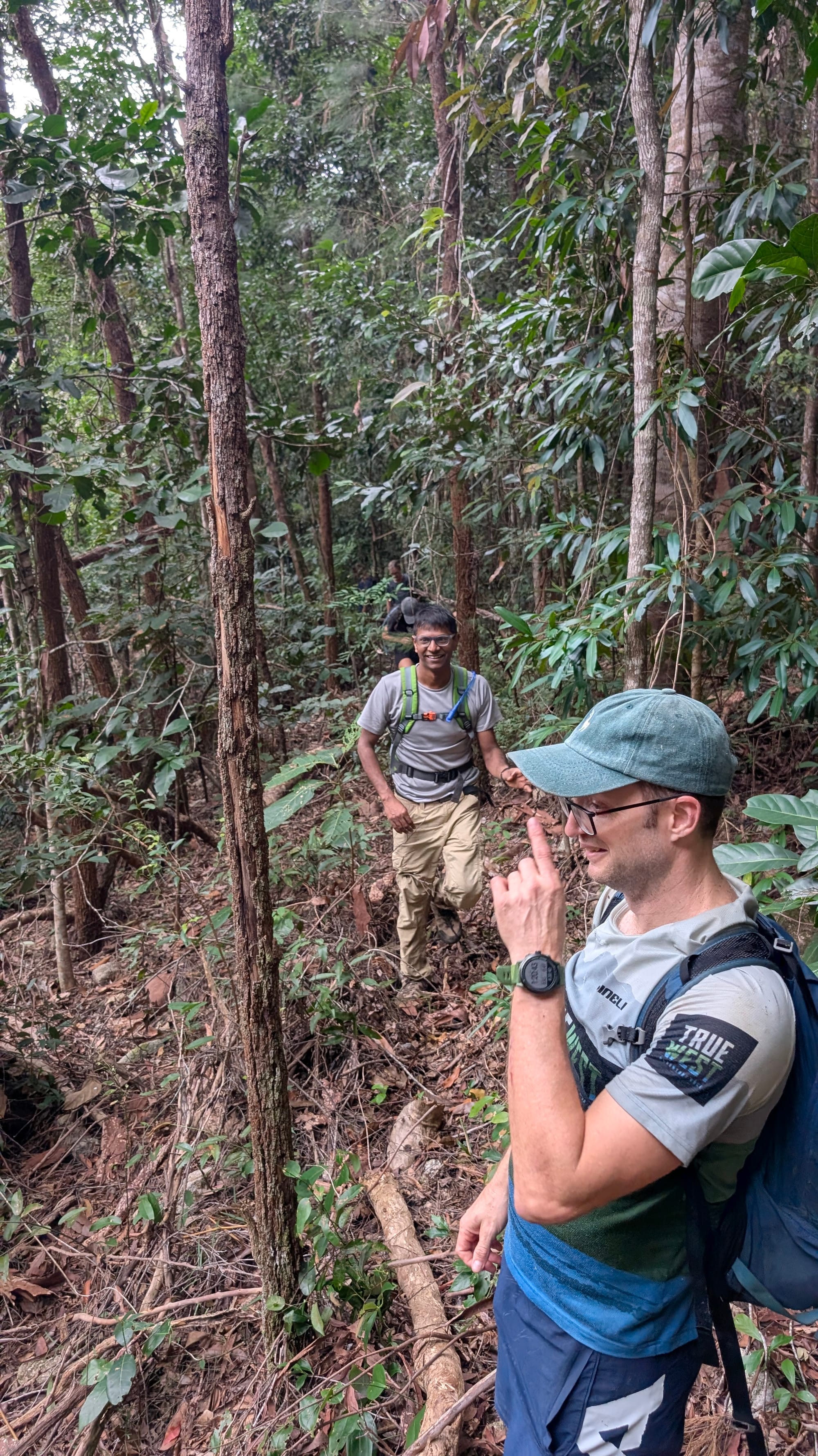 After spending some time exploring the cave and creek corridor, we began our return journey by contouring through the forest back toward Foxlee Track, and captured the moment Carl was caught up in the wait-a-while perfectly. Rejoining the track felt almost civilised after the off-track scrambling, and from there it was a steady descent back down the steep trail to the cars.