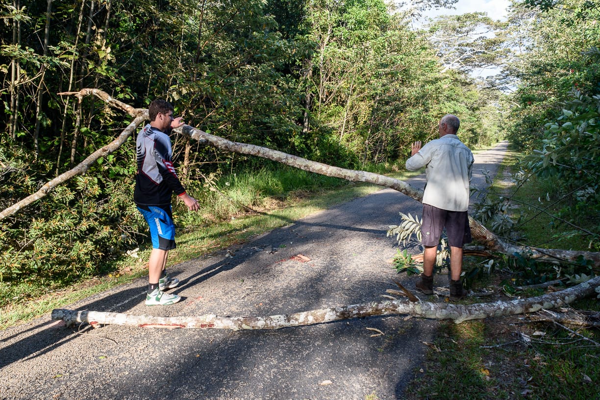 Saturday night sitting around a camp fire we even cut back on the port rations, ready for a big day. Kinda discussed plans a bit, maybe we can get to junction of Gold creek tomorrow. See what terrain we stumble into. A misty Sunday dawned in Paluma, and with eagerness two intrepid explorers set off into the unknown. An ominous start, a tree had fallen over Paluma Ewan road, nothing a quick chainsaw could not fix.