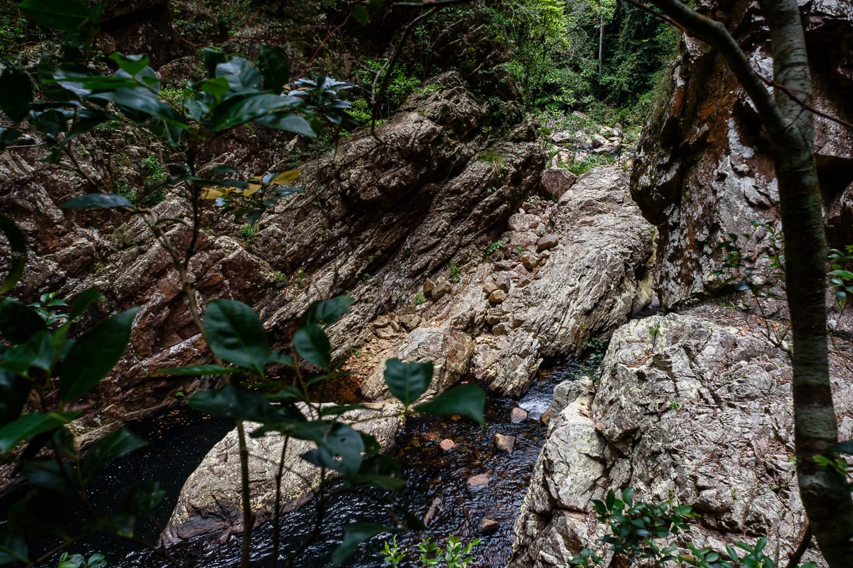 Decide time for a snack break. This turns into a lunch break. We gaze up at the falls, and decide in drier conditions that climbing the right side of the bottom falls looks doable – albeit whether that gets us to the middle platform or there is a blockage up there we could not tell. More future ideas fermenting.