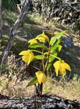 We headed off for a short explore to the nearby historical tin mining area (Garde’s), mining shafts and implements, and then up to Buttercup lookout. The buttercup orchids were in flower, but the other two orchid types there were not in flower yet. Nice view from the lookout with Mt Halifax prominent in the far distance.