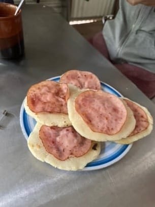 Sunday – short rain shower about 0400. Dawn was nice, dry and cool. Cacophony of bird songs abound in the rainforest. Debbie bade farewell as she started her return trek down Bullocky Toms Track. At the hut with our group, I watched as cornflour was kneaded into dough, cooked as flat bread, ham sizzled on the pan, and all served up – breakfast (I can get used to being fed by people – no need for me to take food anymore).