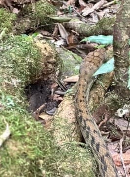We left Gold and headed to Crystal Creek Falls. Along the way we came across a large python on the track. At Crystal Creek Falls, we had lunch, swimming and relaxing at these awesome waterfalls and pool. The buttercup orchids were also in flower here, but not the other types. The usual red-bellied snake was sunning itself on the rocks at the pool, quickly slithering into its hole in the rocks when we arrived.