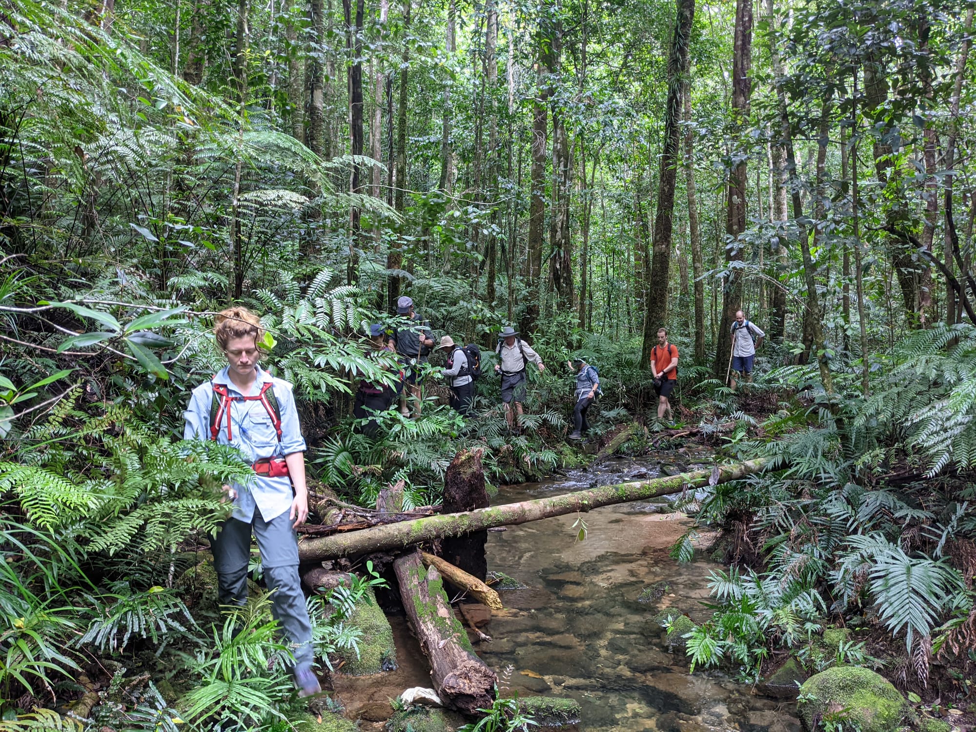 We met at the Paluma Village Green early in the morning before driving out to Paluma Dam to begin the walk. Keith had previously walked some of the area we were heading to. The morning started along the familiar forestry track winding through the rainforest before we eventually left the trail behind and dropped off-track into Dolby Creek.