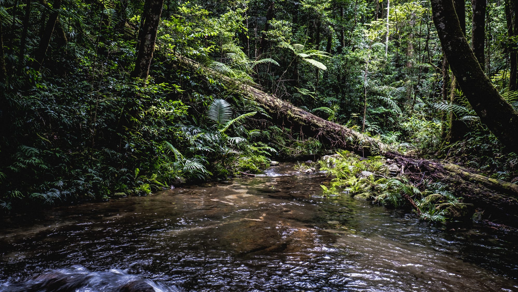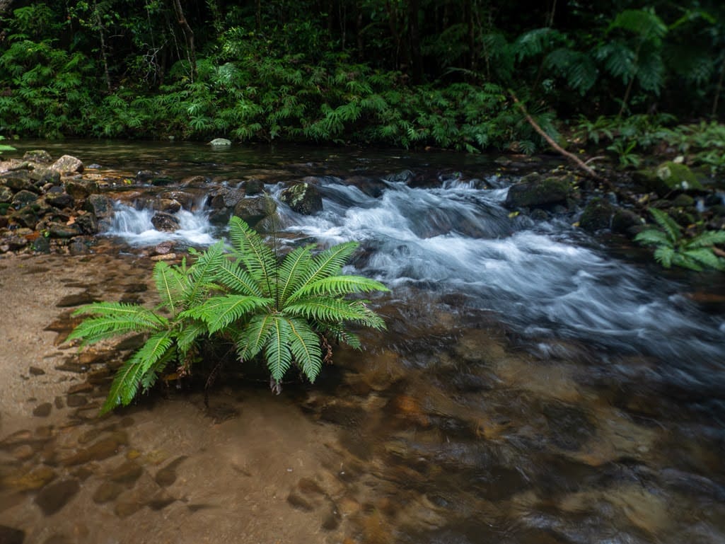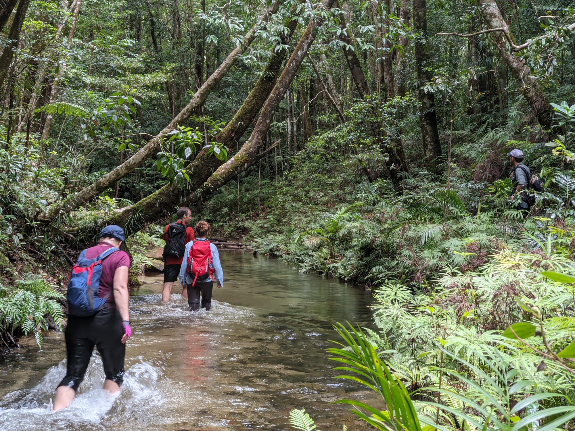 Explore Dolby Creek and upper Crystal Creek in Paluma Range National Park on this off-track rainforest adventure near Townsville. Wade through clear creeks, swim at Junction Spa Pools, and discover historic tin mining diggings, stone walls, and old artefacts.