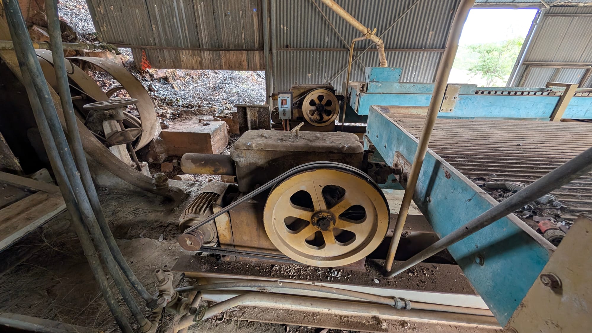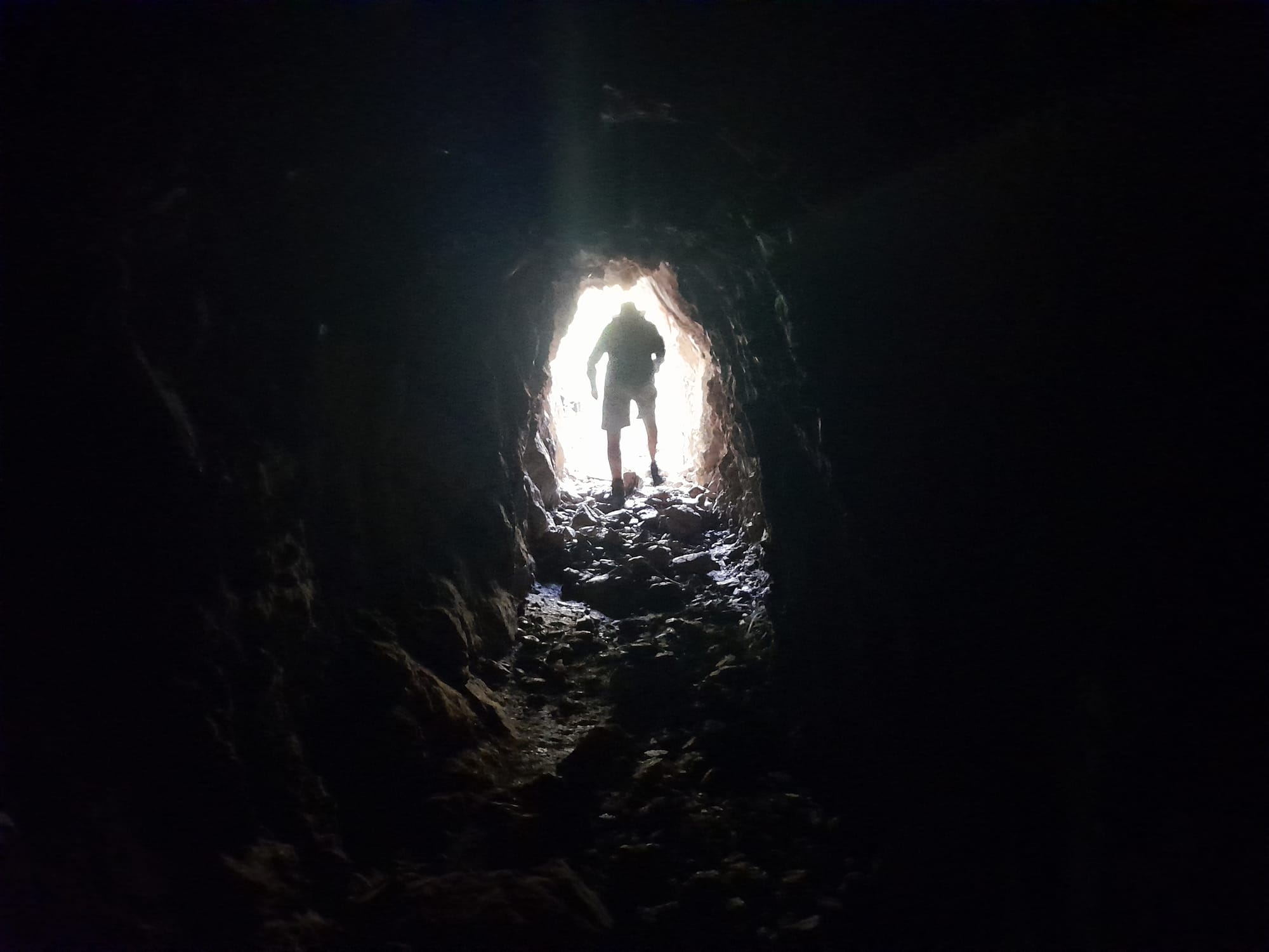 From there, we wandered back upstream towards the vehicles. A few in the group decided that was enough for the afternoon, while the rest of us pushed on to another nearby mining area. This site had horizontal tunnels, old trolley tracks, ore scattered about, and more substantial remains of machinery and structures. The main tunnel has old dynamite explosives and is about 70m long. However, on this trip, it was flooded, and the entrance seemed to have collapsed a little more. So we checked out another tunnel just above. There were plenty of striking blue and green mineral-stained rocks around at this site as well, though not quite as abundant as those near the earlier battery site.