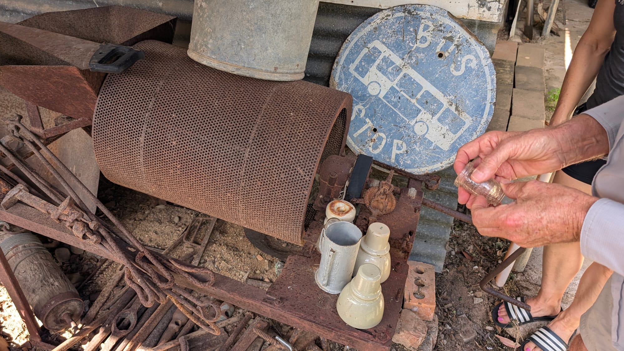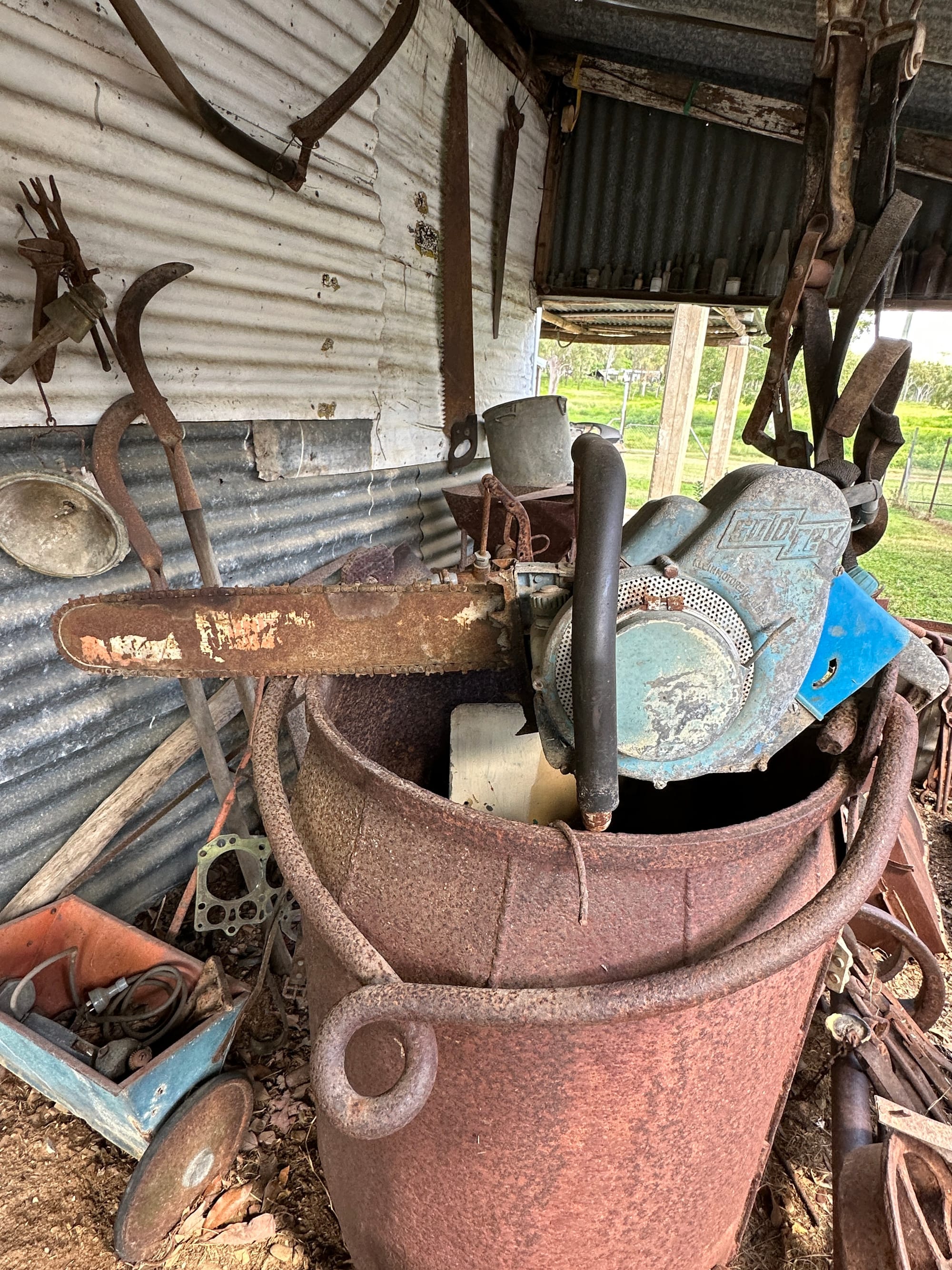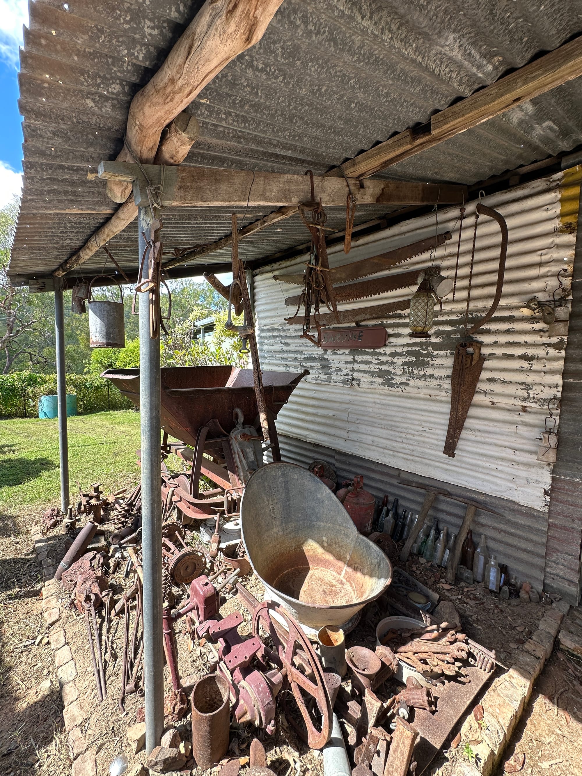 From there, we drove on to one of the private properties where we were warmly welcomed by the homestead owners. We had a chat and were lucky enough to have a look through their impressive collection of historical items gathered from the property over the years. There were old chainsaws, mining gear, glass bottles, and all sorts of relics that immediately set the tone for the weekend.