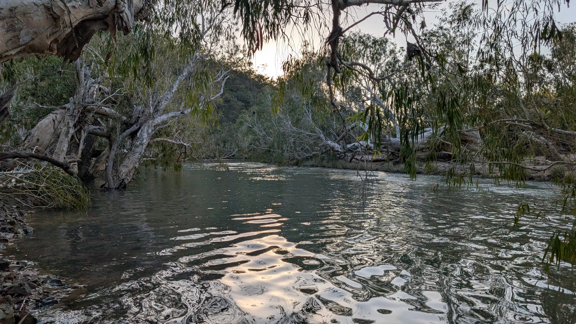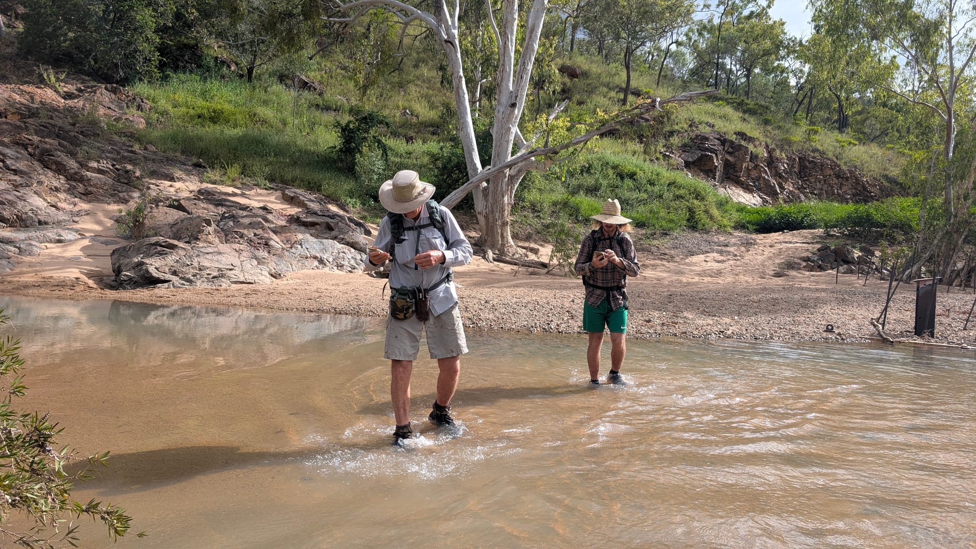 Our first stop was the old bridge crossing on the river, a place rumoured to be lined with rusty battery relics. Naturally, this sparked the curiosity of Luen and Wilfred, and we wandered along the sandy riverbed - the river still carrying a decent flow. Despite the rumours, we came up empty-handed - no batteries, no great relic discoveries, and no hidden treasure. Still, it was a good excuse to stretch the legs and start the weekend with a bit of exploration.