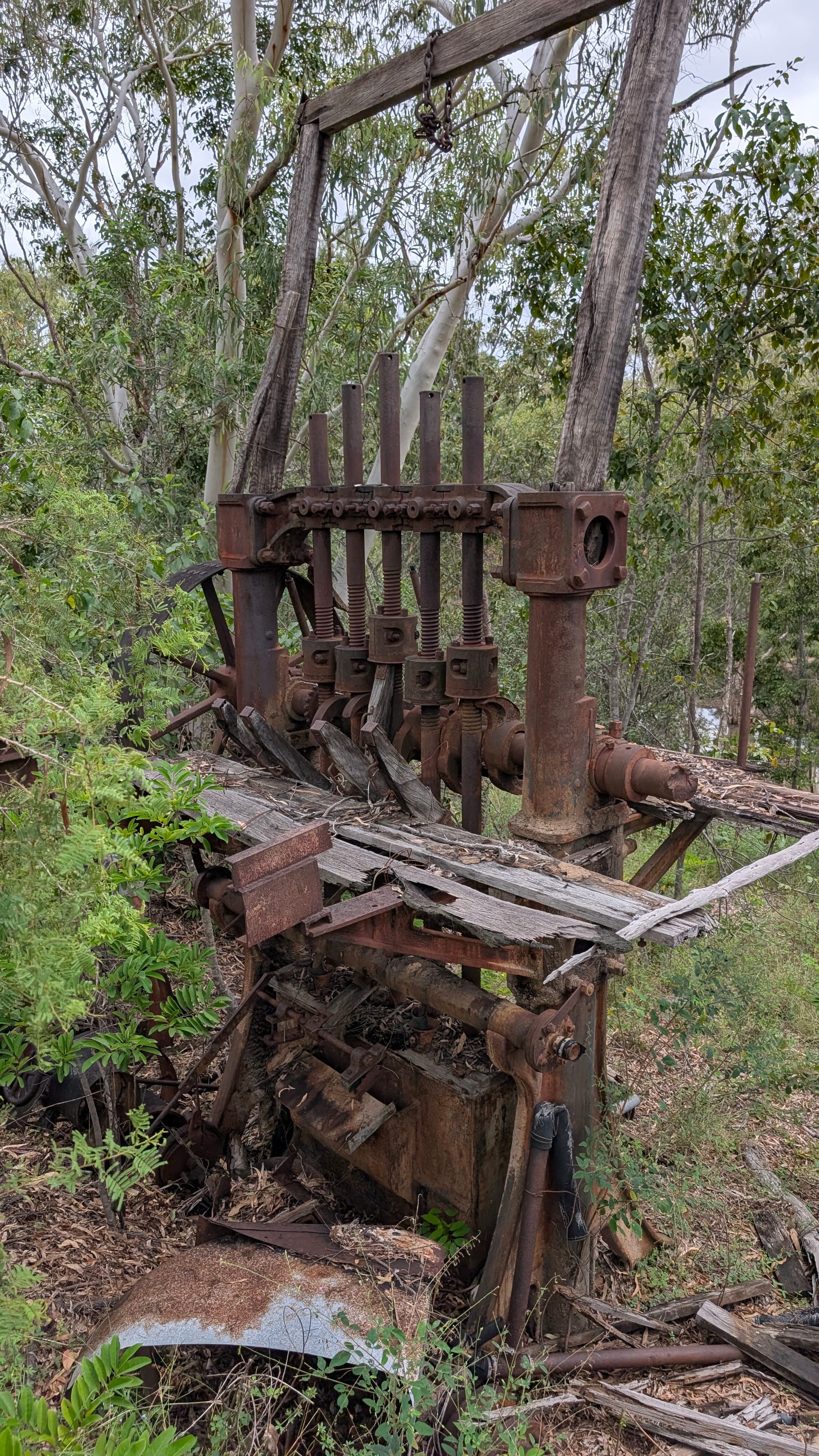 The next morning, we packed up and explored another historic mining settlement area further upstream. This was one of those places where you could really feel the past. There were abandoned houses, rusting vehicles, old household items and white goods, mining machinery, engines, and all manner of relics scattered across the site. Some of the buildings were half-collapsed, and the remains painted a vivid picture of how people once lived, what they used, and what worked out there. We also inspected another battery in this area, though it was much more weathered and had not been restored like the one we visited the previous day.