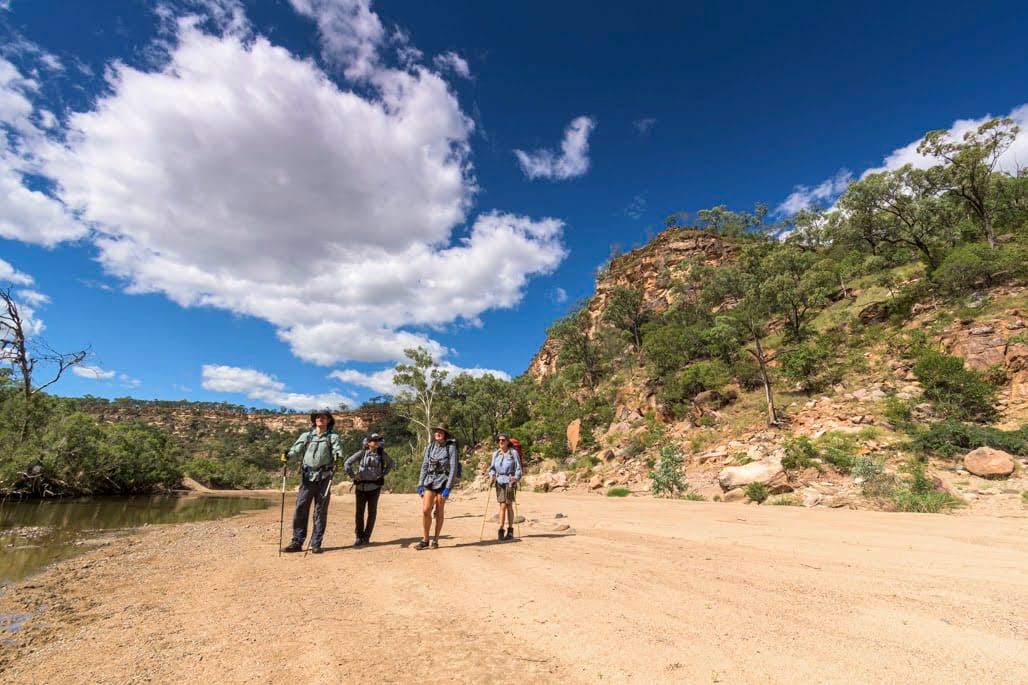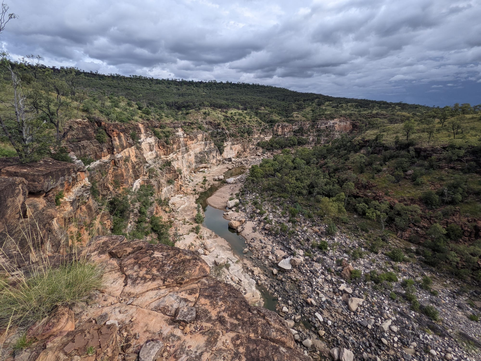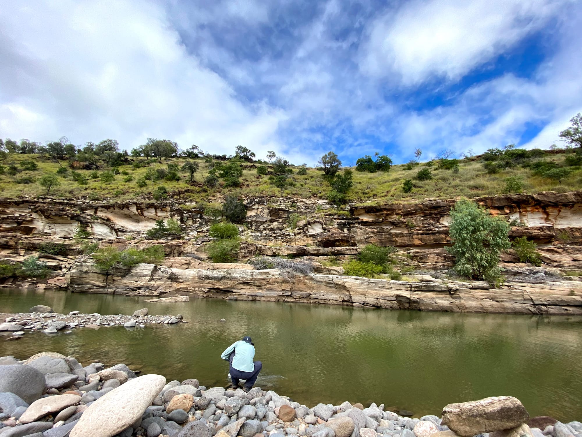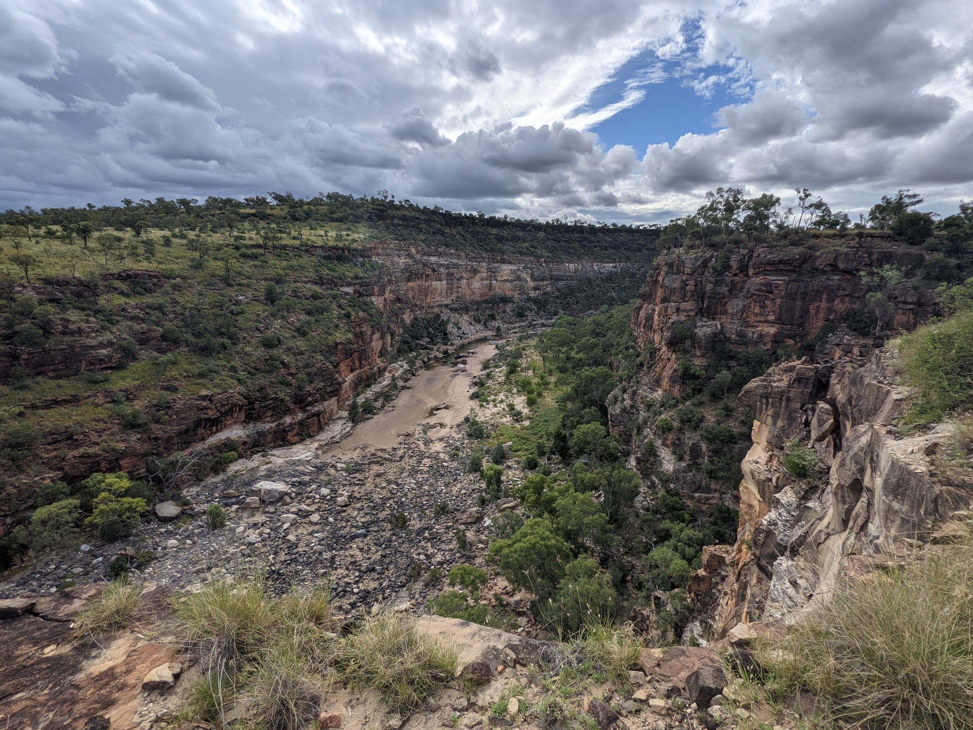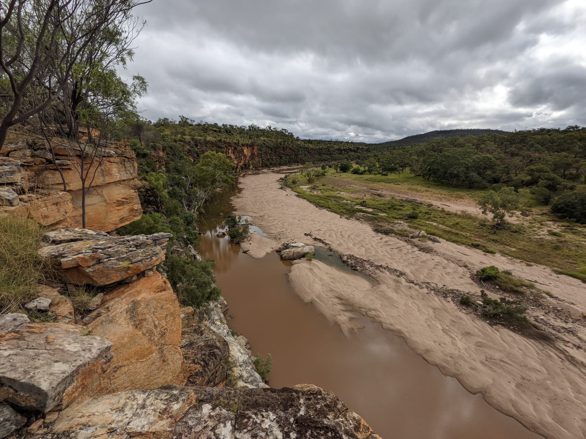 The group met over the Easter long weekend for the drive out to Hughenden country, with the walk starting from The Pyramid day-use area on Good Friday. It is always a striking contrast arriving there - flat, dry open country above, then suddenly a deep, dramatic gorge cut into the earth below. Packs were hoisted, final checks made, and everyone began the descent track into the gorge. Once down at creek level, the real walk began.