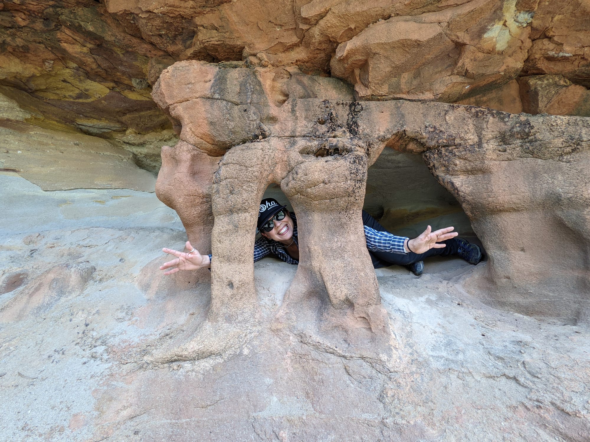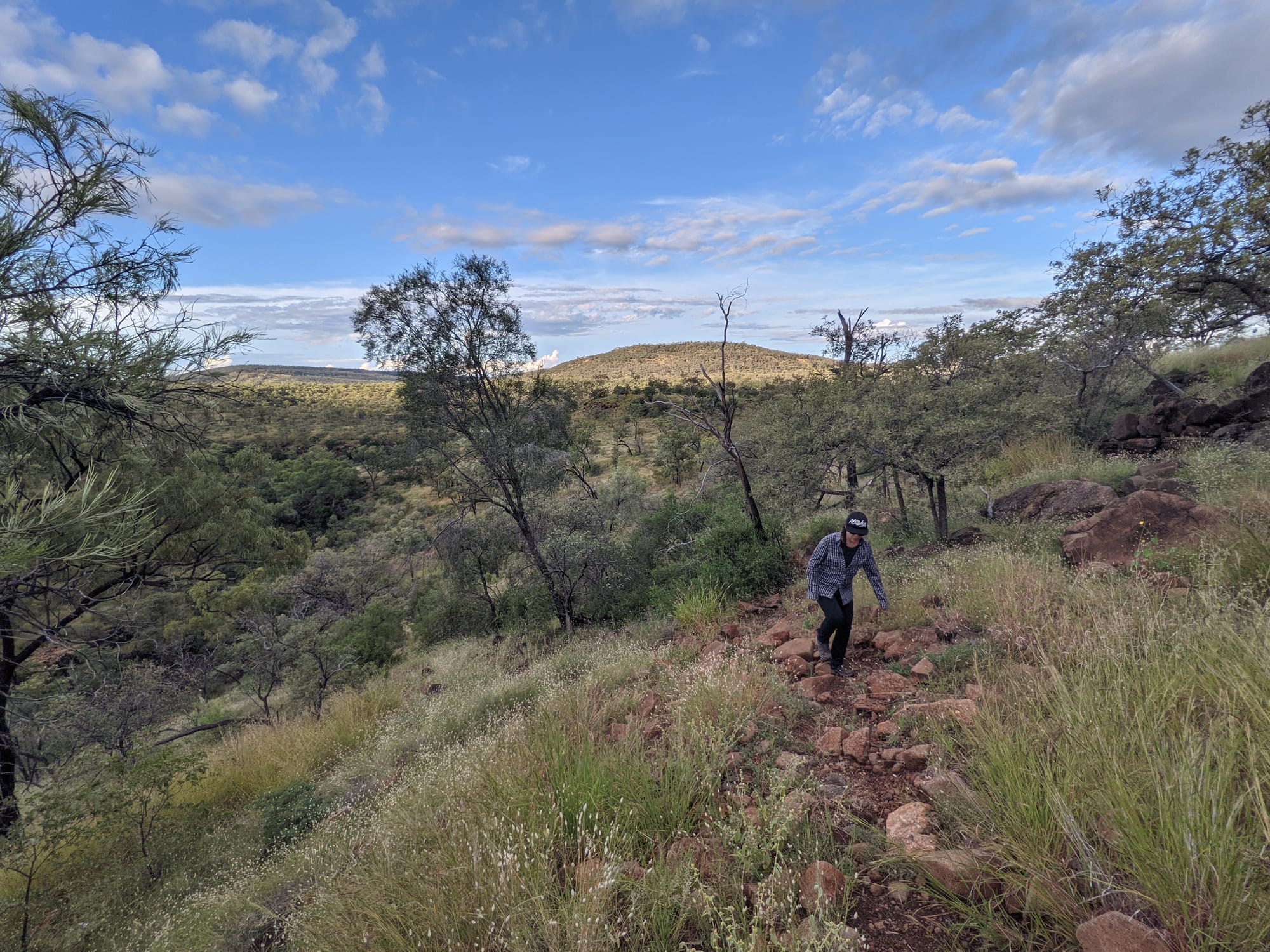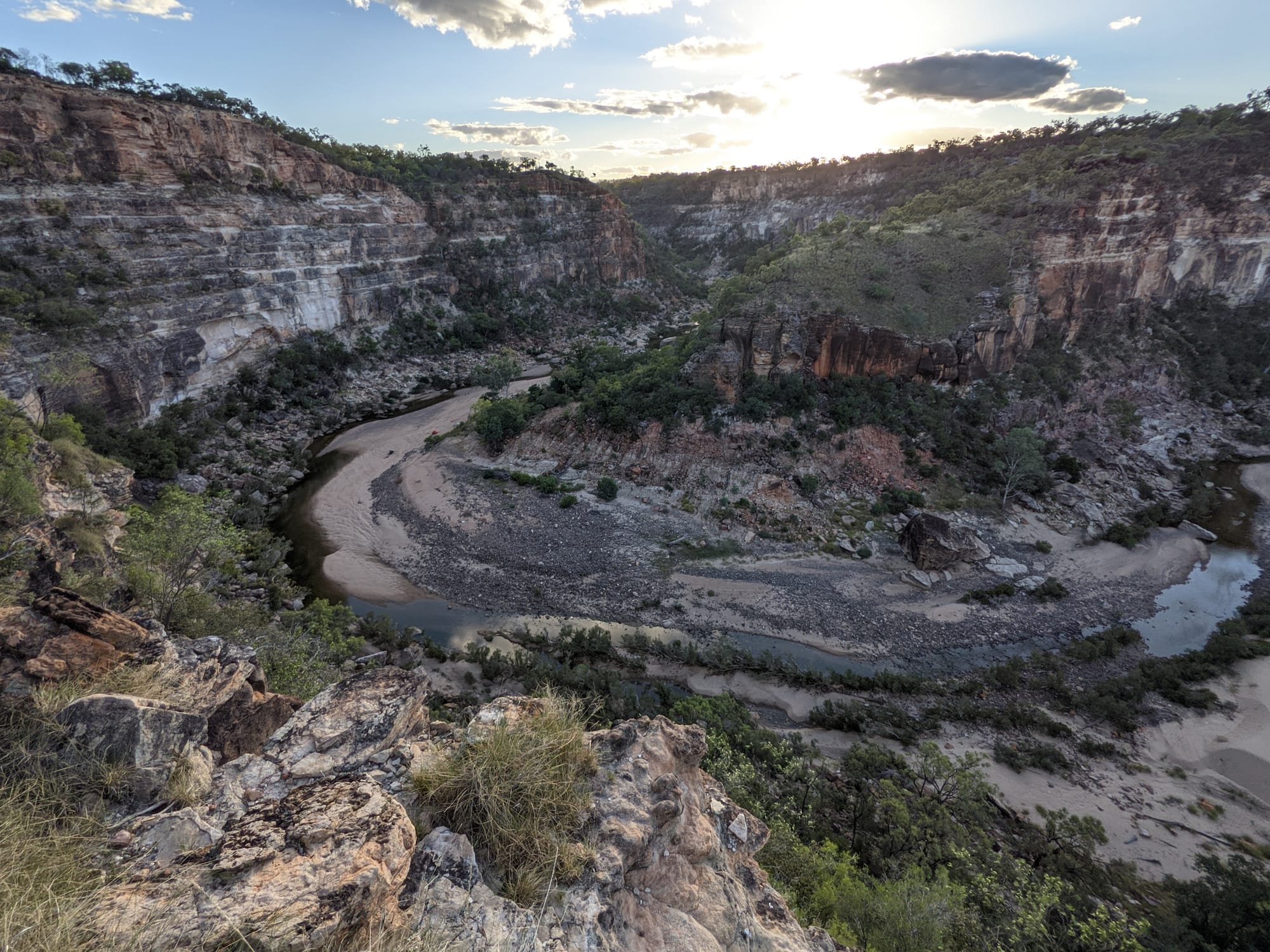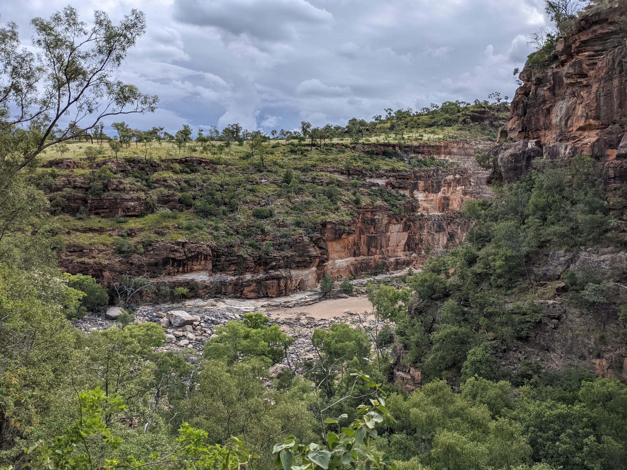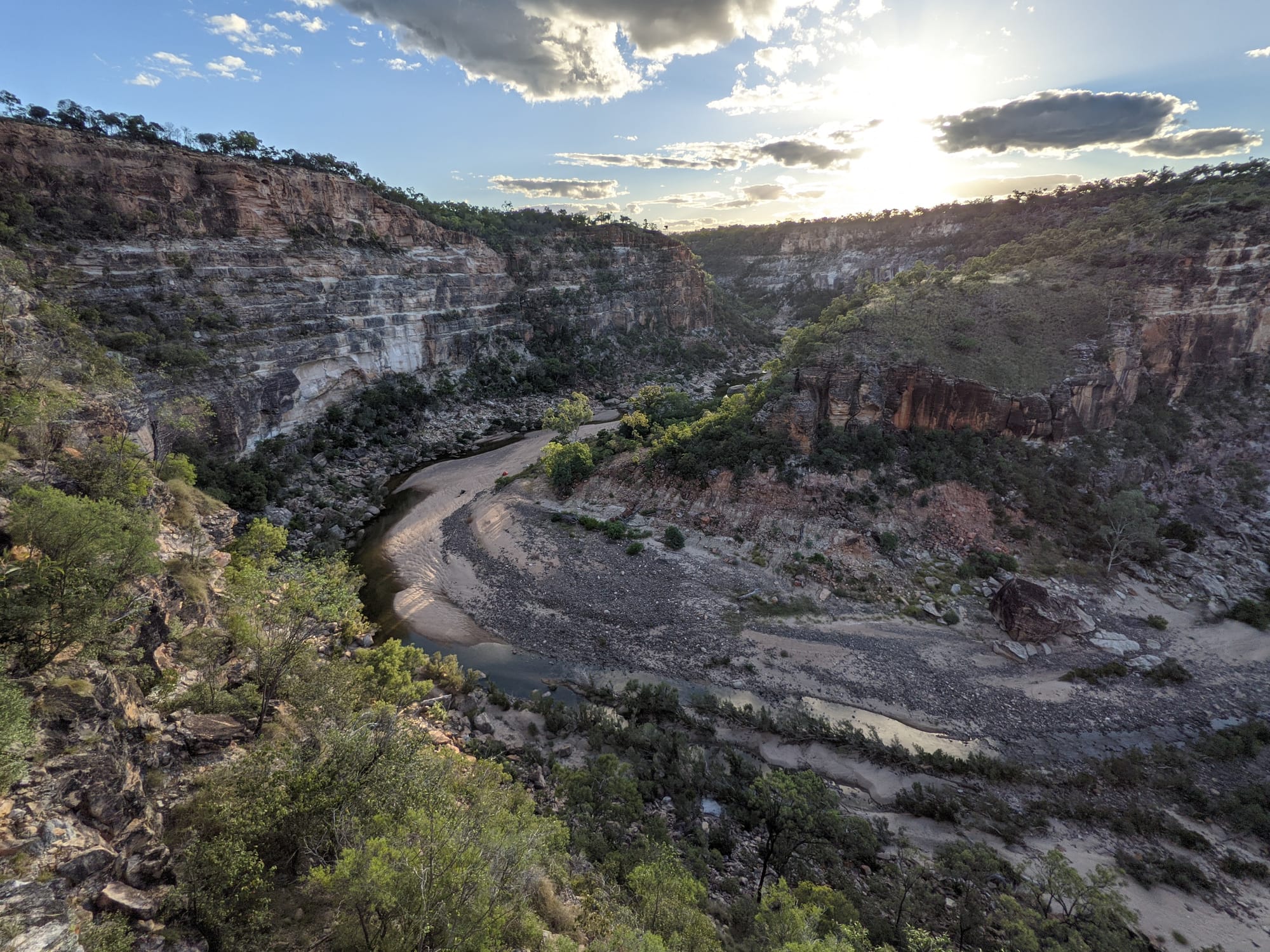 The group met over the Easter long weekend for the drive out to Hughenden country, with the walk starting from The Pyramid day-use area on Good Friday. It is always a striking contrast arriving there - flat, dry open country above, then suddenly a deep, dramatic gorge cut into the earth below. Packs were hoisted, final checks made, and everyone began the descent track into the gorge. Once down at creek level, the real walk began.