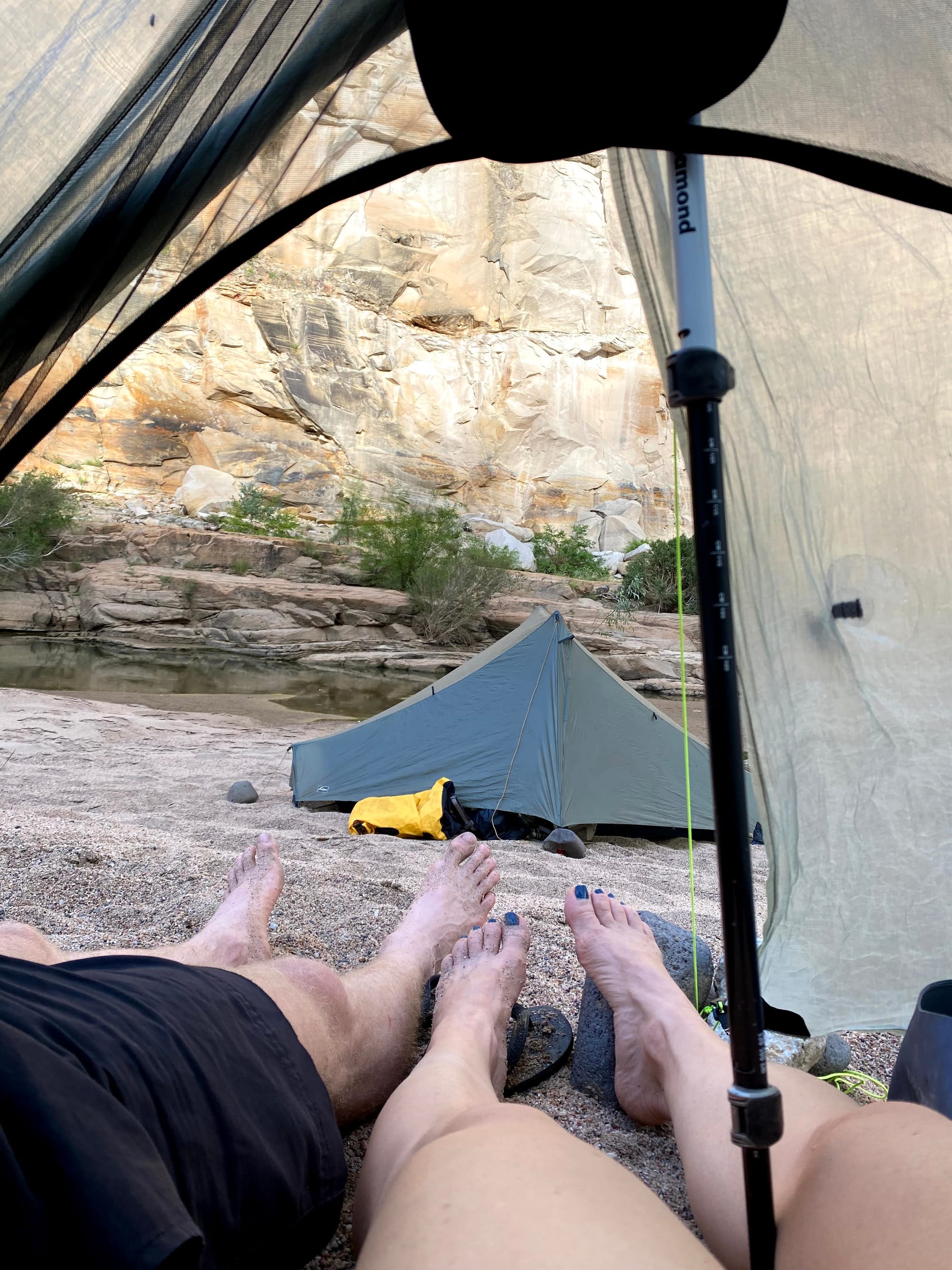 This was the longest day of the trip, and it demanded steady effort. There was no rushing through it. Instead, the group simply kept working downstream, one crossing and one bend at a time, knowing that somewhere ahead would be the next camp. Eventually, a suitable campsite was found in the gorge with access to water and enough room to settle in for the night. By then, everyone had earned a good rest. It was a proper wilderness camp - no facilities, no signs of anyone else, and just that quiet sense of being out on your own terms in a remarkable landscape. These are the camps that stay in the memory.