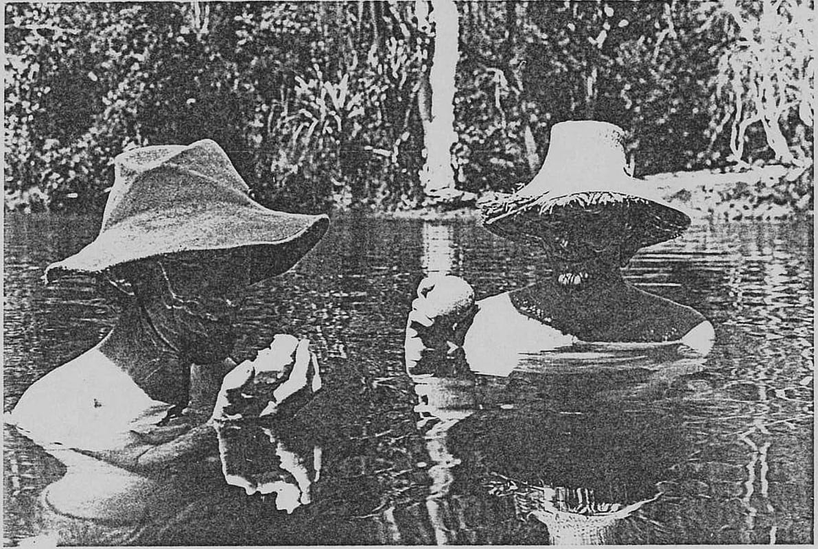 John reported about his boots, "They're more waterproof than sandshoes, but when they get wet, they become buckets." After one creek crossing John removed his boots and as Glenn was drinking from the other side of the creek, one of the "buckets" came screaming past his head. John had hurtled one boot to safety and was swimming after the other one which hadn't quite made it.