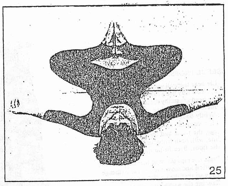 - Open the chest so that you can breathe well. There should be no tension in the lower abdomen. Breathe evenly and keep the eyes relaxed (Fig. 25).