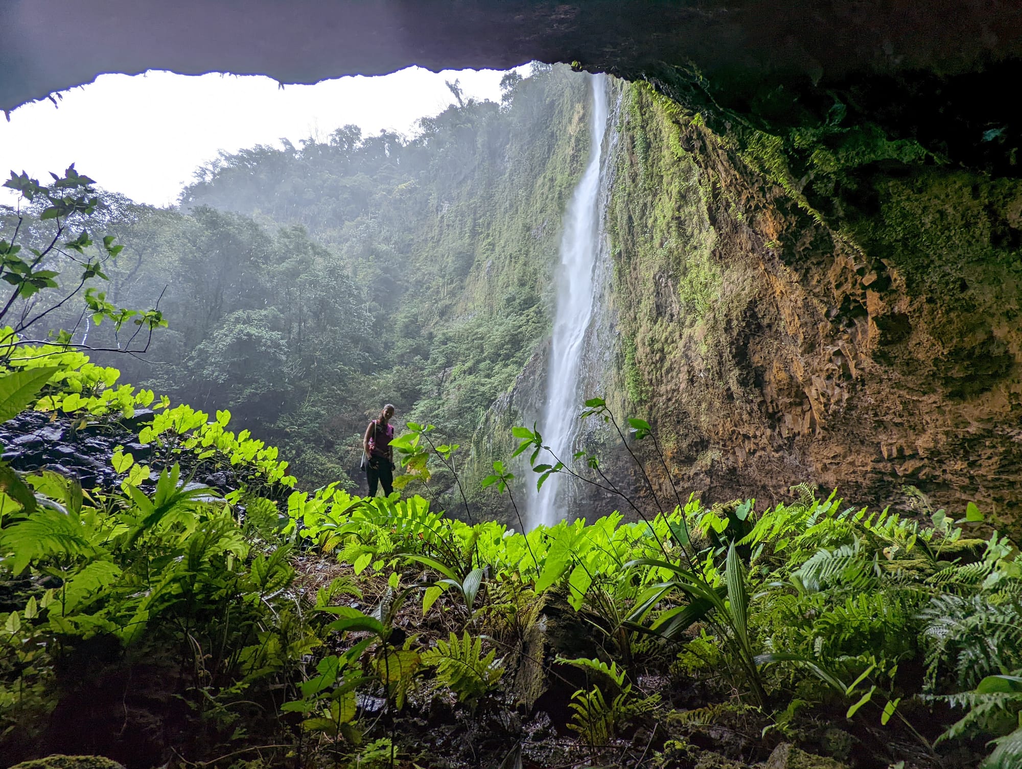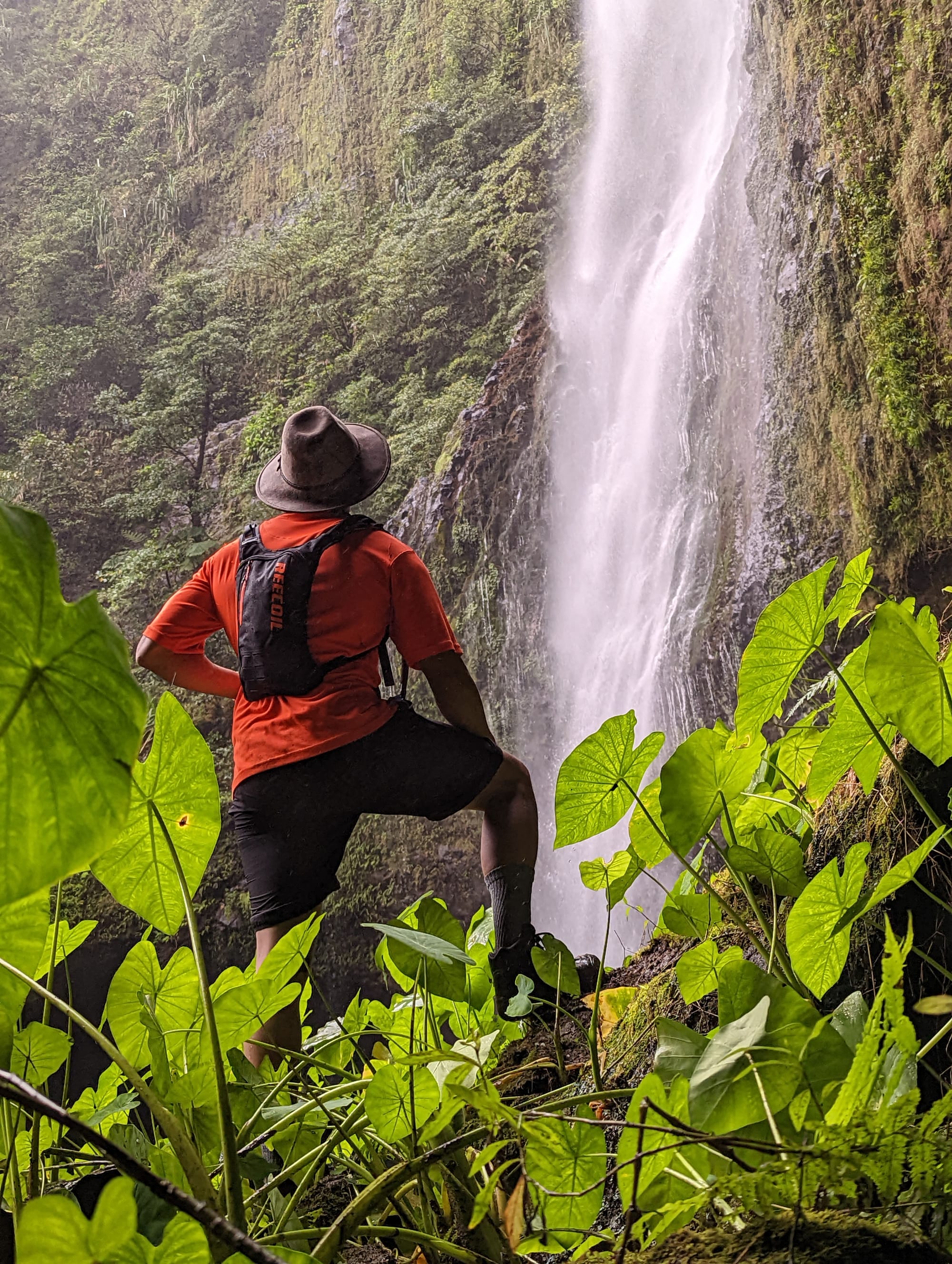 Today, the Townsville Bushwalking Club went to explore part of Wooroonooran National Park in North Queensland Australia. With Luen as our guide, our aim was to visit this stunning waterfall. The first part of the circuit involved hiking steeply down a ridgeline into a river and then upstream to a tributary. From the junction, we rock-hopped upstream to the base of this massive waterfall. This impressive waterfall has these cool overhangs of basalt rock and interesting rock formations. We finished the hike by ascending another spur to the top of the falls and then back into civilisation.