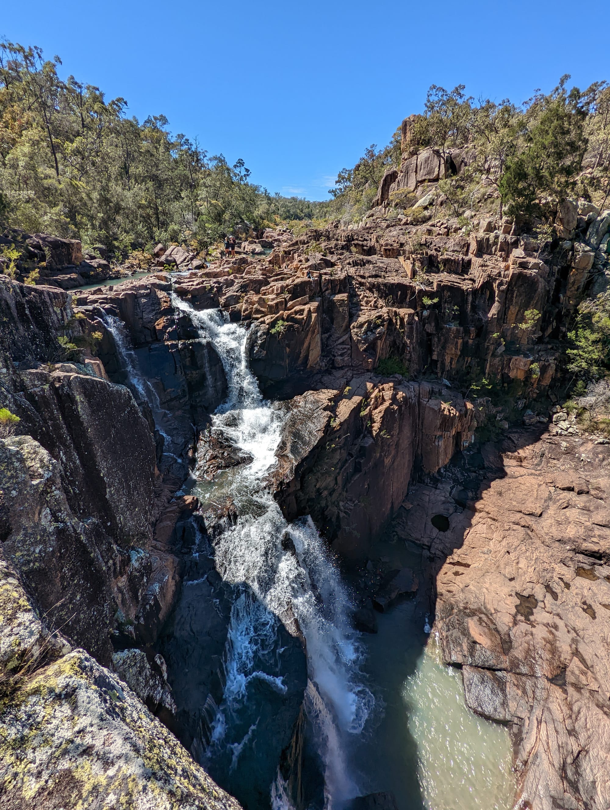 Due to the recent rains making the roads throughout our intended adventure quite boggy, we went with plan B. Instead of checking out some remote, hidden gorges, as we initially intended, Luen led a trip to this tiered granite waterfall instead. We first obtained the appropriate permission from the landholders, and then we set off on our way, cross-country. The bushland was open and sparse, full of bright yellow wattles and other plants that were in full bloom. We hiked along the ridge line to the top of the falls, and then we scrambled down a bit to see them from the bottom and to enjoy a refreshing swim. We returned back to the cars, and took our four-wheel drive adventure back out of the area to head home. What a gorgeous way to spend a Sunday!