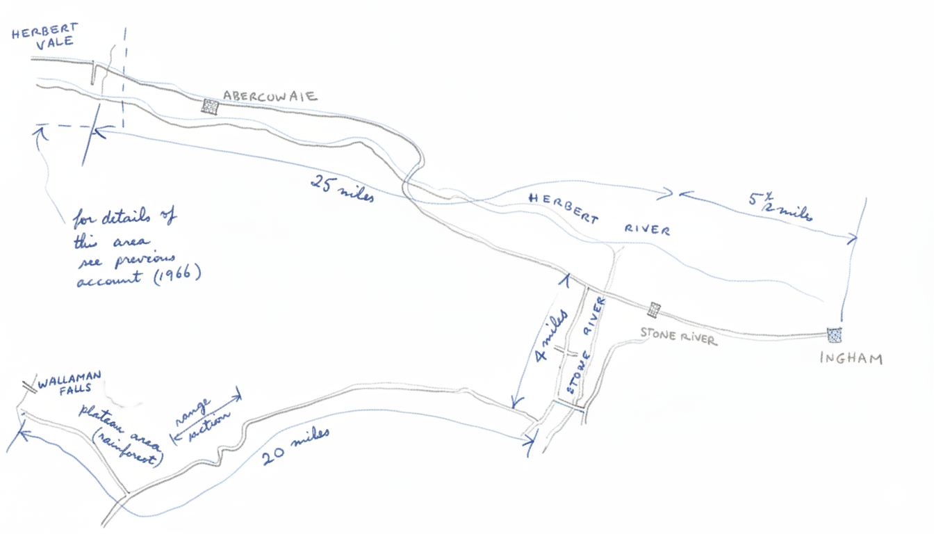 We camped on the bank of the Herbert River at the point marked "x" in the sketch on p.1 of the previous account.