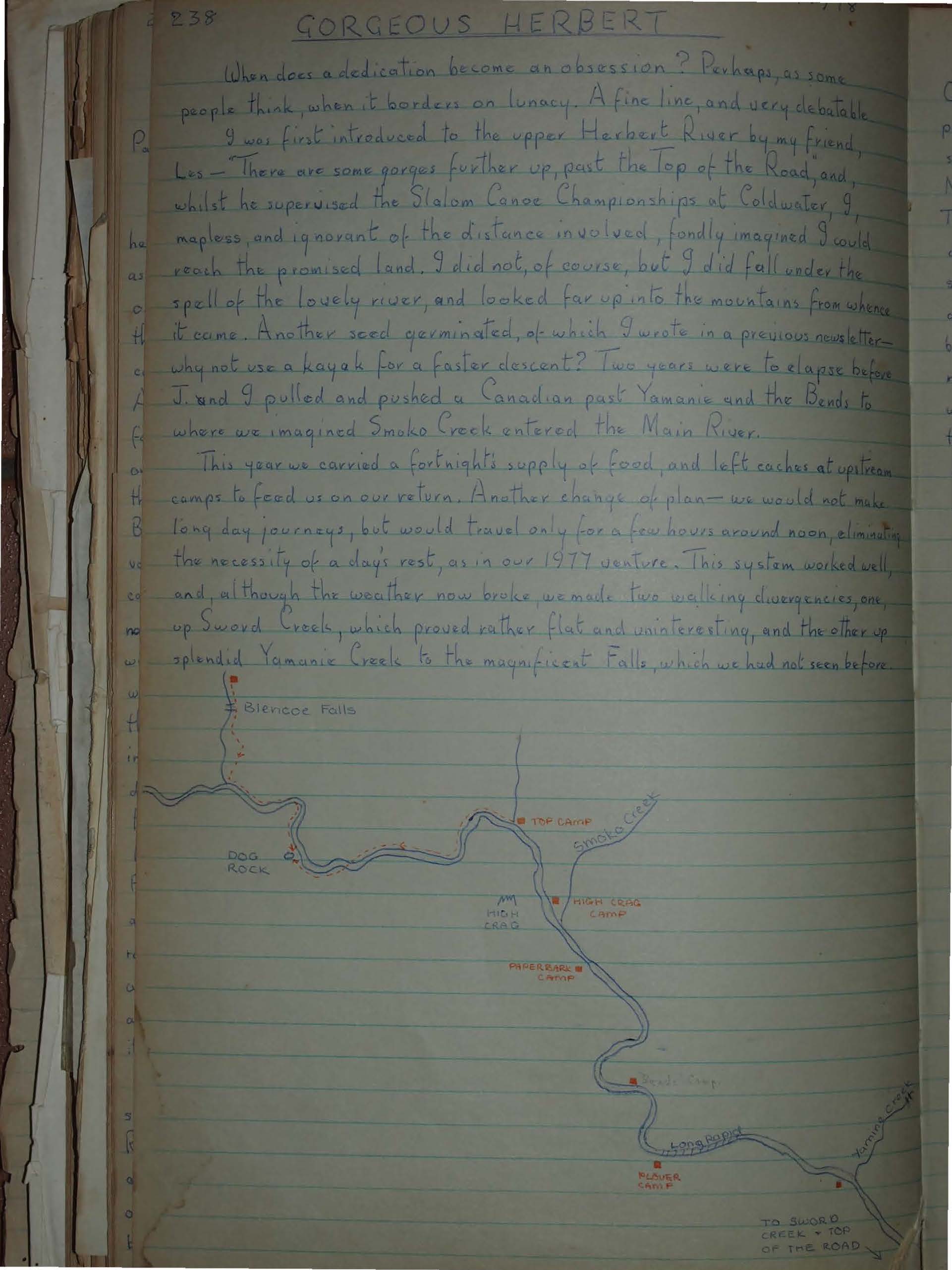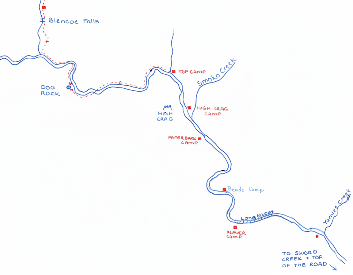 I was first introduced to the upper Herbert River by my friend, Les - There are some gorges further up, past the Top of the Road, and, whilst he supervised the Slalom Canoe Championships at Coldwater, I, mapless, and ignorant of the distance involved, fondly imagined I could reach the promised land. I did not, of course, but I did fall under the spell of the lovely river, and looked far up into the mountains from whence it came. Another seed germinated, of which I wrote in a previous newsletter - why not use a kayak for a faster descent? Two years were to elapse before J. and I pulled and pushed a Canadian past Yamanie and the Bends to where we imagined Smoko Creek entered the Main River.