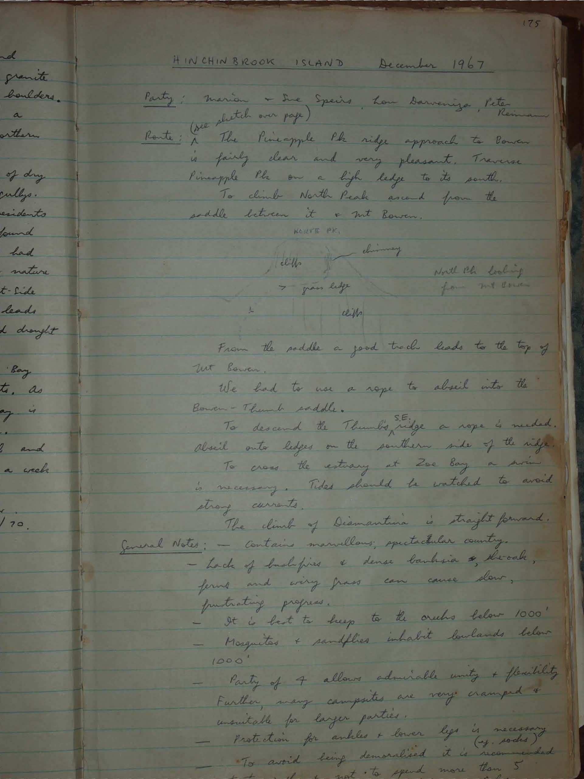 Journey back to December 1967 on Hinchinbrook Island, where a small party tackled Pineapple Peak ridge, Mt Bowen, the Thumb, and Diamantina. With rope climbs, creek routes, tidal estuary crossings, and rugged campsites, this classic North Queensland trek offered wild beauty and tough adventure.