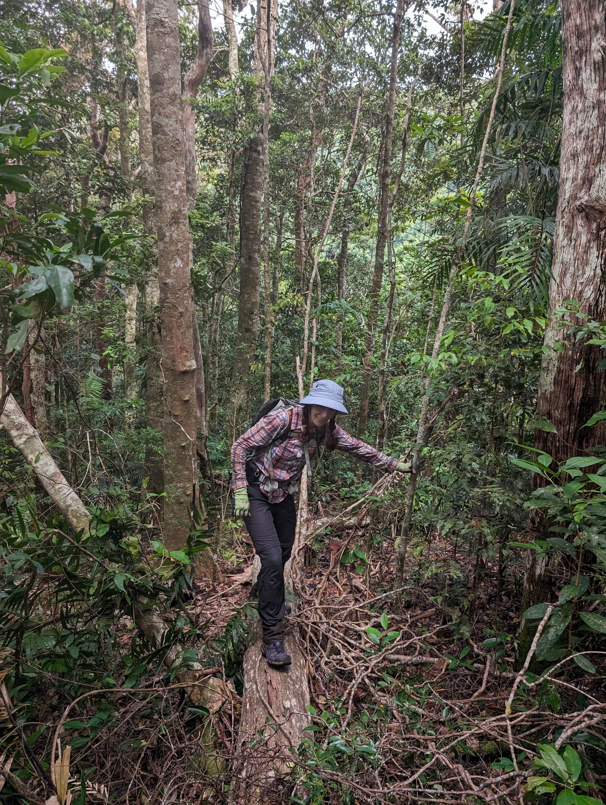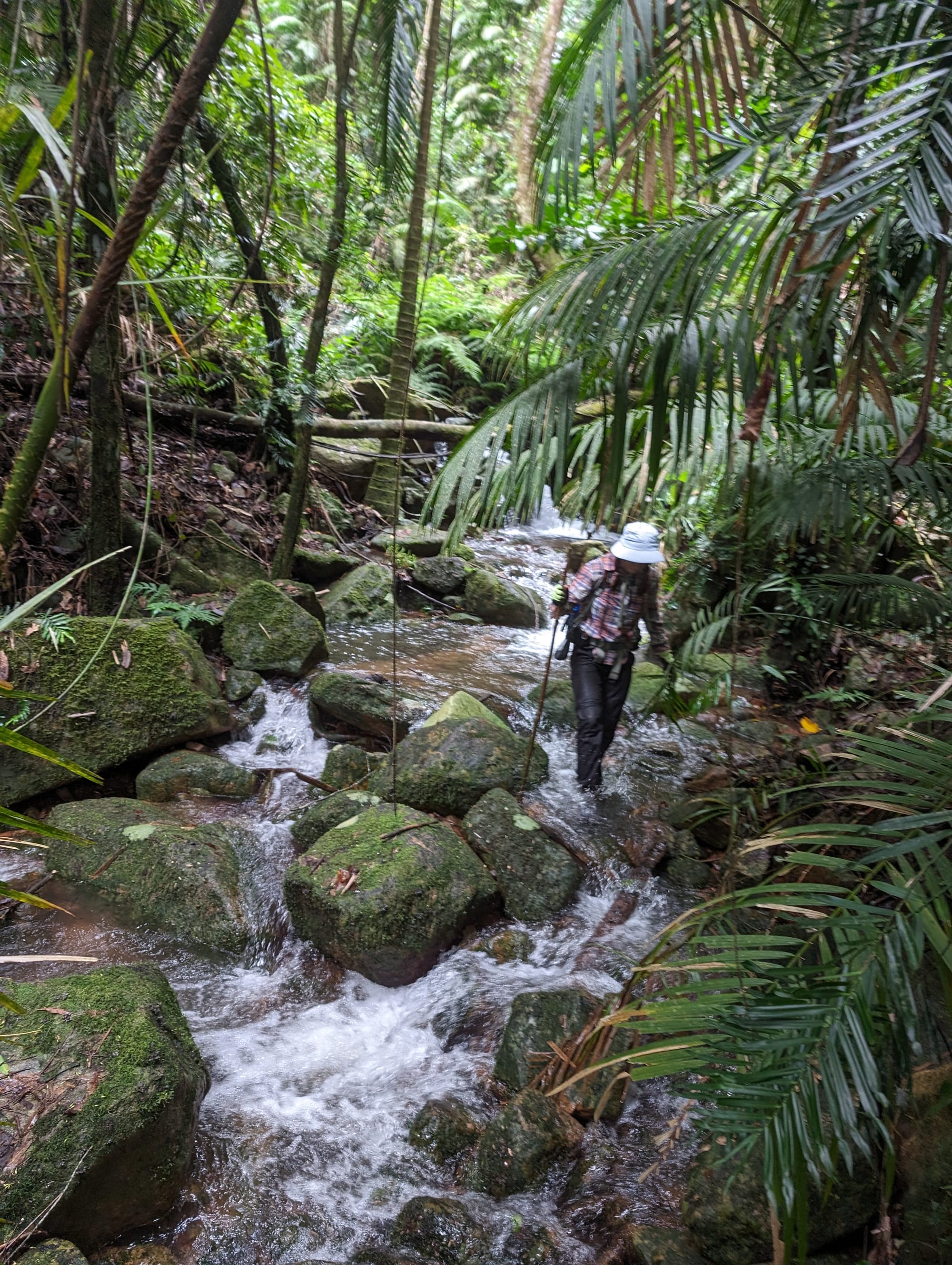 Starting from Paluma Dam, Luen rode his mountain bike along the Jourama Falls track while Jo powered along on foot at a cracking pace to keep up. Along the way, we spotted cassowary droppings on the track - always a nice reminder that you are travelling through proper rainforest country. Near the point where we planned to head off-track, Luen stashed the bike in the bush and the real adventure began.