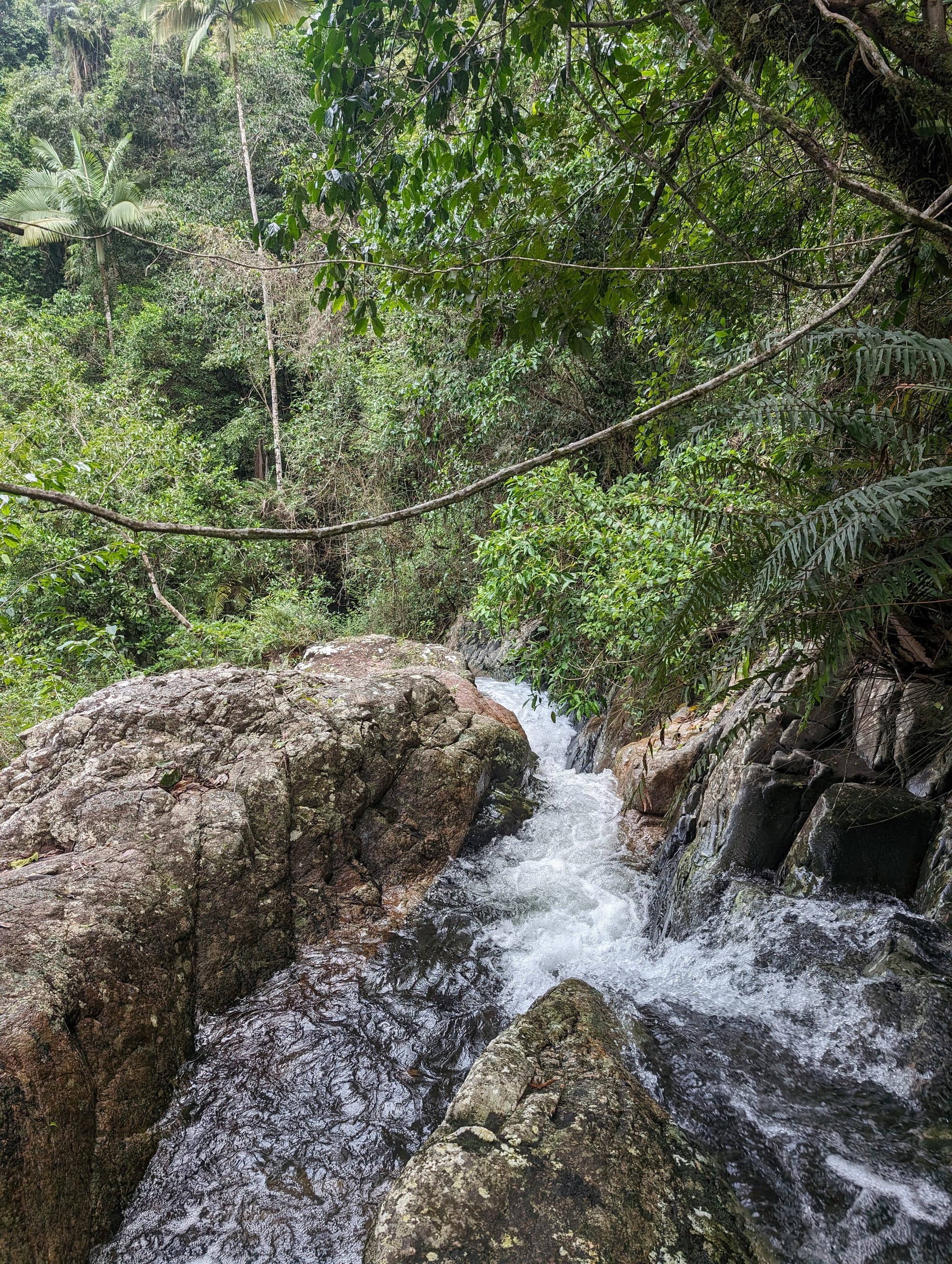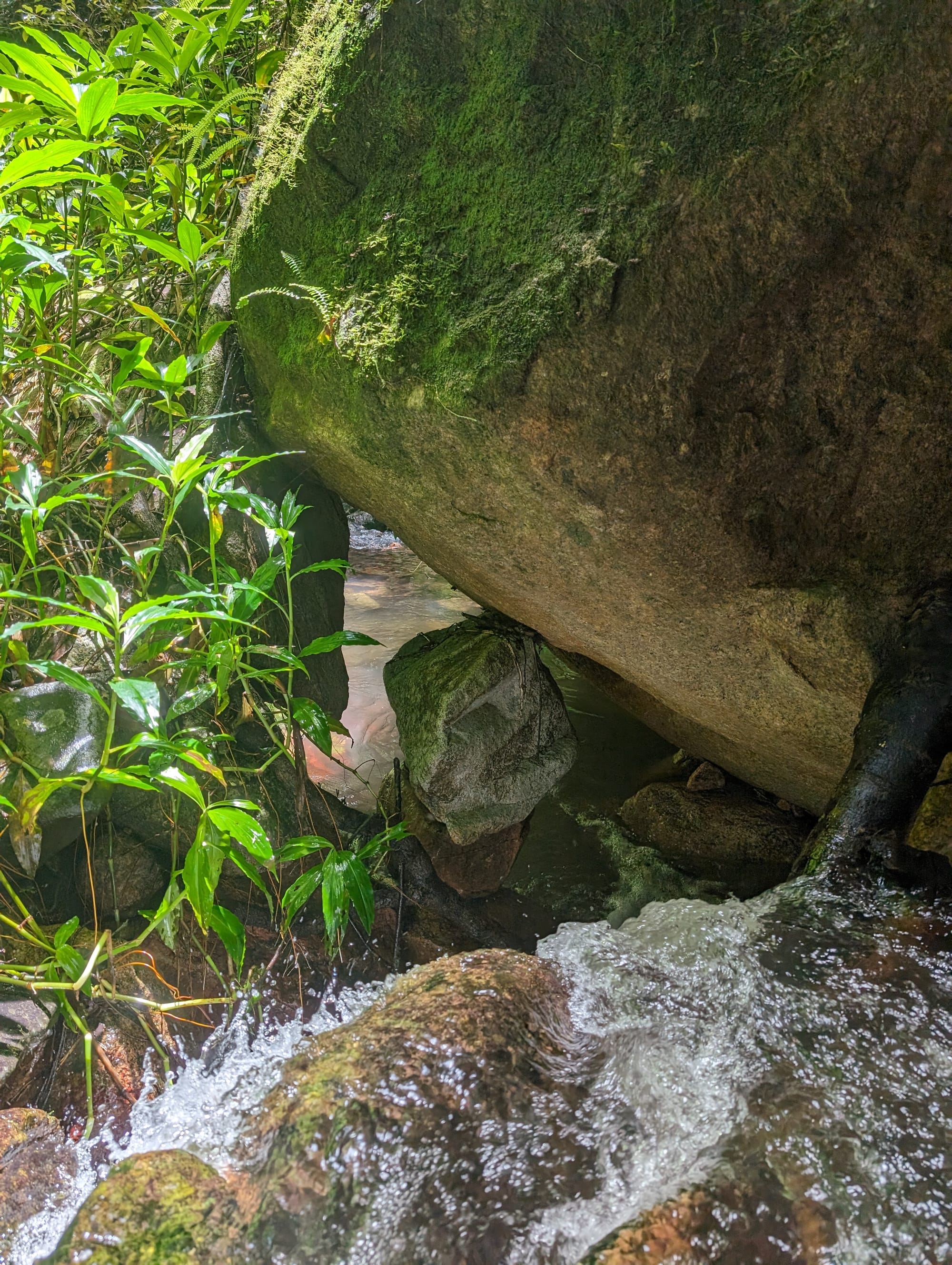 Although the original goal had been to reach the main drops further downstream, the wet, slippery rocks and slow progress had other ideas. Even so, the headwaters were beautiful, with a series of impressive little cascades, a duck under a rock cave, and the mossy creek scenery that made the effort worthwhile. It was the sort of place that feels properly hidden away, wild, wet, and hemmed in by thick rainforest.