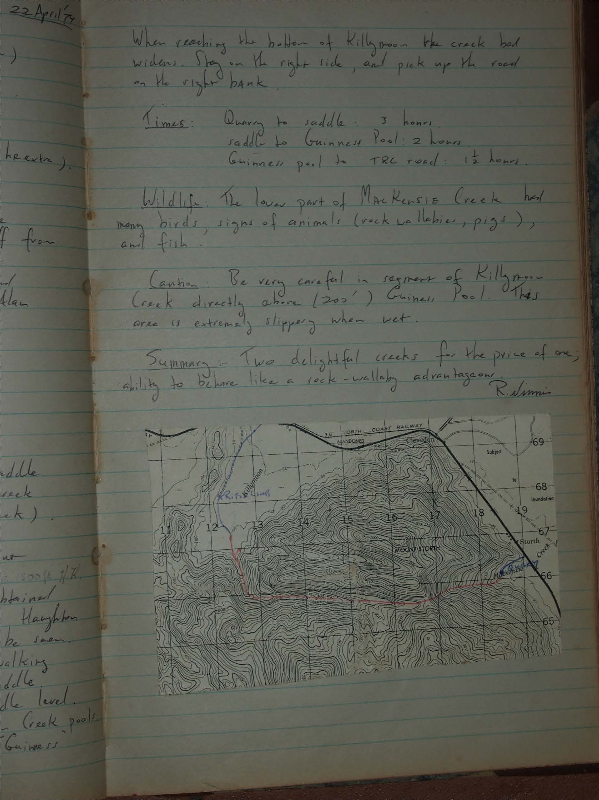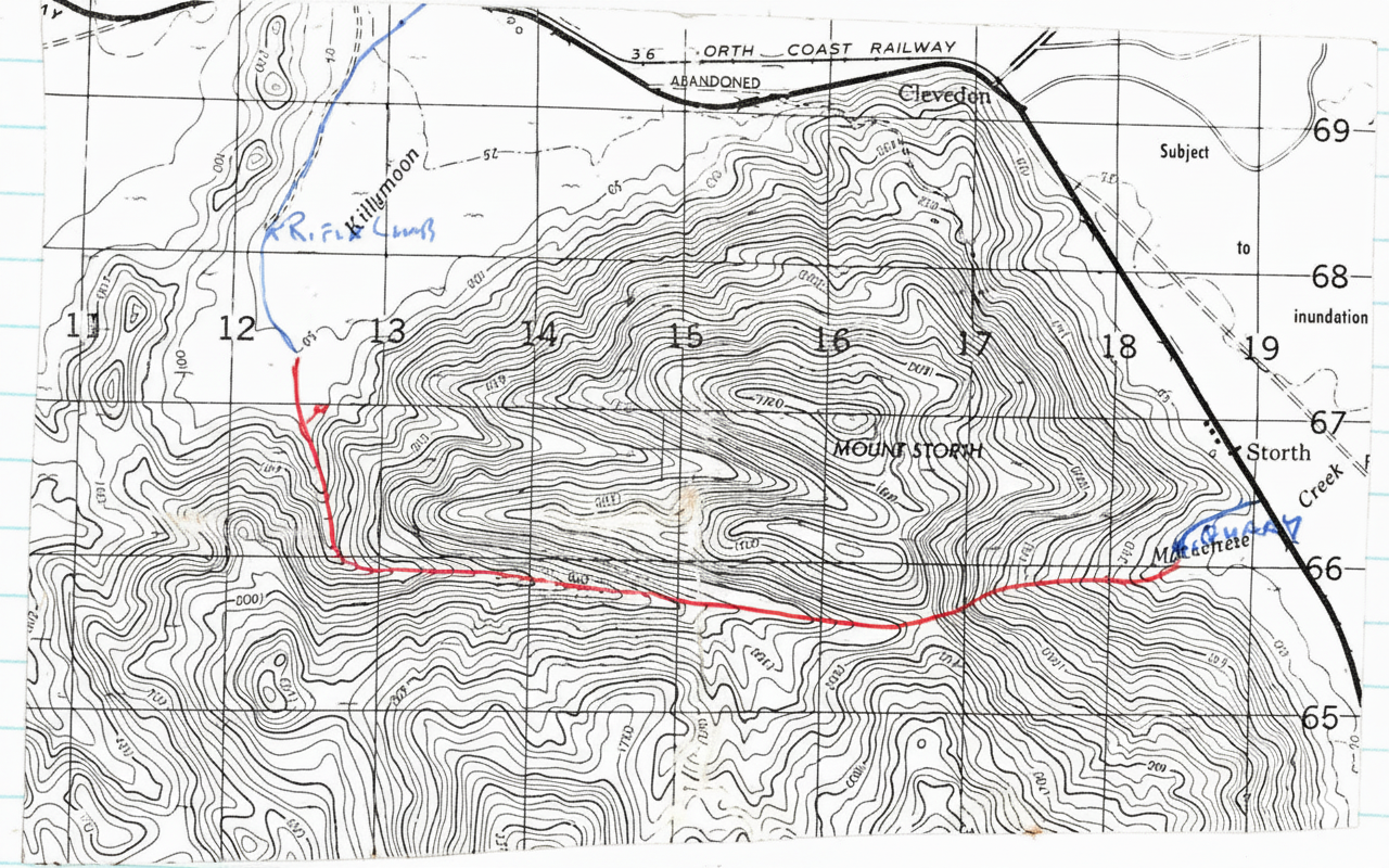 LEAVE one car near junction of Townsville Rifle Club (TRC) road & Killymoon Creek. Turnoff from Highway to TRC is obvious, approx 1/2 Km north of Killymoon Creek. Gate is sometimes locked, and permission from caretaker should be obtained. See Alan Watson for details.