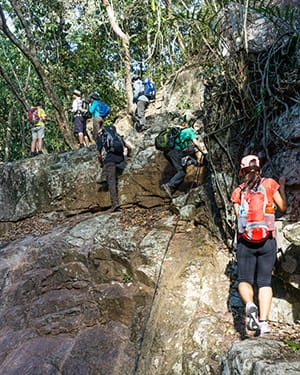 False Crest to Mt Halifax (altitude 1063 metres) — A 15-minute walk through rainforest , down a gully then back up, over moist rainforest ground, to reach the summit. Lunch at Camp 4.