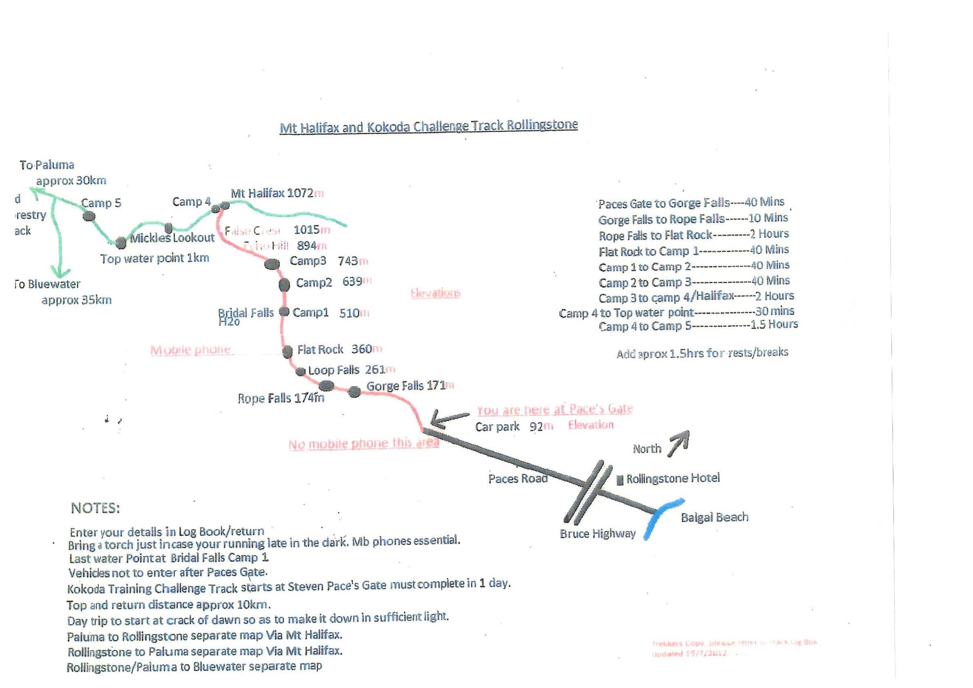 Before Rollingstone bridge, turn left onto Pace’s Road, drive until you reach the log book sign-in point for the start, then park cars on the roadside before the gate. Vehicles are not to proceed through Paces gate as it’s private property.