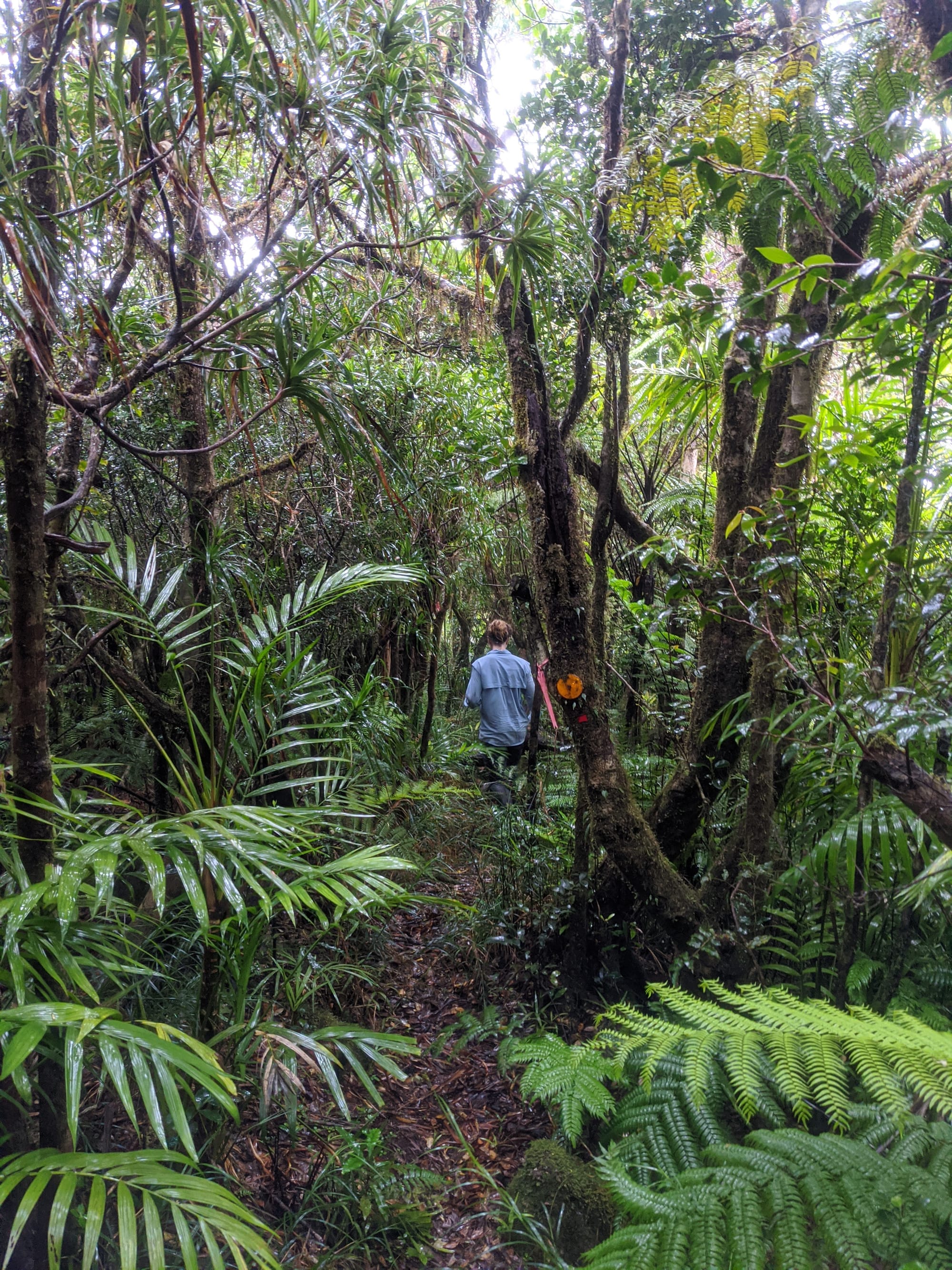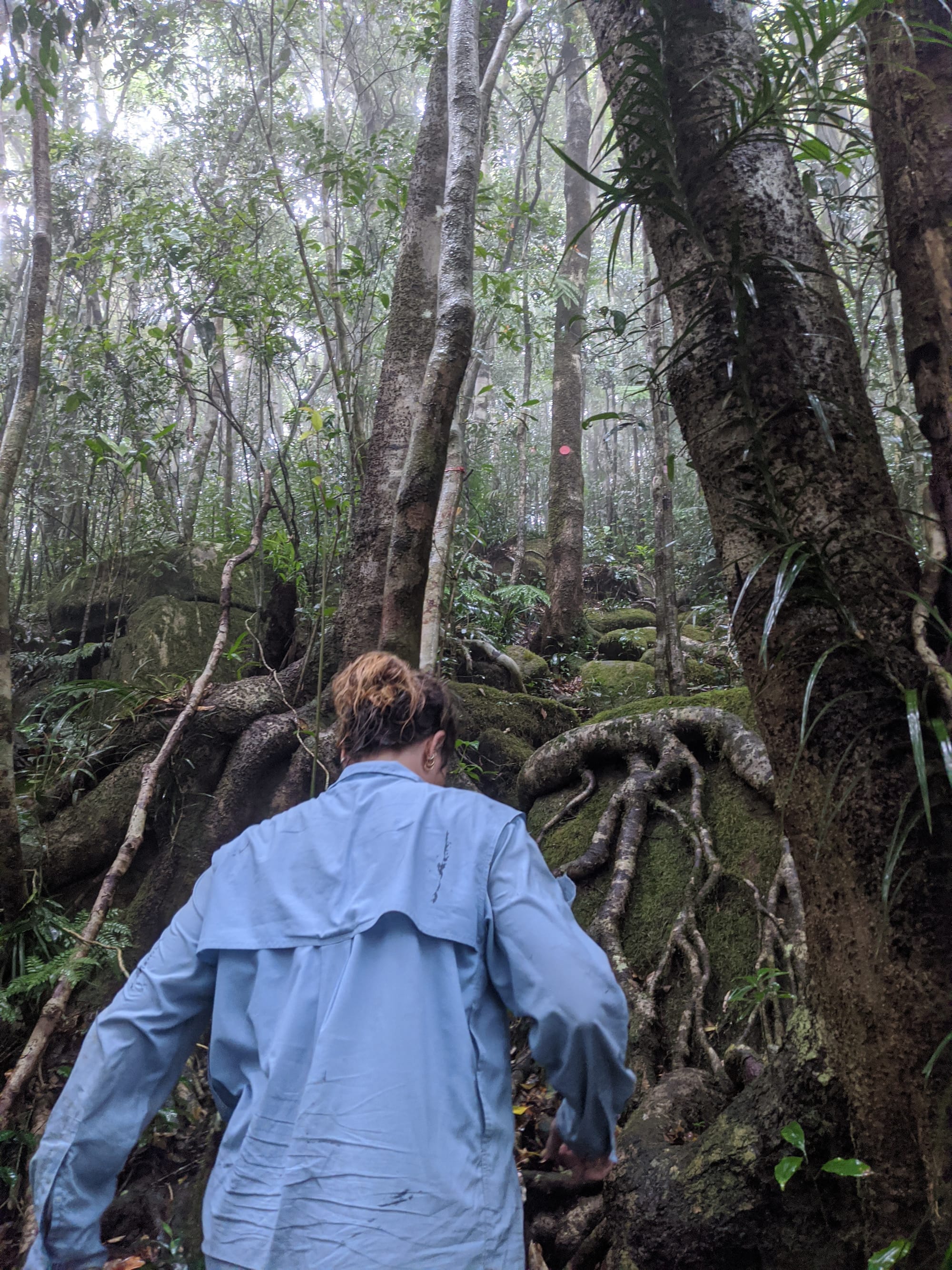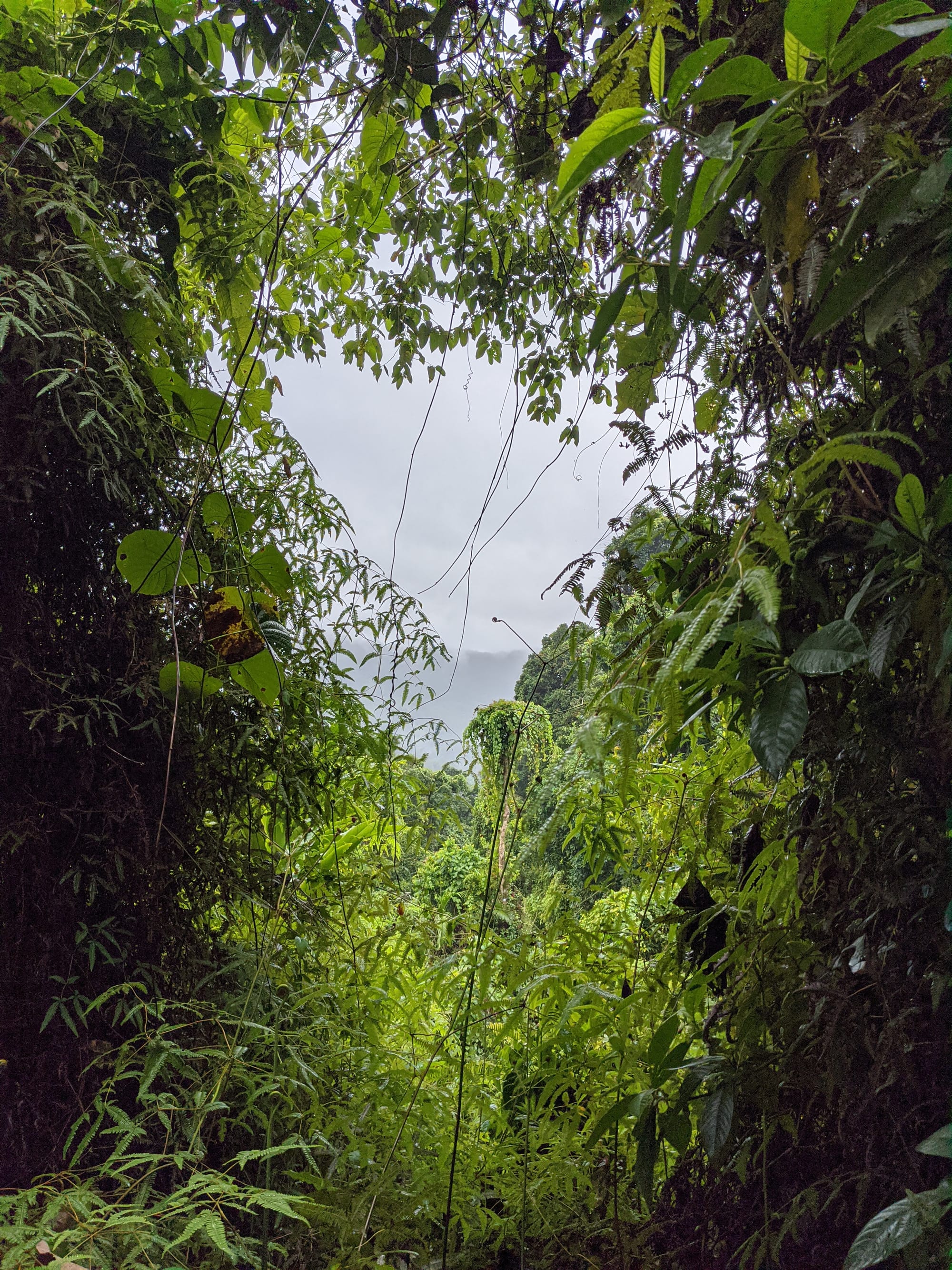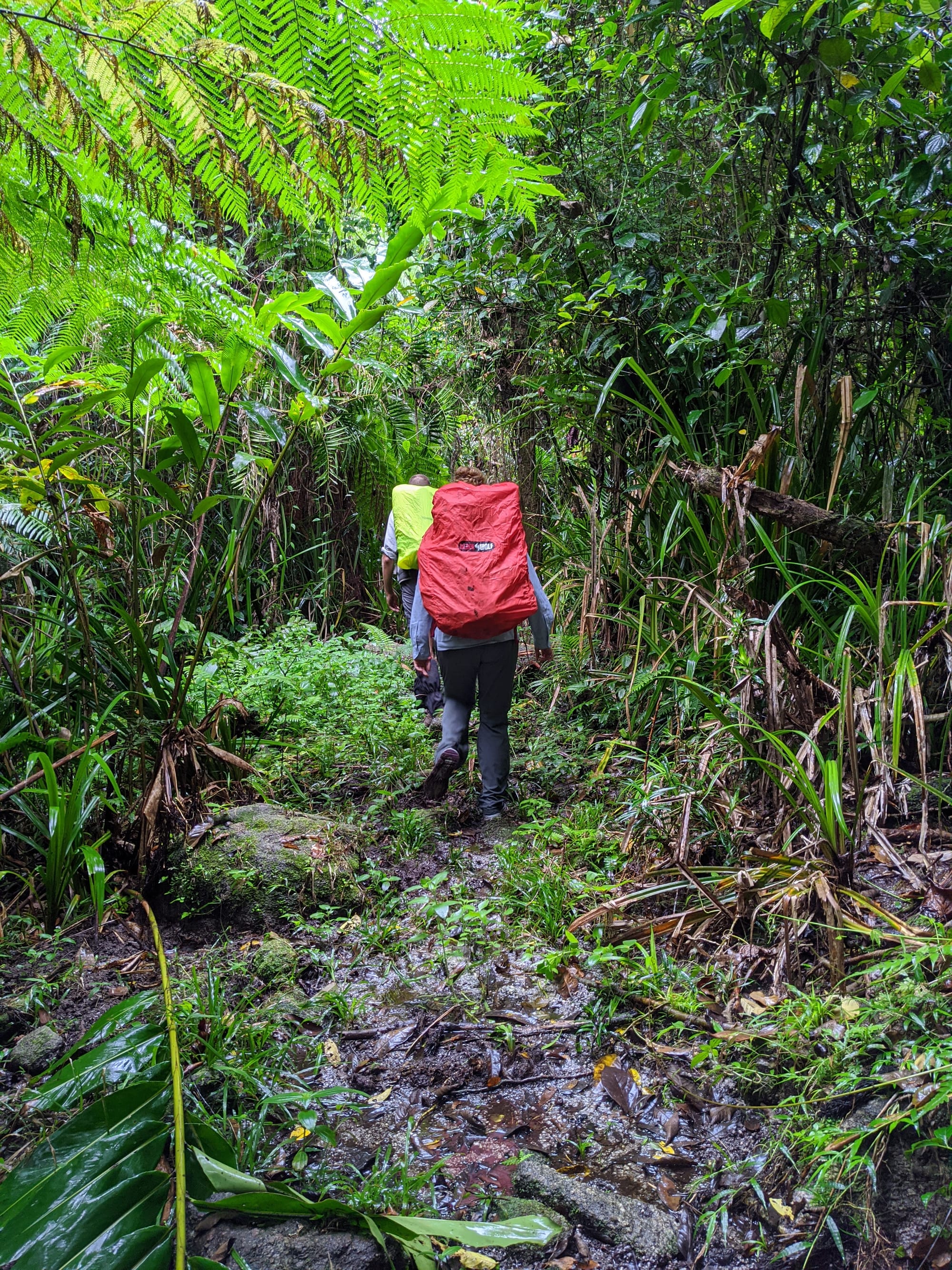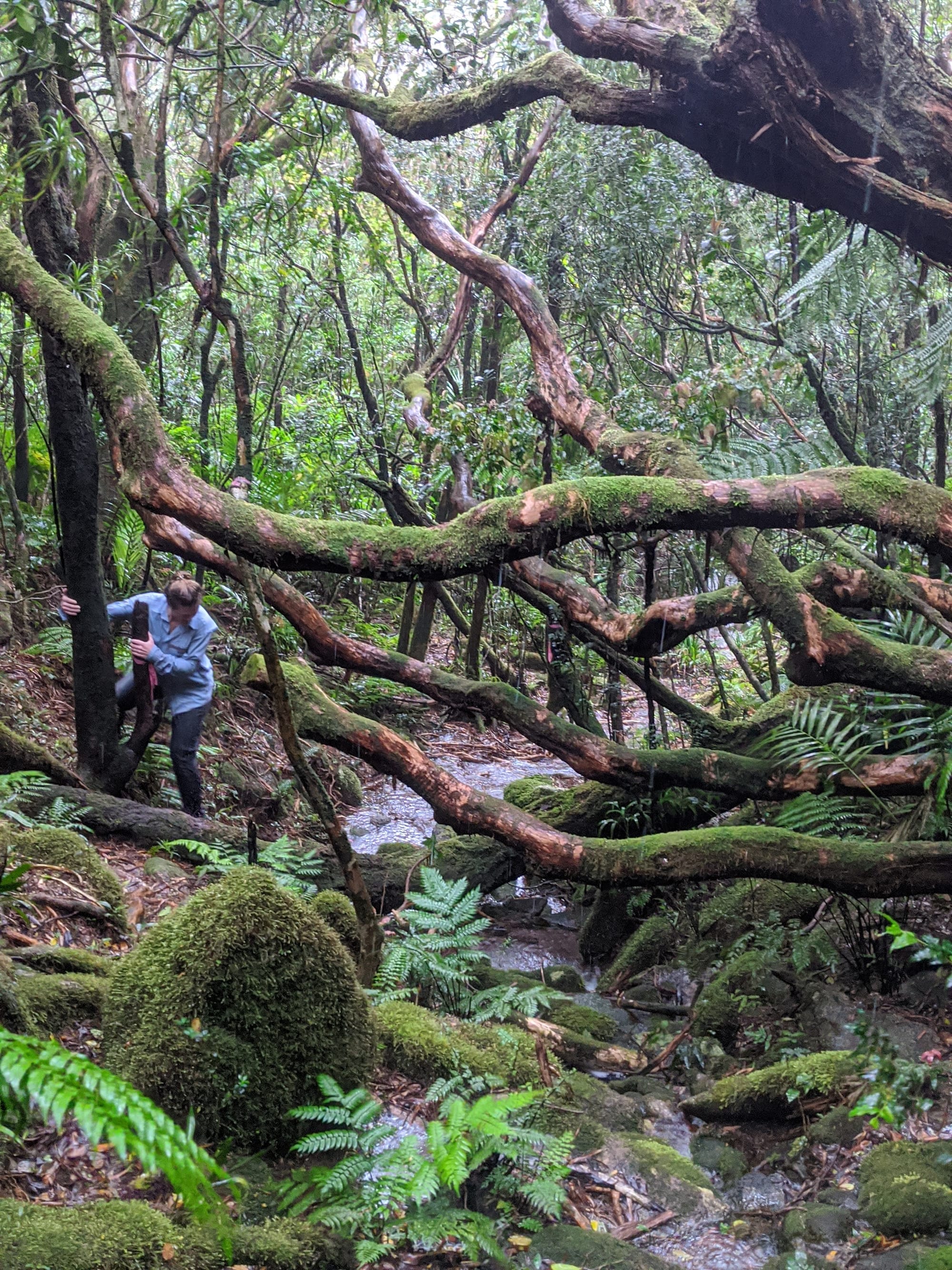 From the outset, this was a wet walk. Rain fell for much of the trip, and the mountain lived up to its reputation for being damp, muddy, and misty. The rainforest was dripping, the track was slippery, and the views were mostly hidden behind clouds. Although we knew there were big landscapes all around us, we only caught brief hints of them through the mist.