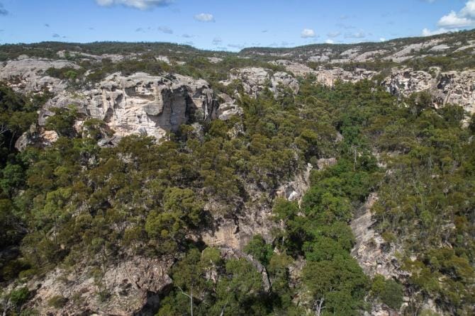 A spectacular sandstone landscape, this section of the Park is heavily dissected with a maze of numerous sandstone outcrops and gorges which are incredibly rough, convoluted, and deep. Access into the gorges is extremely difficult.