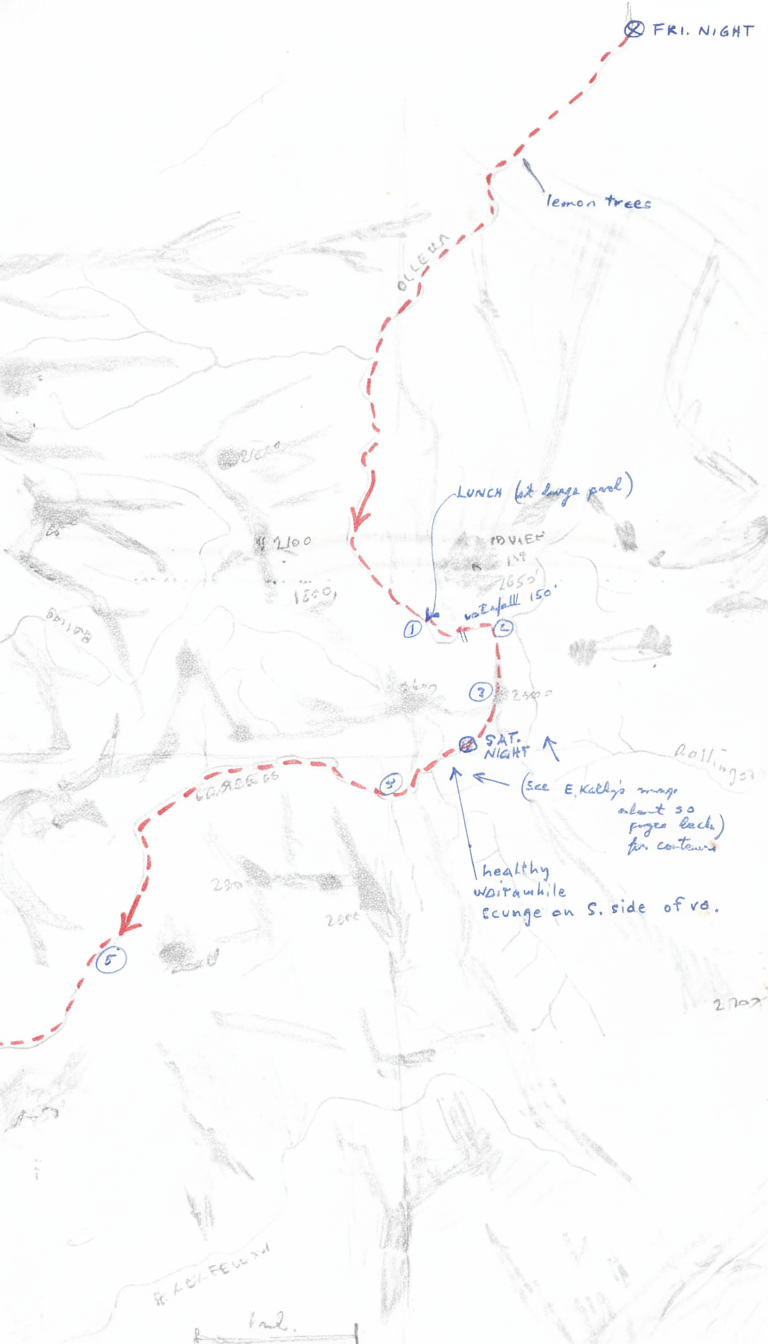 ③-④ Rainforest full of waitawhile - from 3 to campsite very slow - & painful - from campsite to ④ in wider creek ∴ OK.