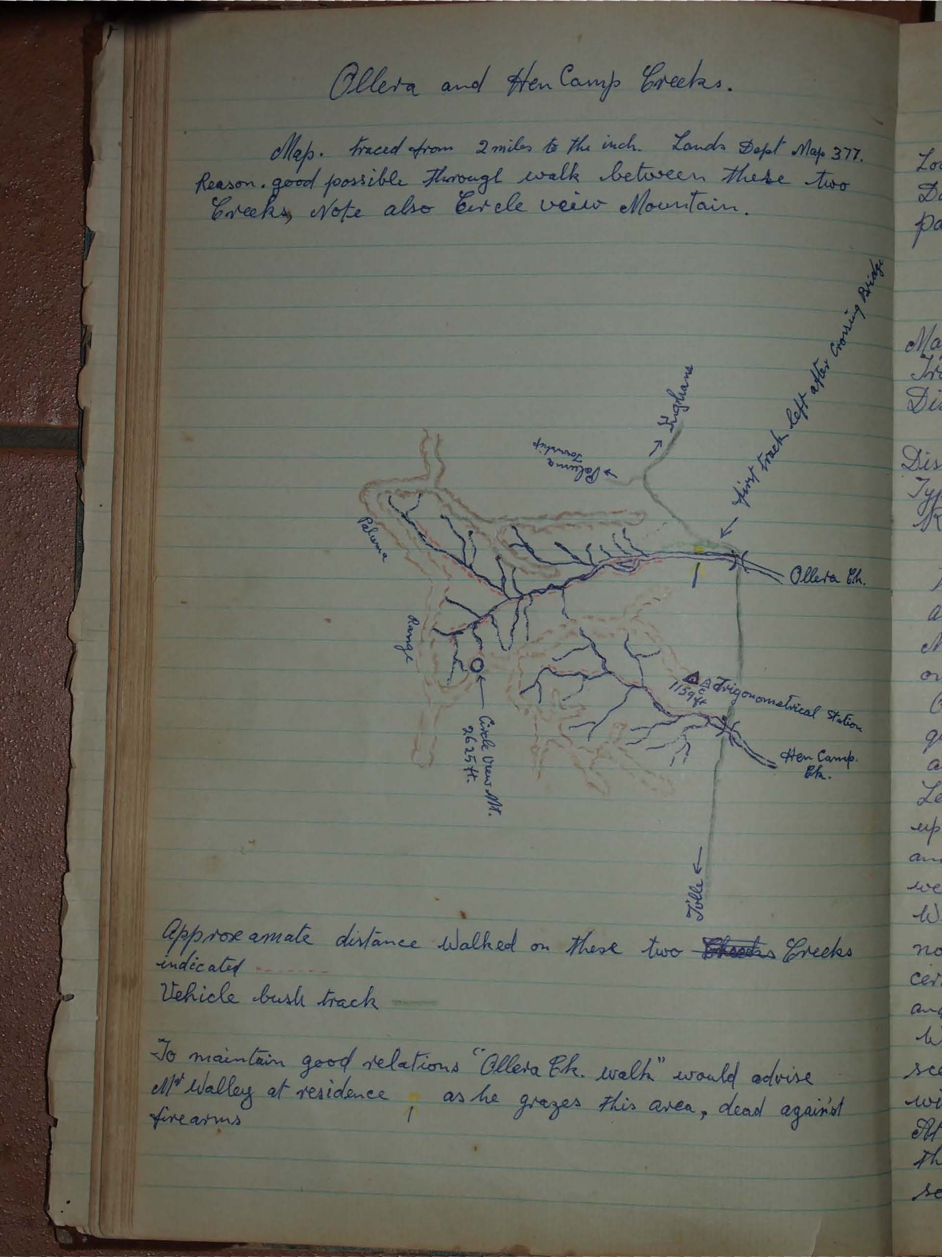 To maintain good relations "Ollera Ck. walk" would advise Alf Walley at residence as he grazes this area, dead against firearms.