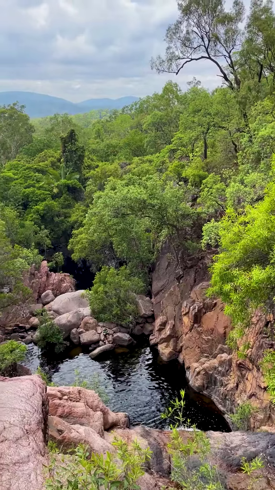 This weekend, the Townsville Bushwalking Club headed south to a remote and rarely visited corner of Bowling Green Bay National Park for not one, but two hikes into the Pangola Falls area. Access to this section is only possible with permission from a private landholder, and we are grateful for the opportunity. Beginning on private property, we followed a rough track through open country towards the creek line, the Elliot Massif rising quietly in the background. It did not take long before the sound of running water replaced the hum of conversation.