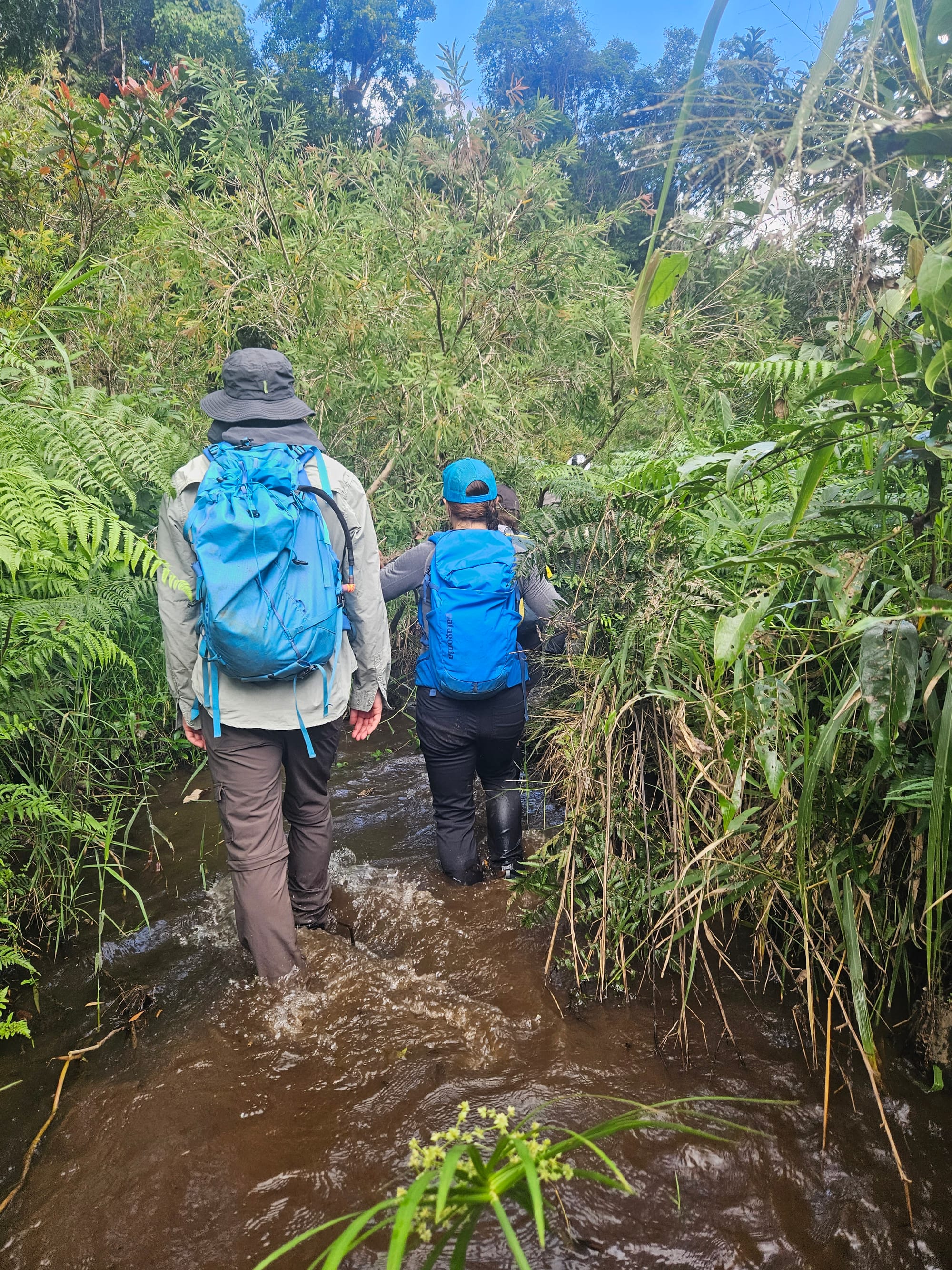 This crossing turned out to be a little more exciting. The current pushed a few people off balance, and a quick swim through the small rapid helped some members reach the other side. For the stronger, confident swimmers it was straightforward, while others needed a bit more effort, but everyone made it across safely.