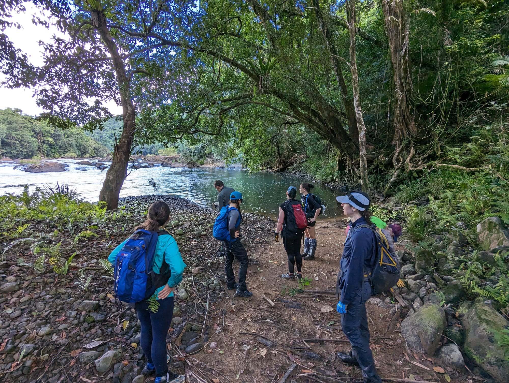 With two spectacular waterfalls explored, it was time to head back. Returning to the North Johnstone River, we chose a nearby crossing point to get back to the original side of the river. It wasn't quite as ideal as the upstream crossing, but it was close and looked manageable.