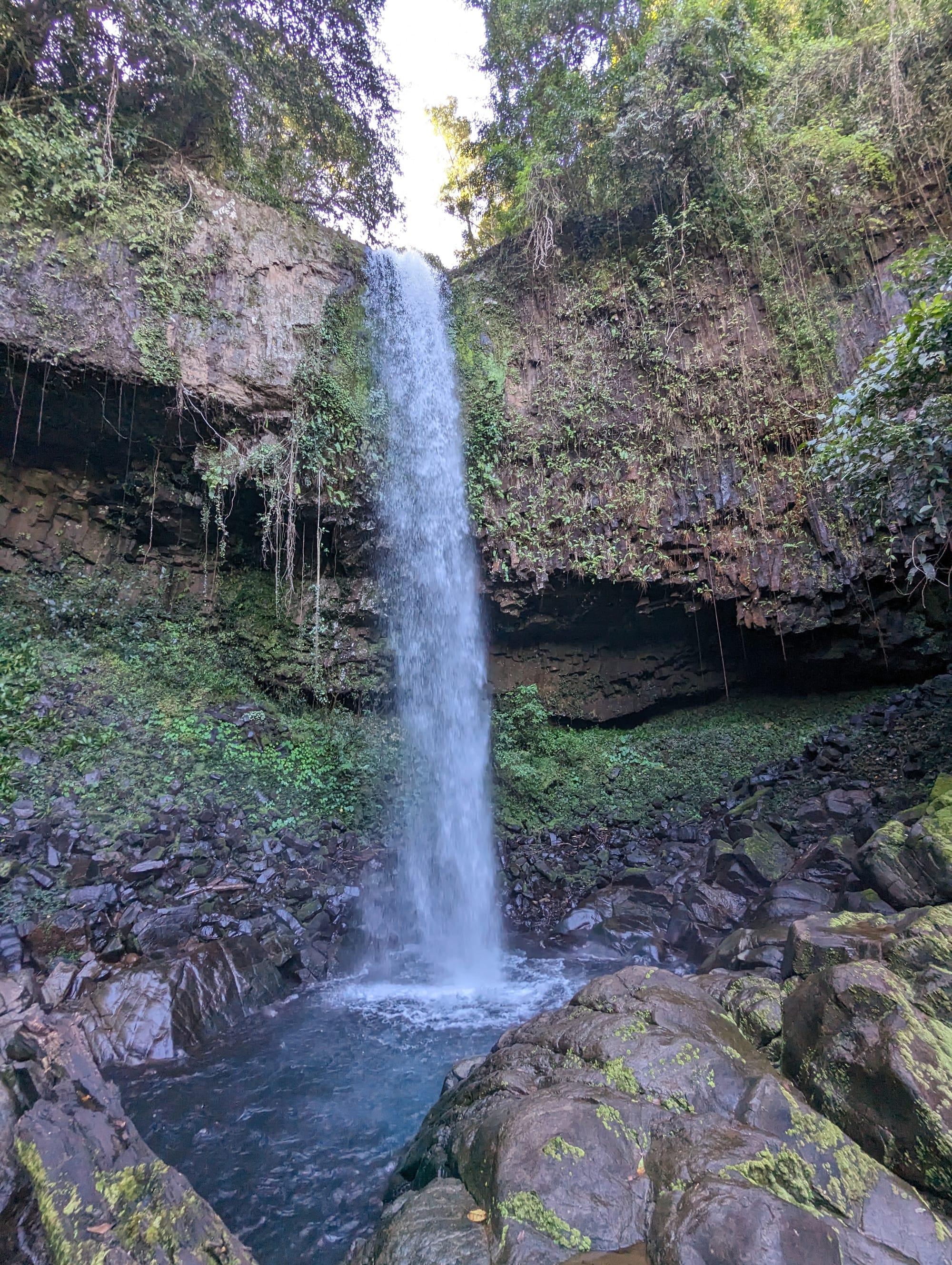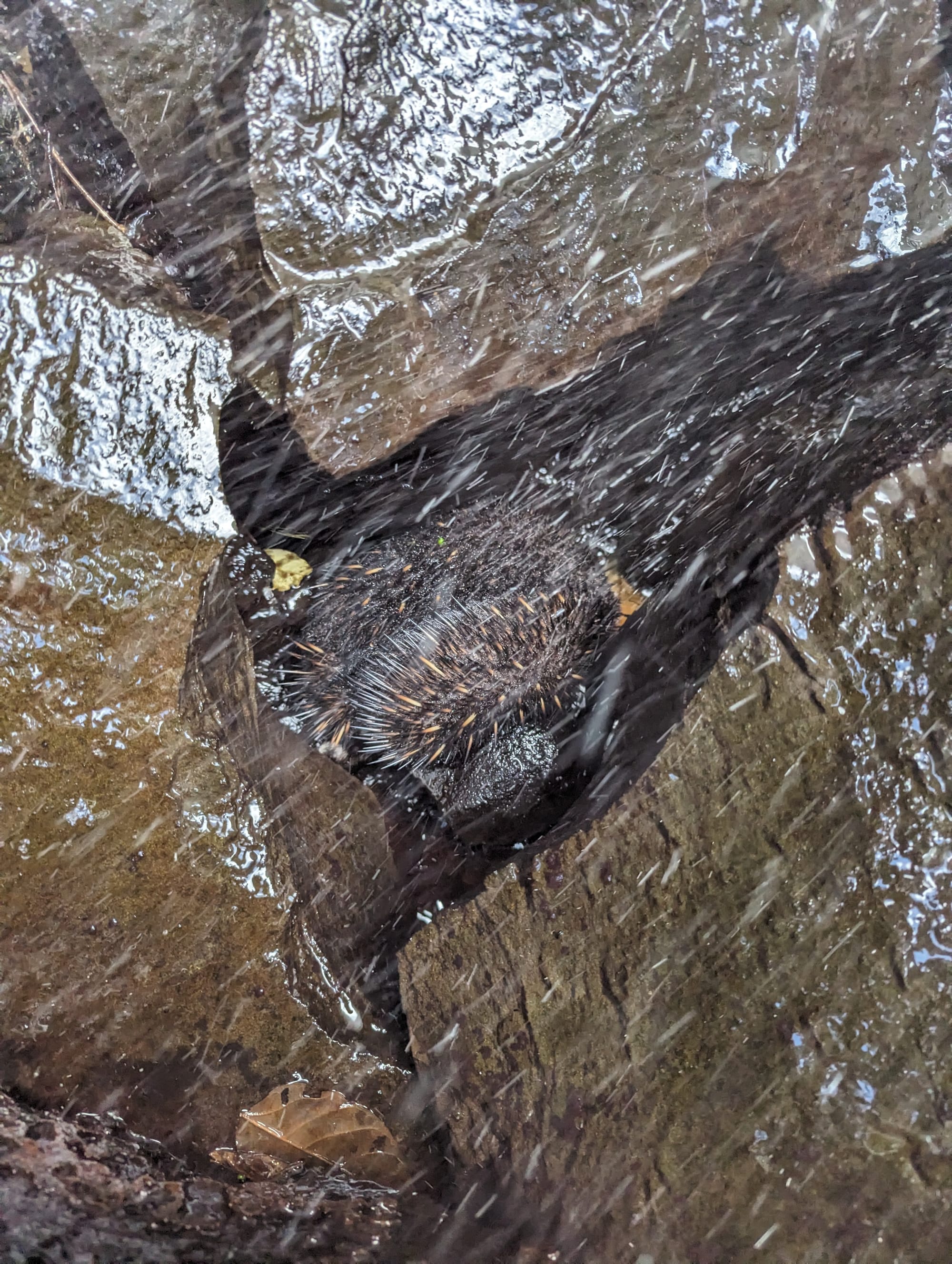 While exploring around the base of the falls we were surprised to spot an echidna among the rocks - a strange place to encounter one, but a reminder of how rich these rainforests are in wildlife.