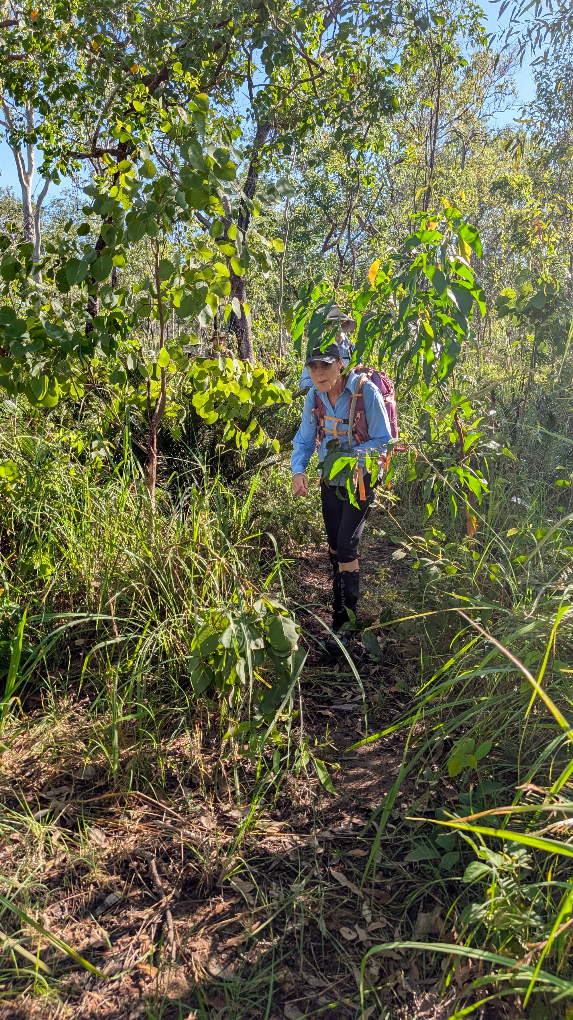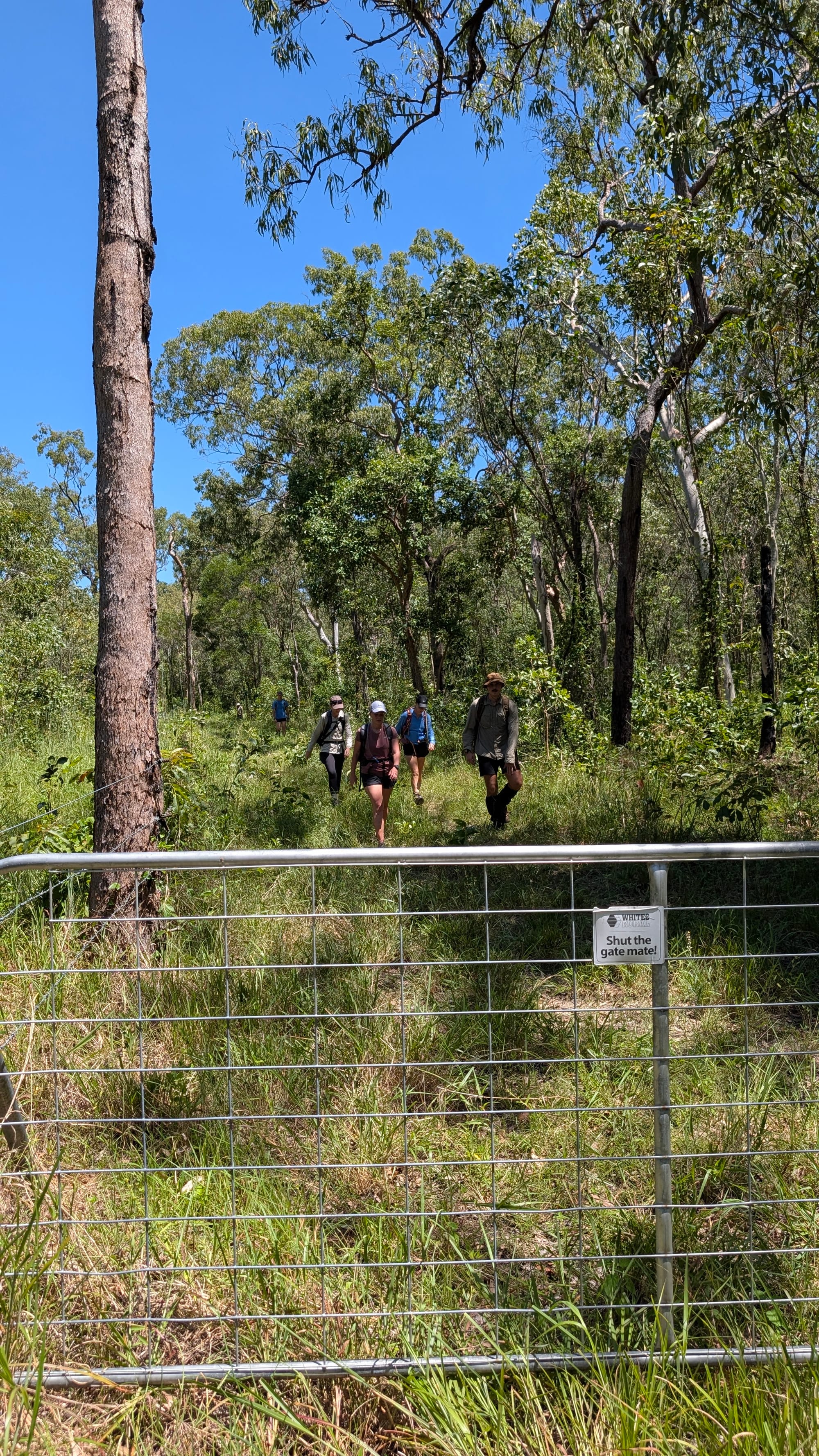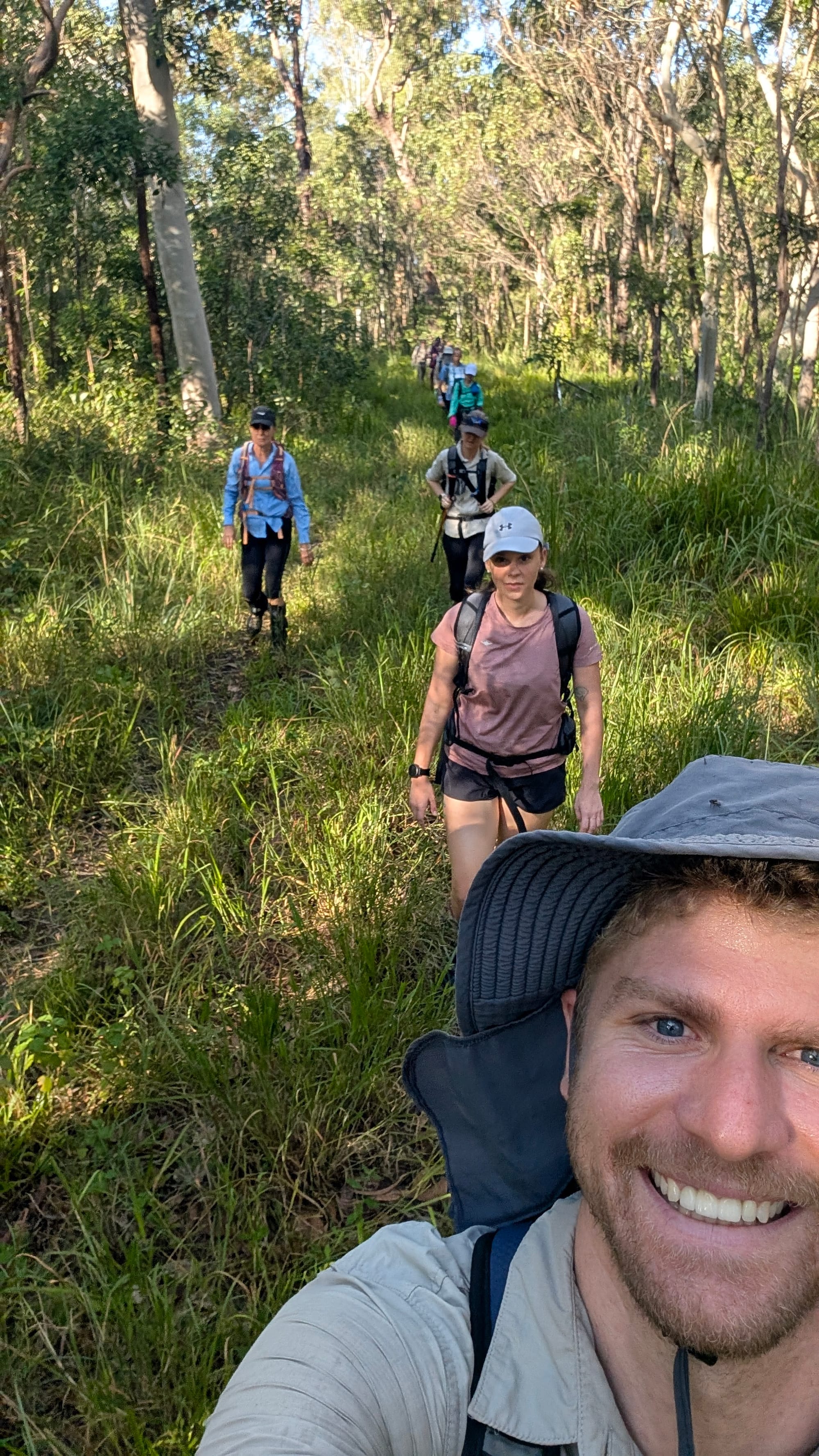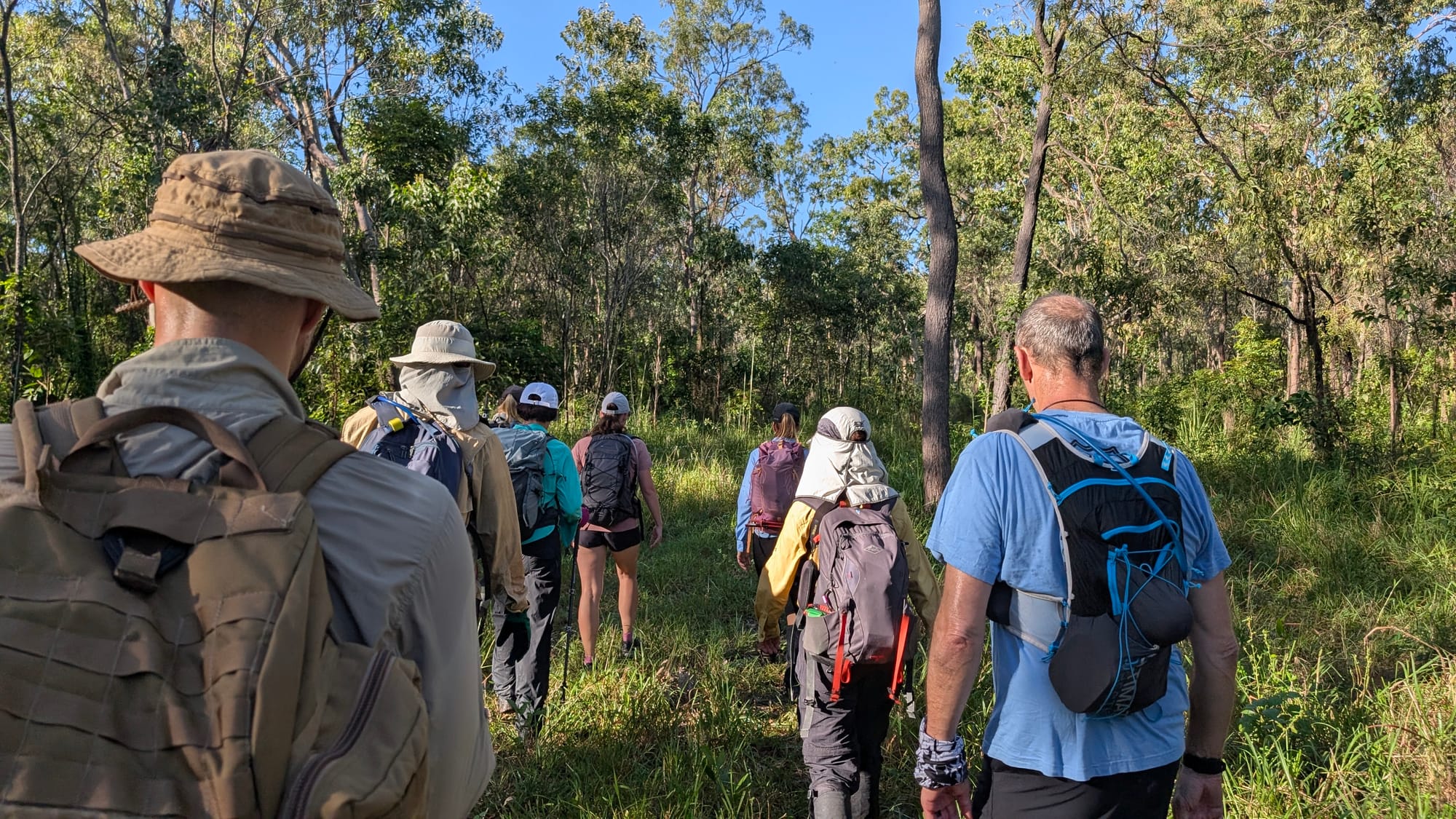 Thirteen of us met at the Yabulu BP before carpooling north to the start of the walk, where we parked in a gravel pit off the Bruce Highway. From there, we set off along a grassy road, taking a short bush shortcut of about 100 m to trim a little distance before rejoining the track. A couple of small creek crossings and some easy flat walking got the group moving nicely.