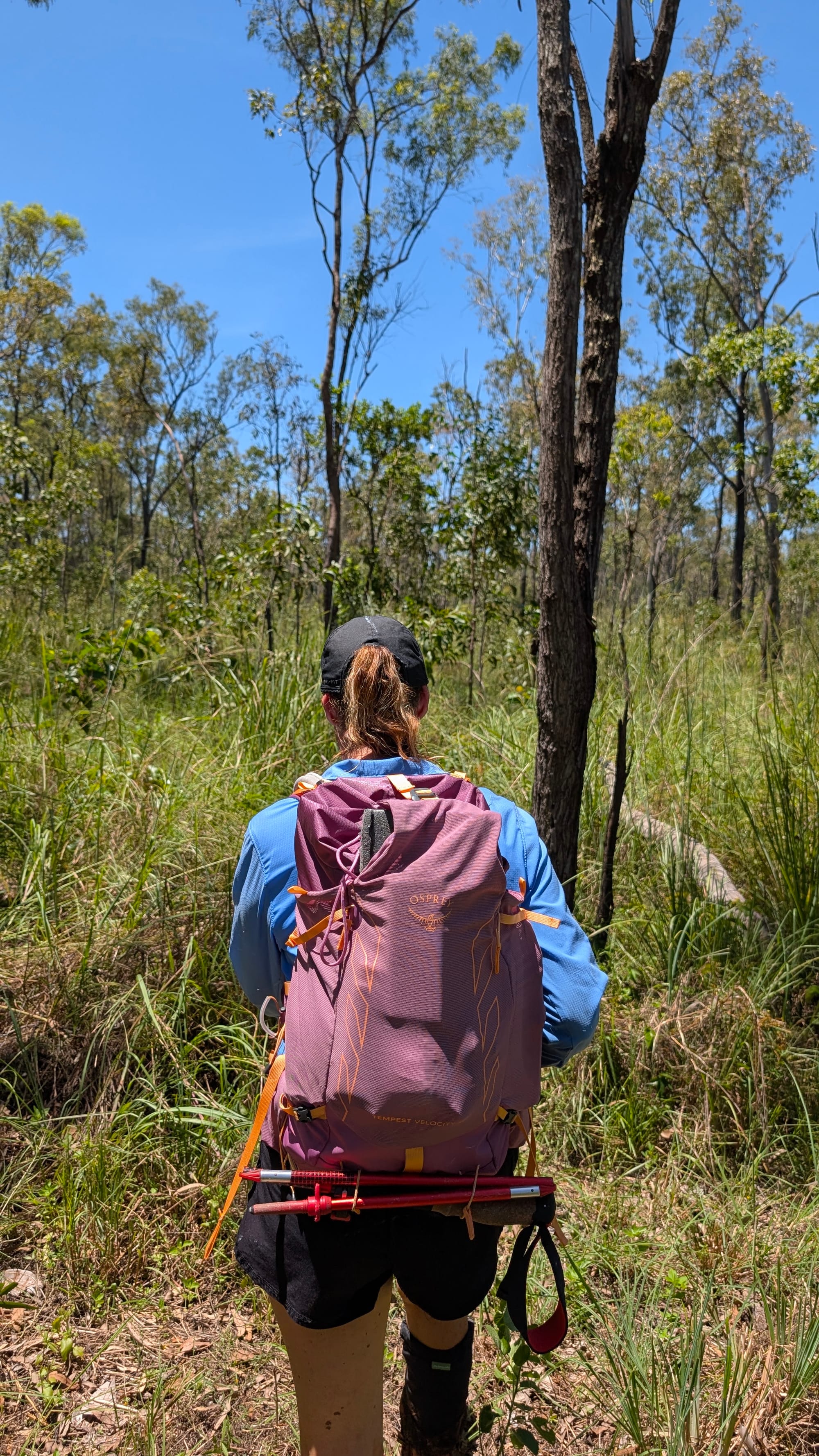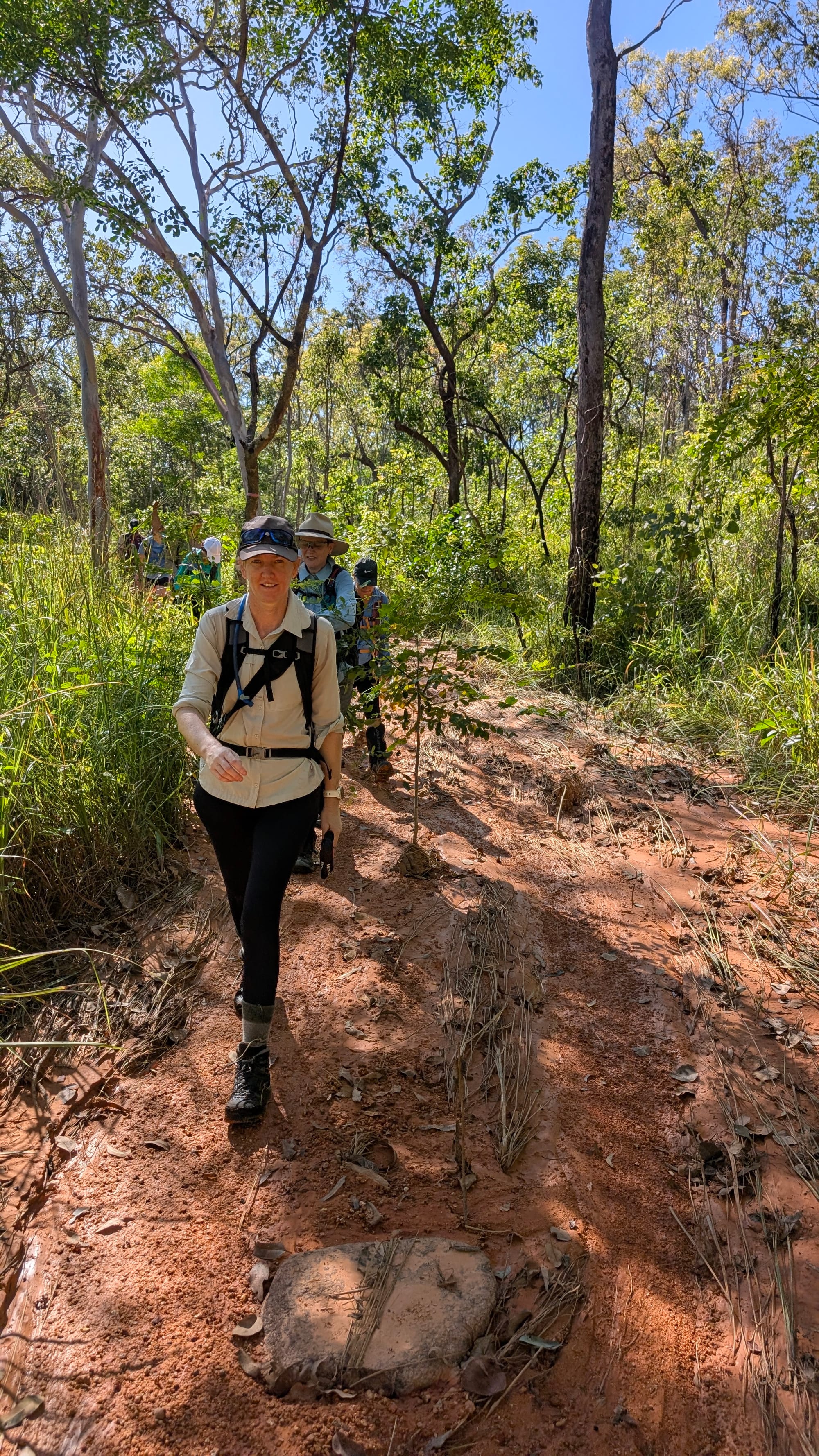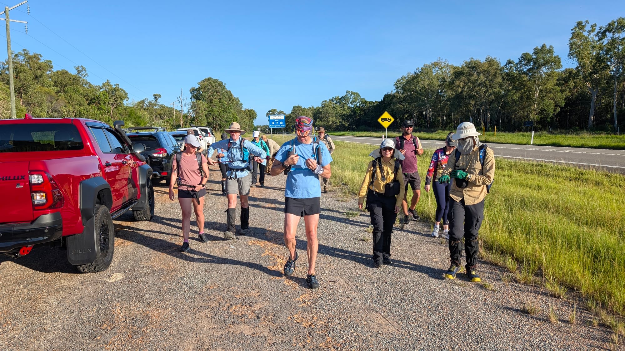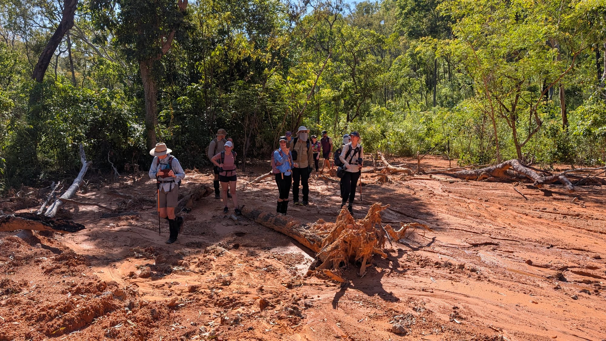 Thirteen of us met at the Yabulu BP before carpooling north to the start of the walk, where we parked in a gravel pit off the Bruce Highway. From there, we set off along a grassy road, taking a short bush shortcut of about 100 m to trim a little distance before rejoining the track. A couple of small creek crossings and some easy flat walking got the group moving nicely.